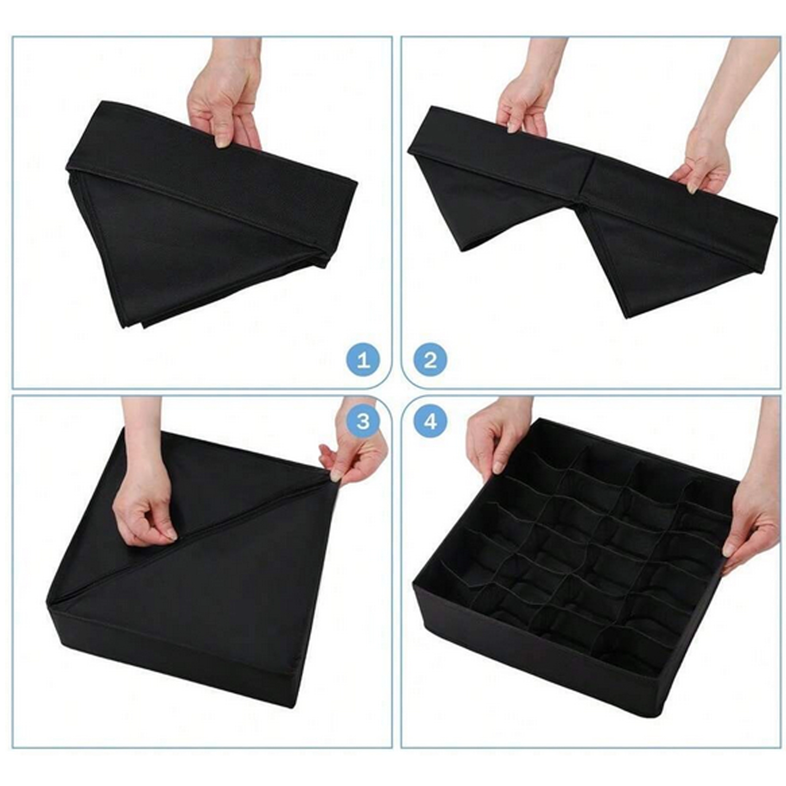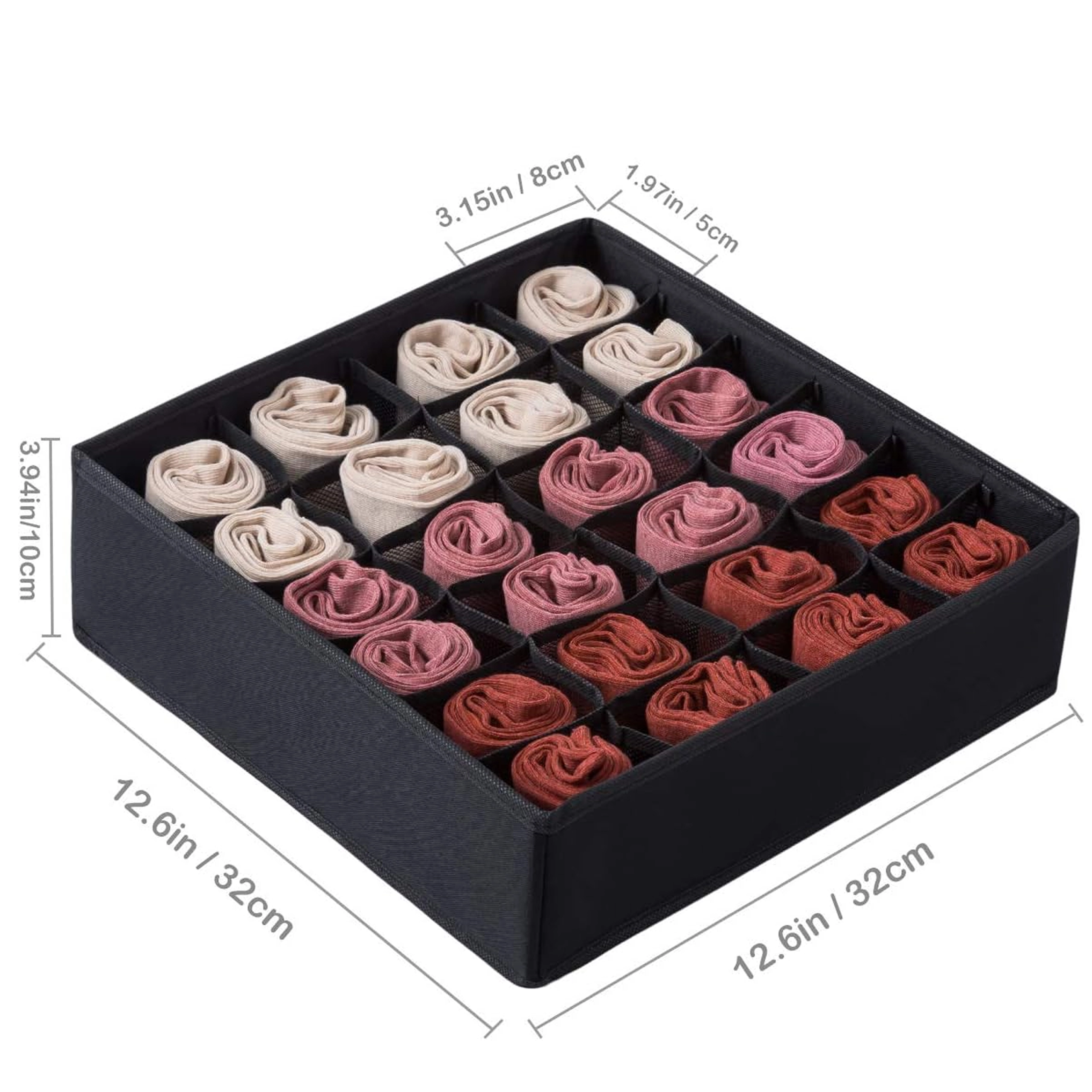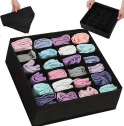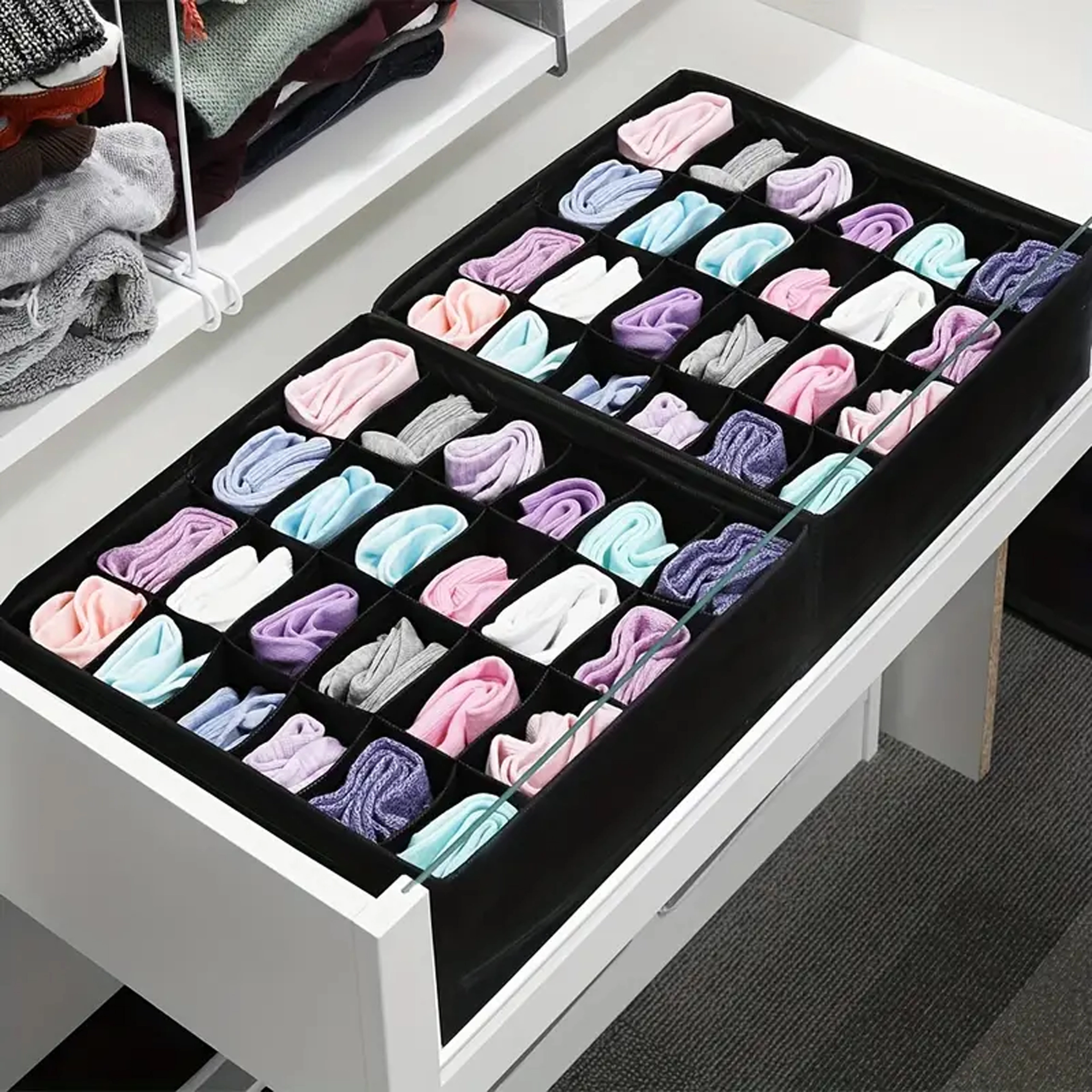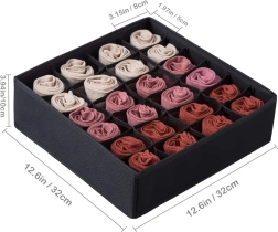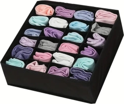 Las dimensiones de 32 × 32 × 10 cm se ajustan a la mayoría de cajones y estantes abiertos comunes. Es una gran elección para calcetines, bragas, sujetadores, medias, corbatas y accesorios. El montaje es rápido y sencillo: en pocos segundos lo tendrás listo.