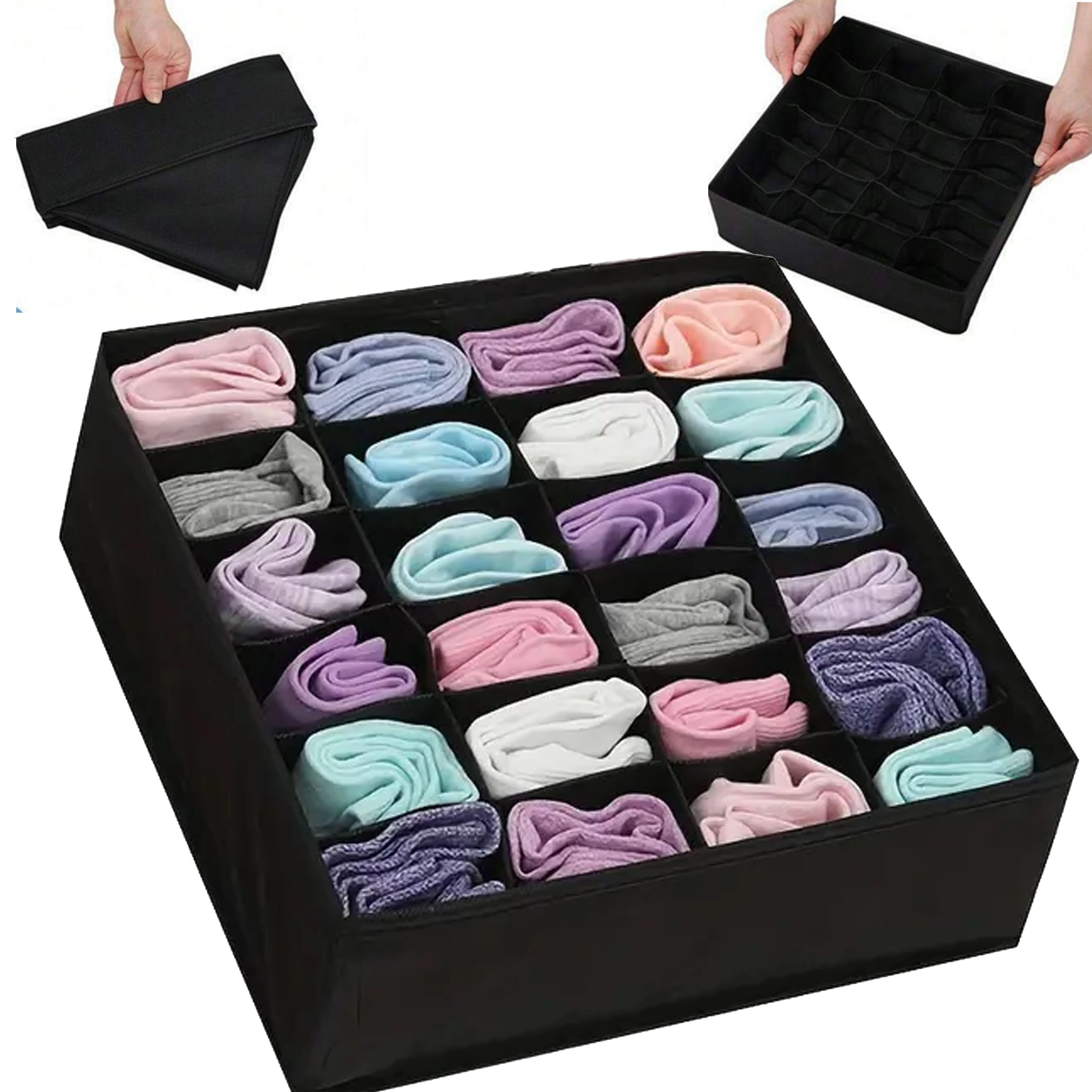 Este práctico organizador para cajones ayuda a domar el caos en la cómoda y el armario. Gracias a sus 24 celdas independientes podrás clasificar fácilmente la ropa y cada pieza tendrá su lugar. Las paredes reforzadas mantienen la forma y facilitan la manipulación, mientras que la tela no tejida transpirable garantiza la circulación del aire.
