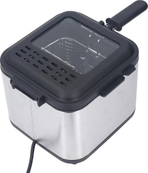 Esta freidora tradicional de aceite es una elección ideal para los amantes de la fritura casera. La capacidad de 2,5 l es perfecta para raciones familiares, mientras que la regulación de temperatura permite adaptar la fritura a distintos tipos de alimentos: desde patatas fritas y pescado hasta filetes empanados o nuggets.