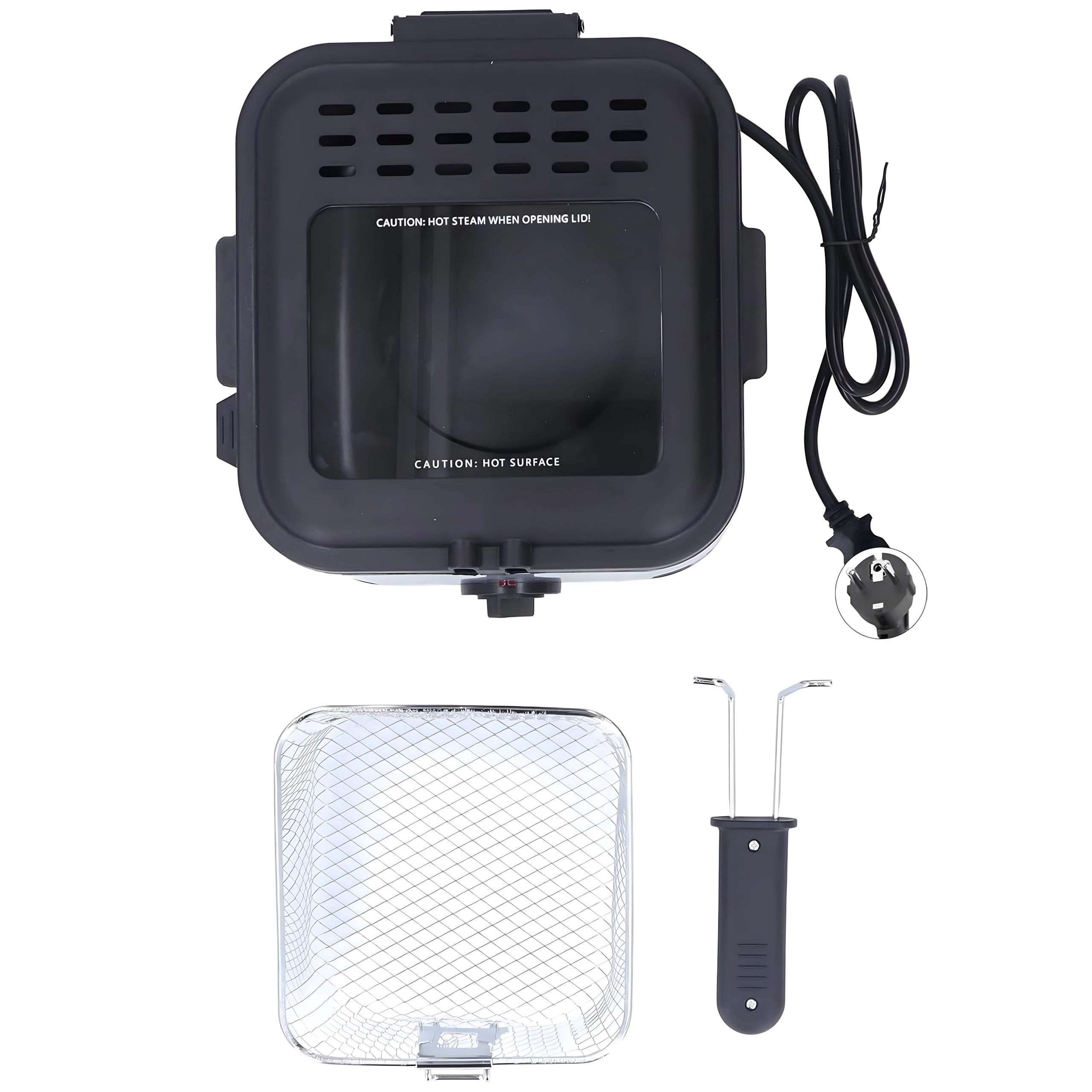 - Freidora, cesta de fritura con mango, tapa