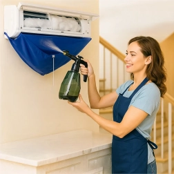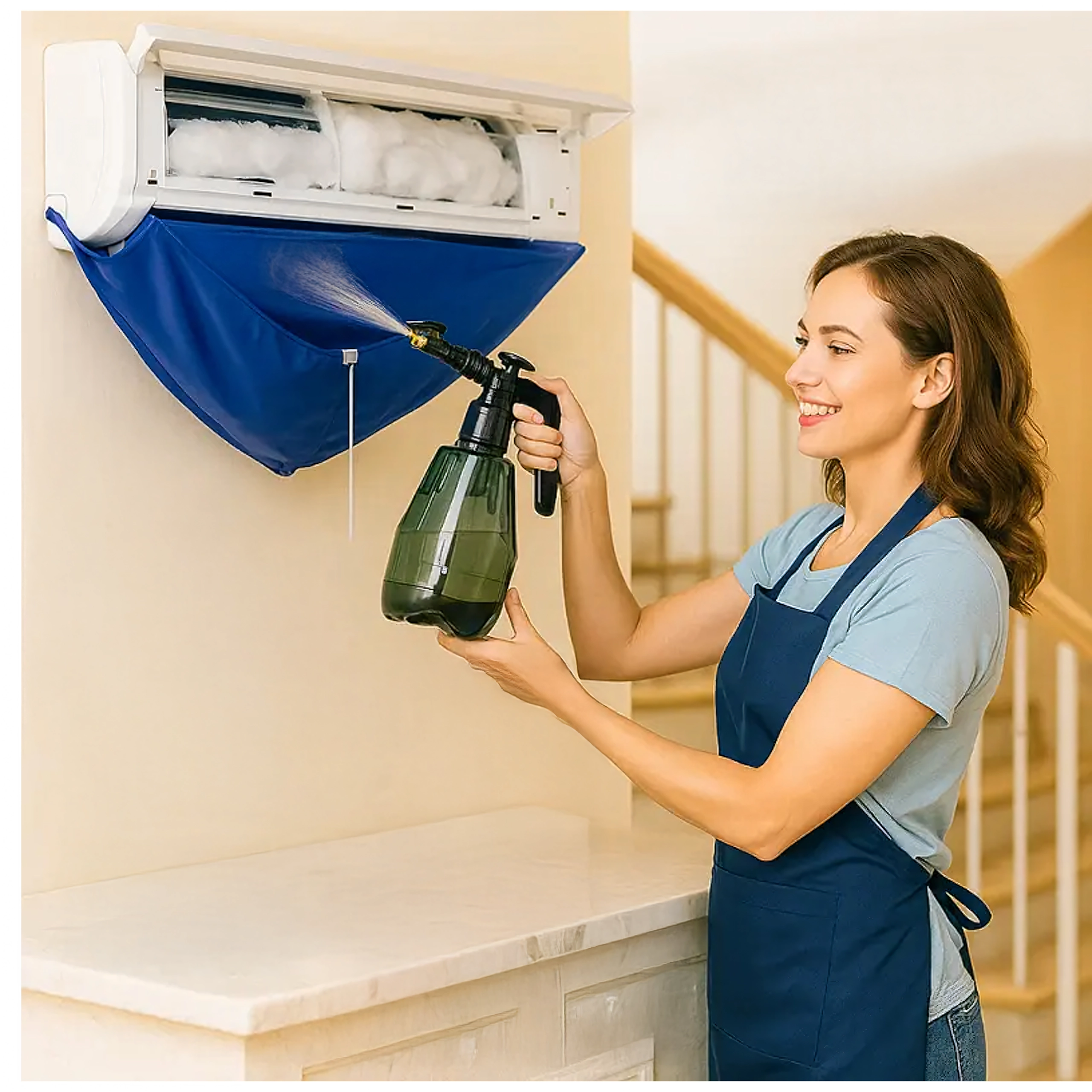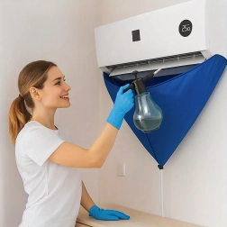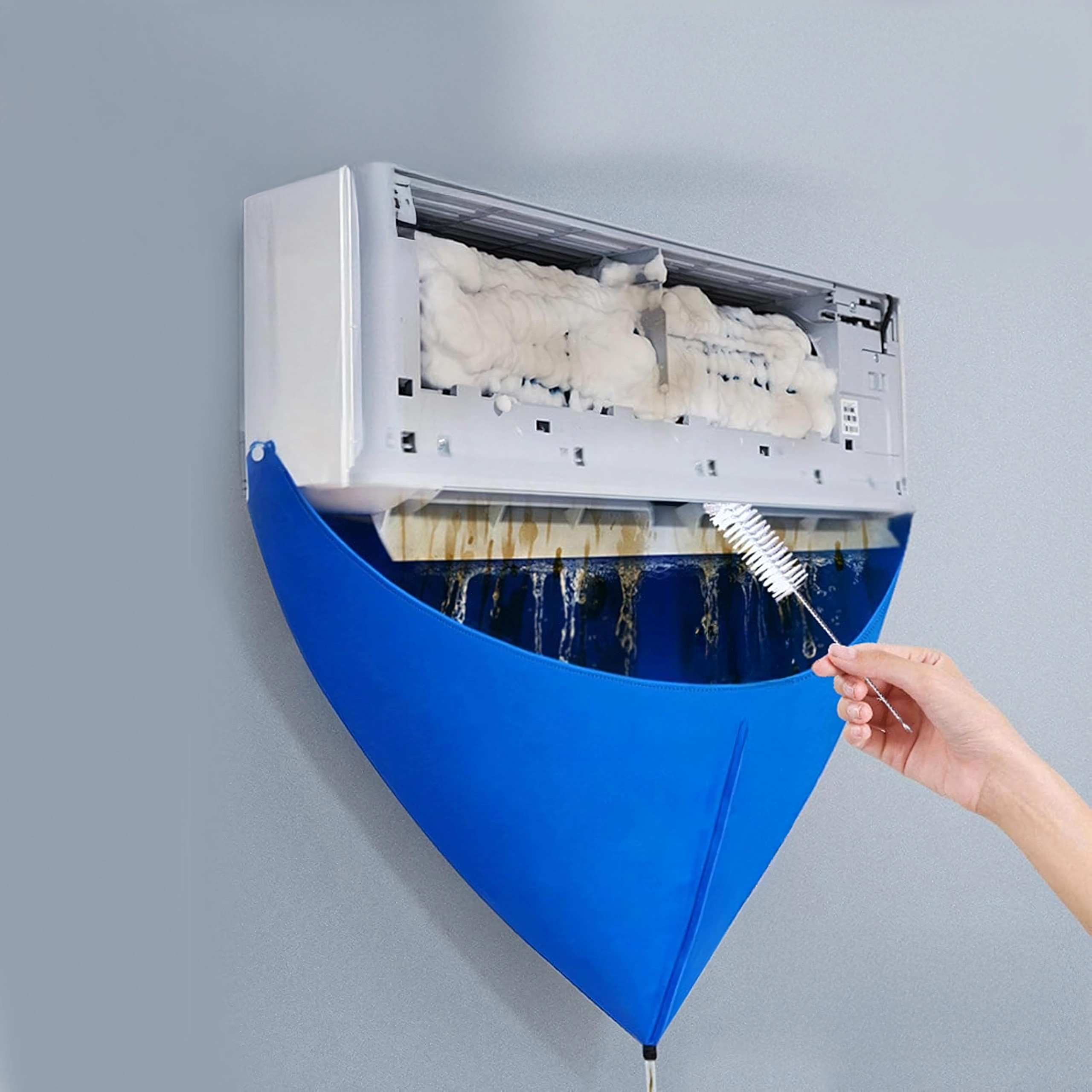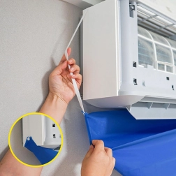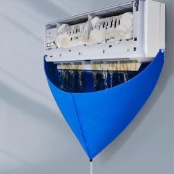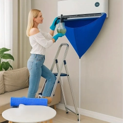 Facilite el mantenimiento de aires acondicionados murales con esta bolsa protectora impermeable que recoge de forma fiable el agua sucia, las soluciones de limpieza y las impurezas. La manguera de drenaje de 2 m integrada conduce el líquido de manera segura a un cubo o al desagüe, y el cierre elástico ayuda a sellar el área alrededor de la unidad para un trabajo limpio y rápido.