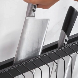 Soporte para tabla de cortar, cesto para cubiertos, ganchos para utensilios o soporte para detergentes: todo a mano y ordenado.