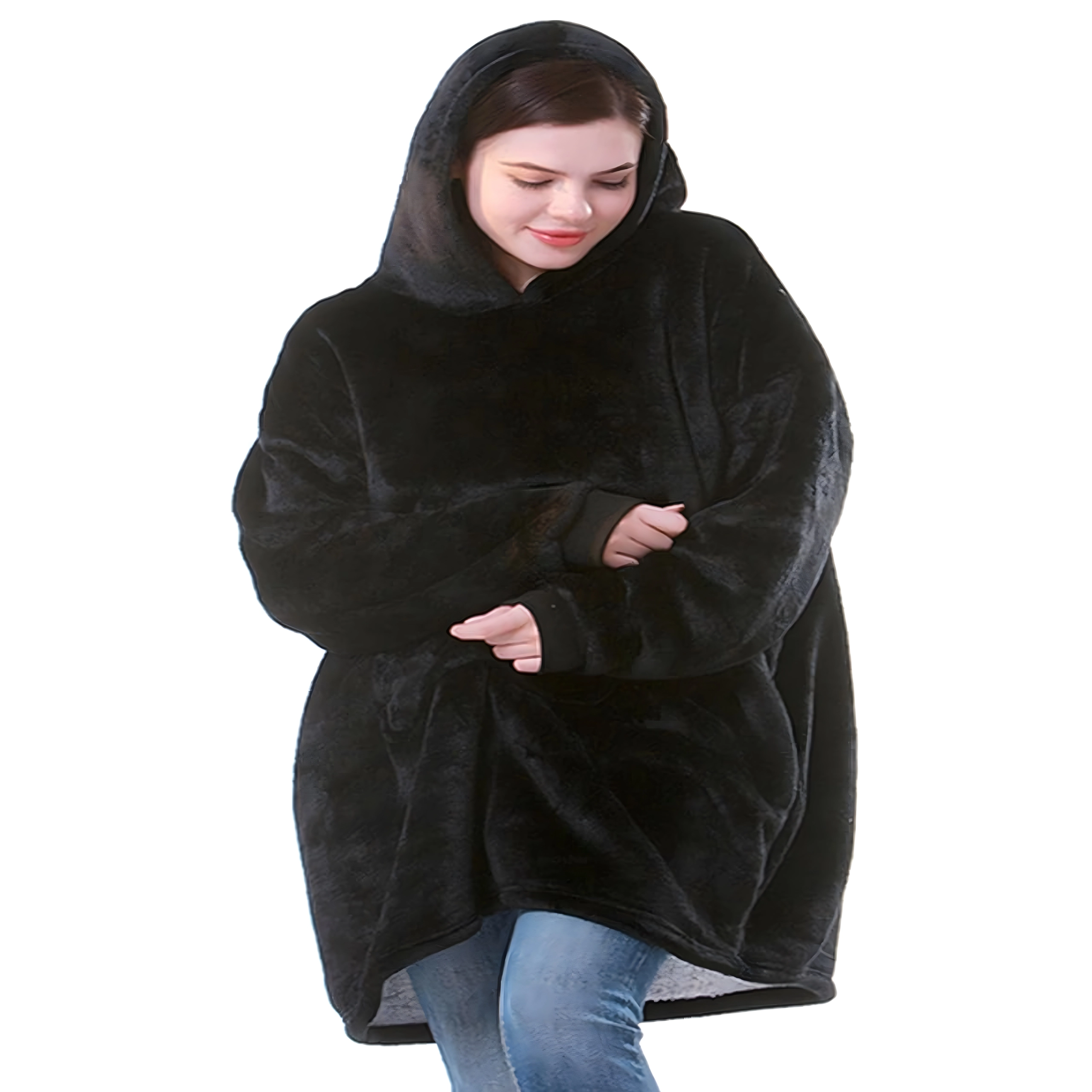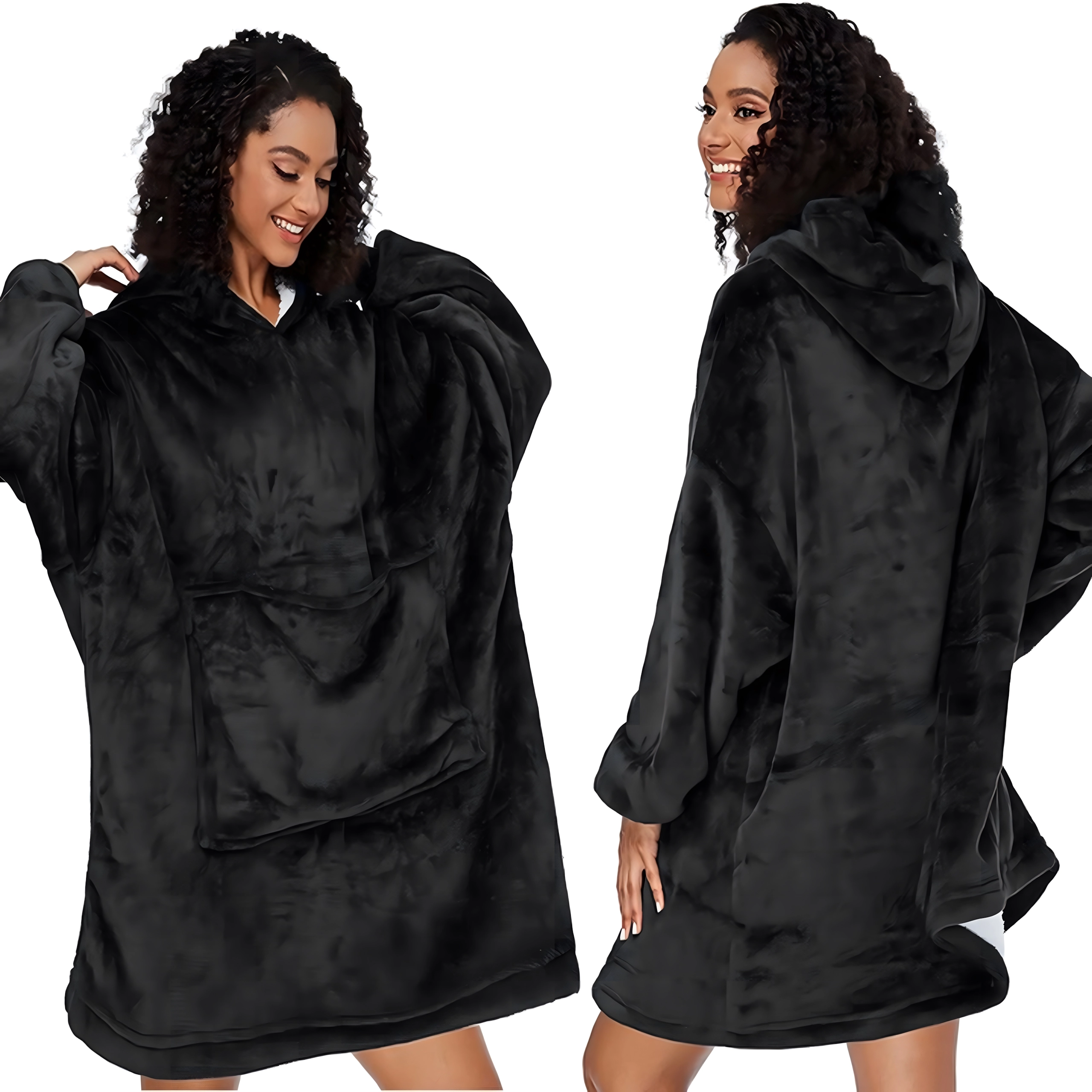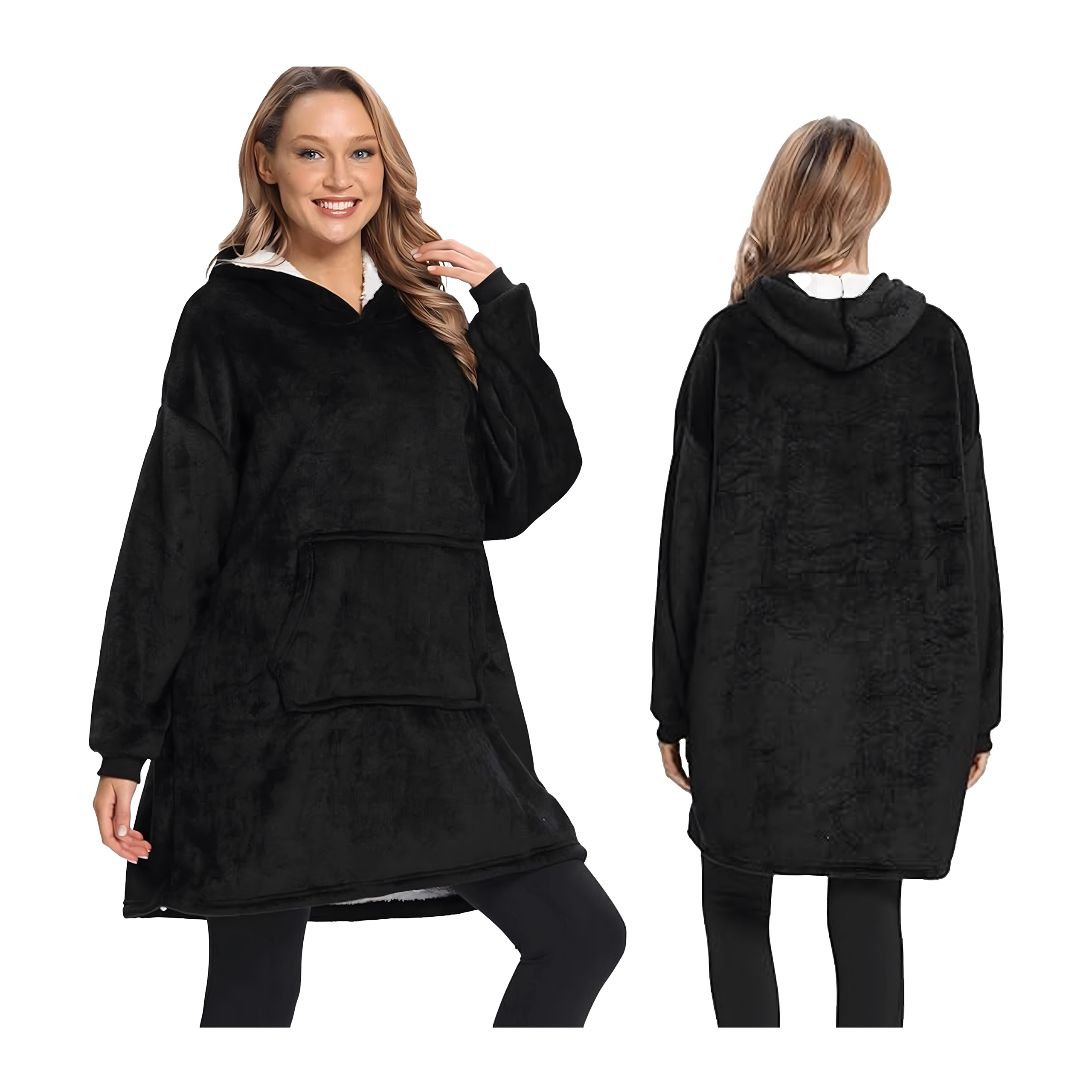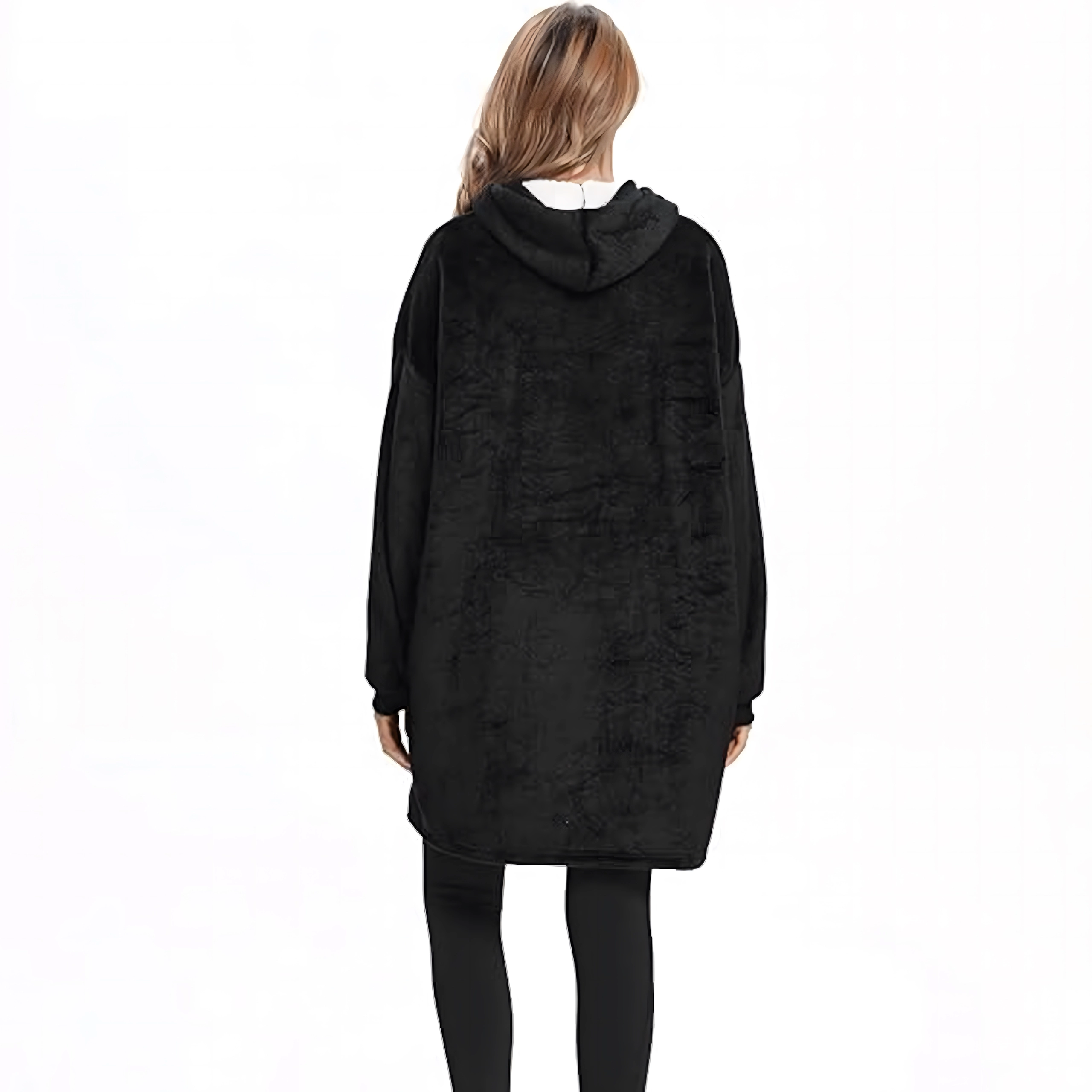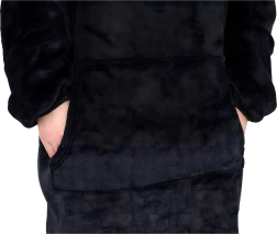 Gracias a la capucha espaciosa y al gran bolsillo frontal tendrás todo a mano y la cabeza abrigada. El color negro es atemporal y combina fácilmente con cualquier interior. Ideal para tumbarse en el sofá, leer y largos maratones de cine.