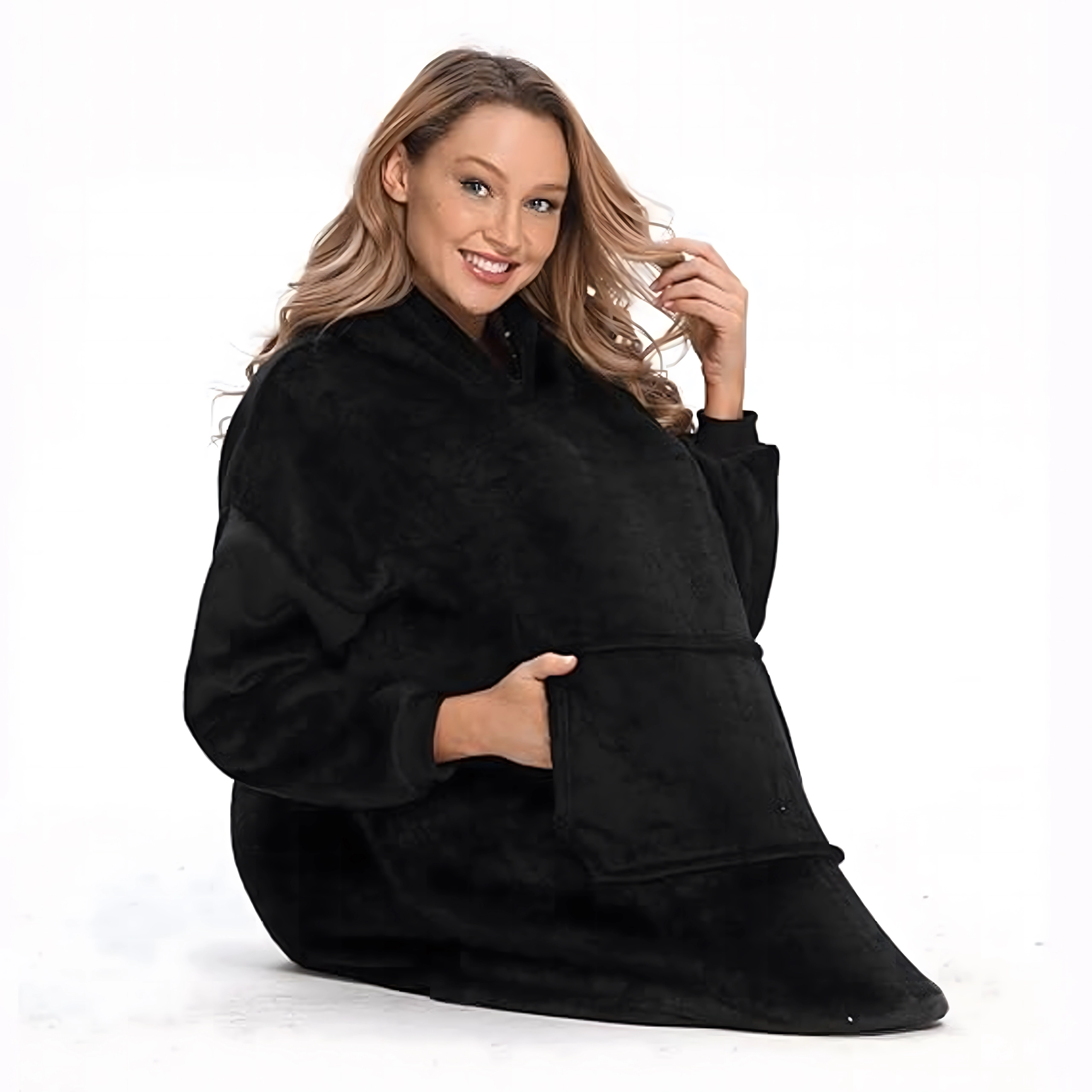 Descubre el máximo confort y calor con esta manta poncho oversize con capucha. Es suave, densa y cálida, ideal para días y noches frías para mujeres y hombres. El gran bolsillo canguro guarda el móvil o el mando, y el corte universal garantiza libertad de movimiento durante el descanso en casa, ver películas o trabajar desde casa.