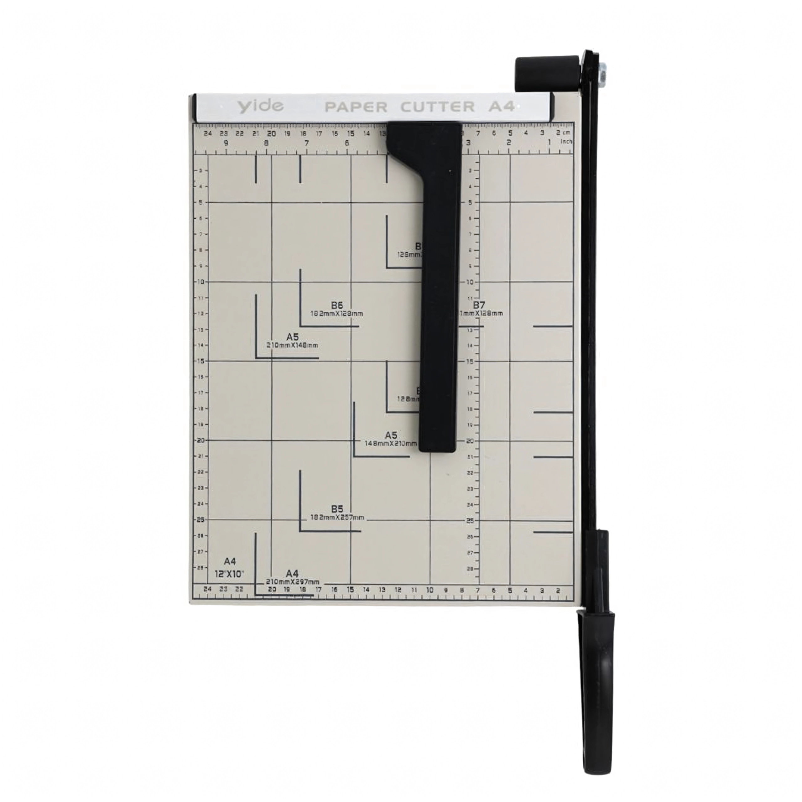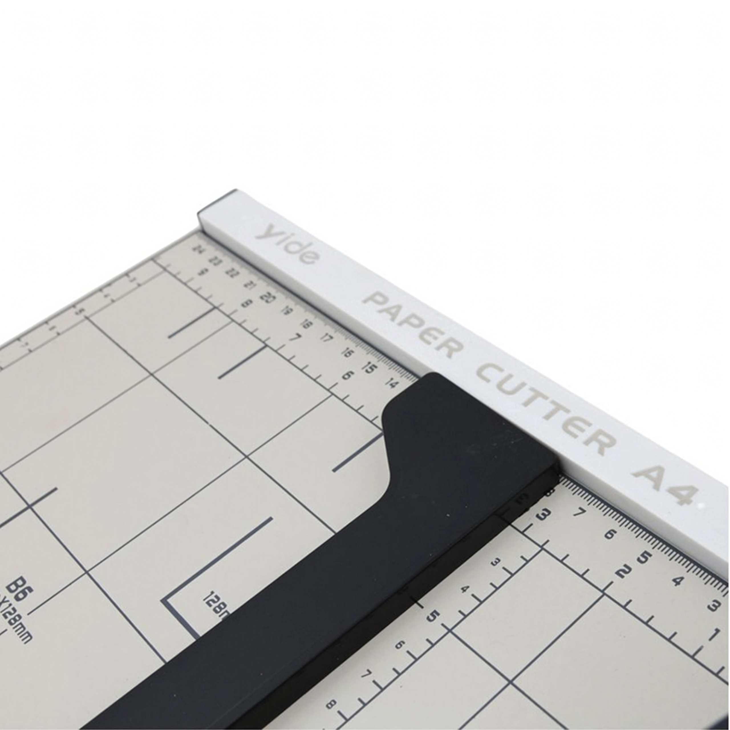 La regla integrada y las marcas A4, A5, B5, etc. agilizan la alineación del papel y ayudan a lograr cortes perfectamente rectos.