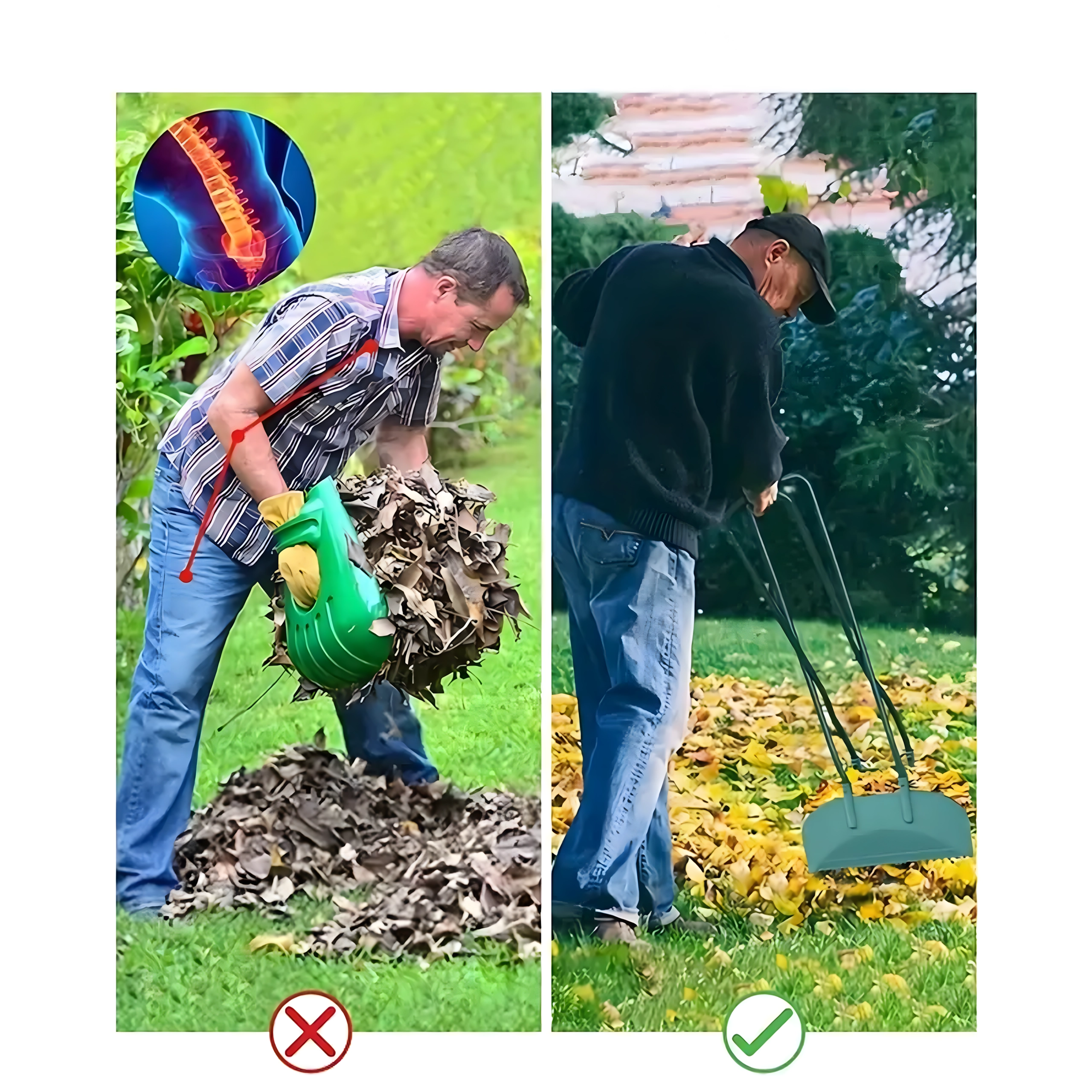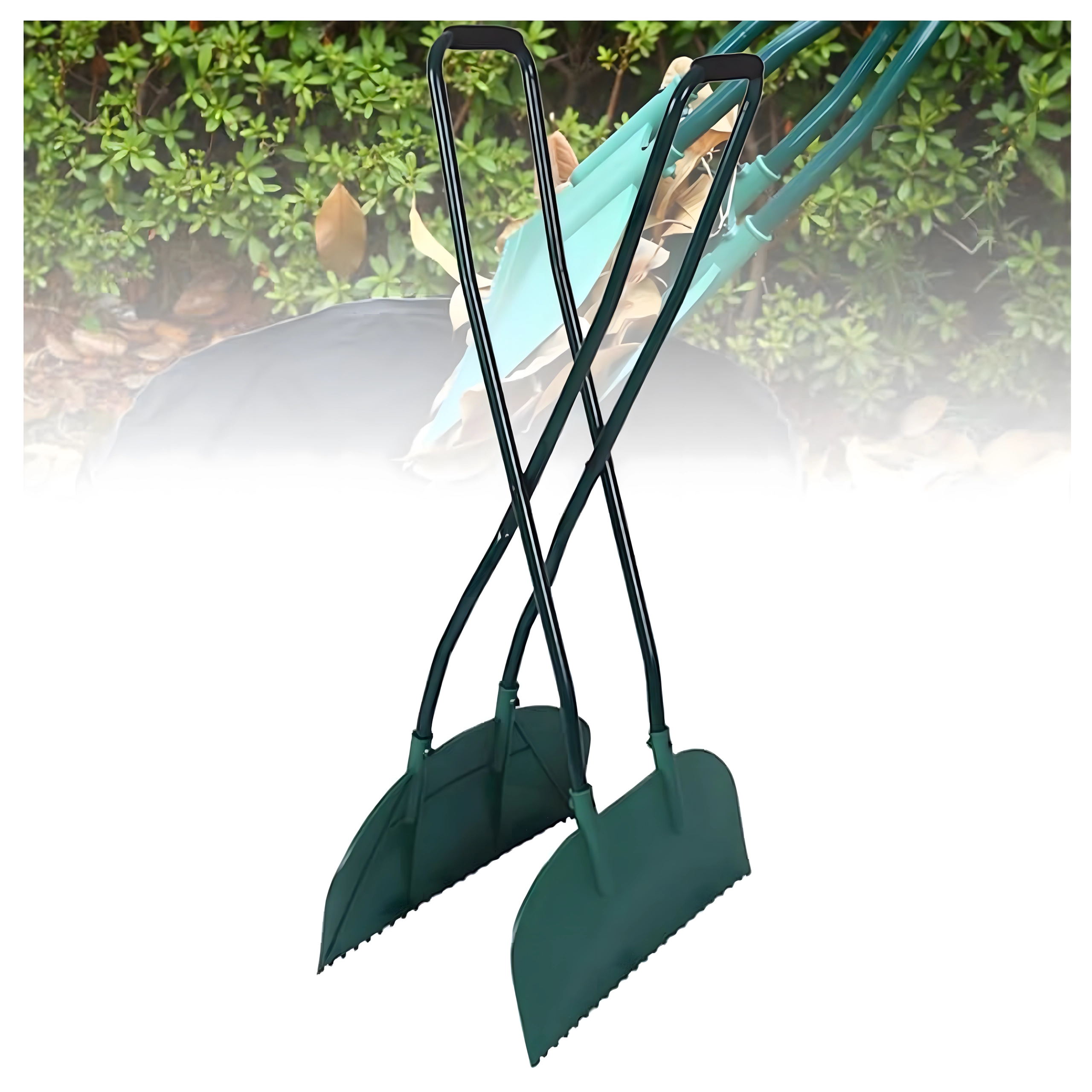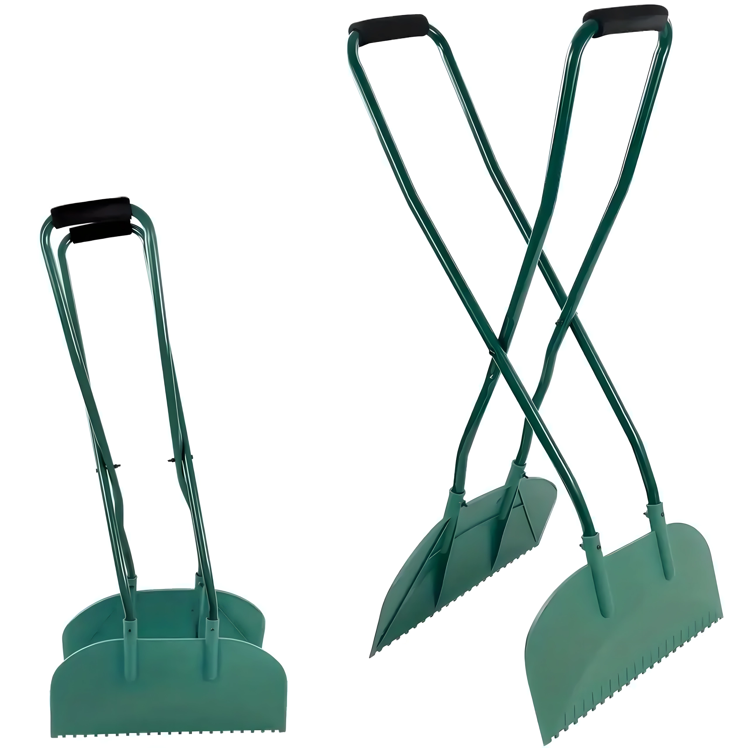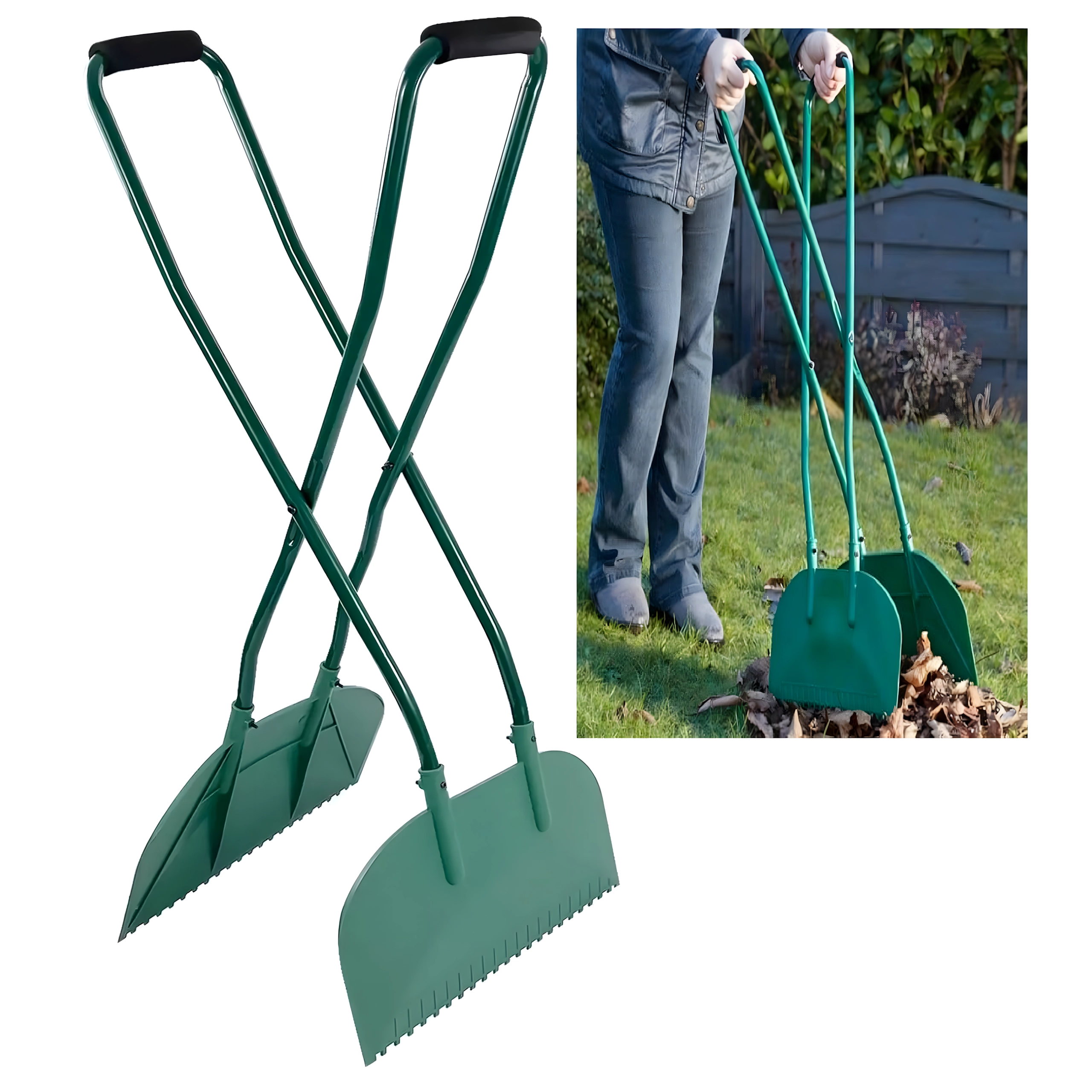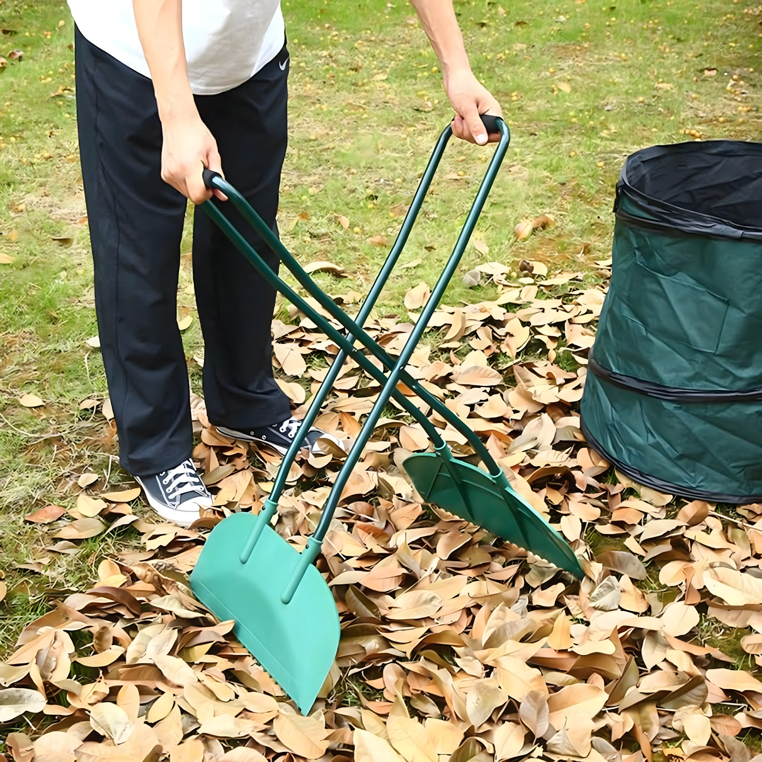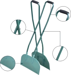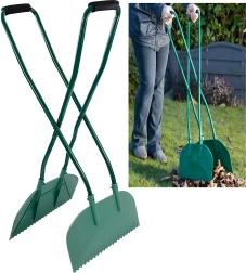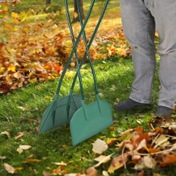 Los mangos largos permiten recoger hojas y suciedad cómodamente sin necesidad de agacharse. Ideal para trabajos prolongados en el césped o en la entrada.
