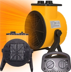 Los mandos intuitivos permiten un ajuste continuo del termostato y la selección de modos. La rejilla de seguridad frontal protege del contacto con el elemento calefactor; su construcción robusta y la base inclinable garantizan un flujo de aire caliente dirigido justo donde se necesita.