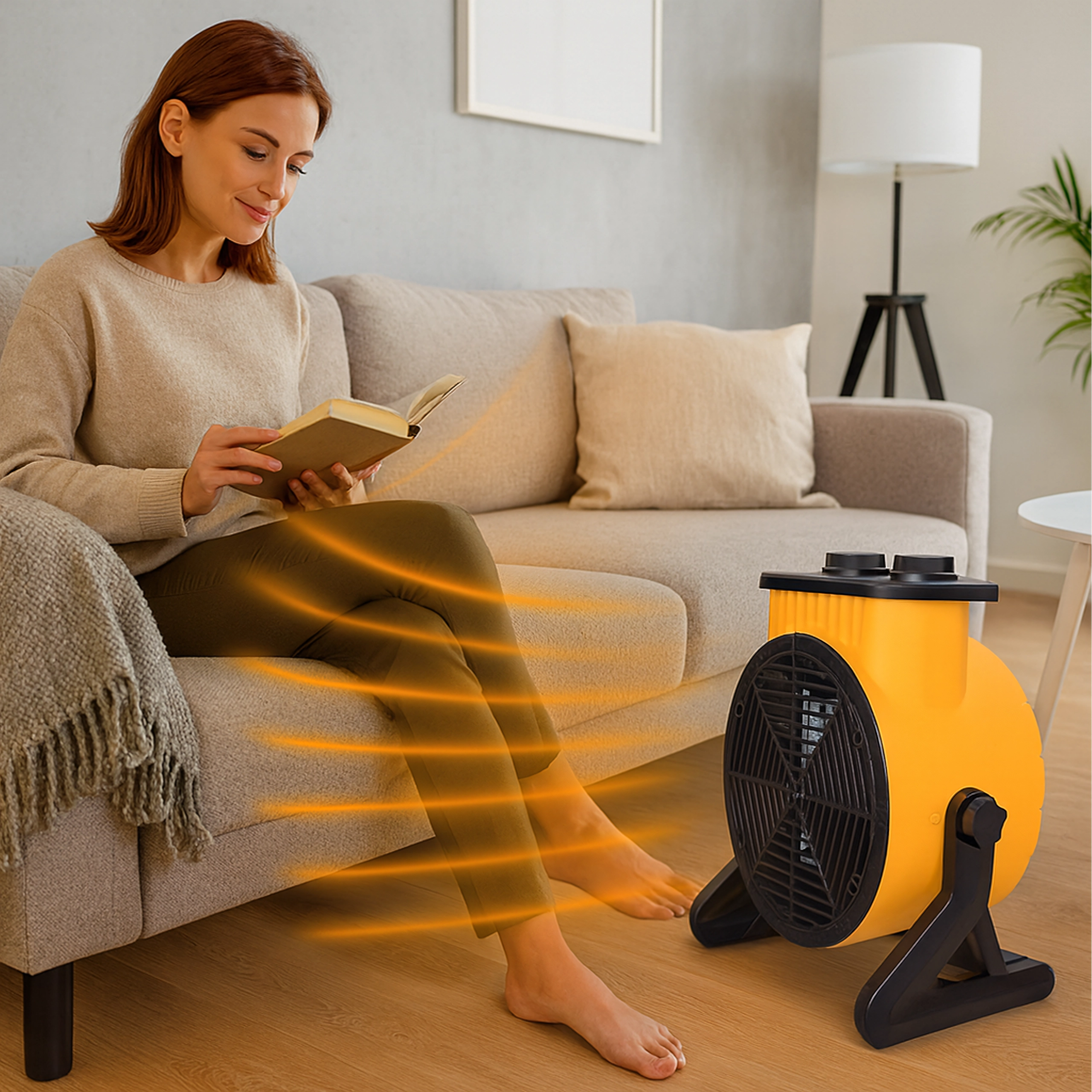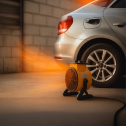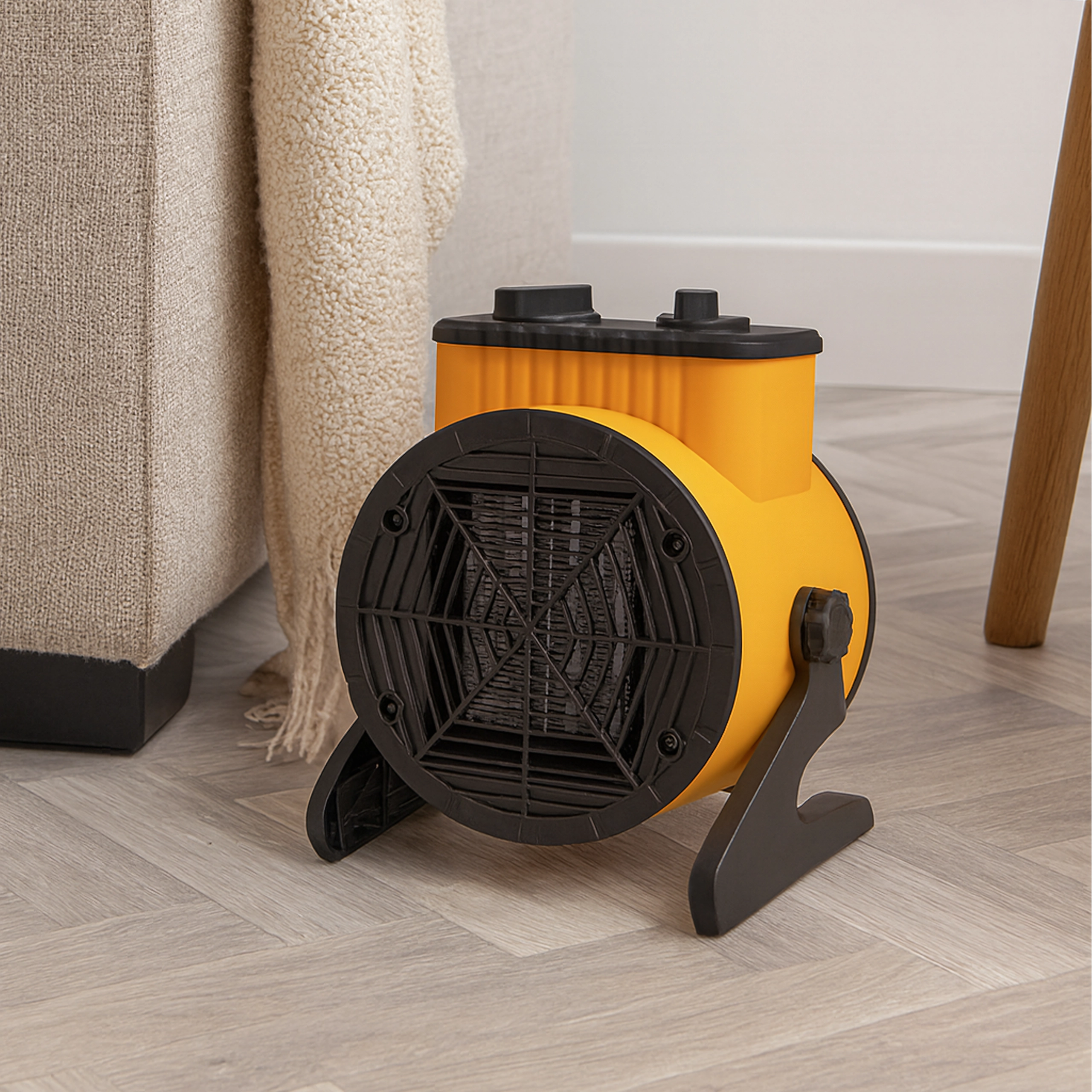 La base estable e inclinable y el asa integrada permiten dirigir el flujo de aire exactamente donde lo necesites, ya sea en el baño, el taller o el garaje.