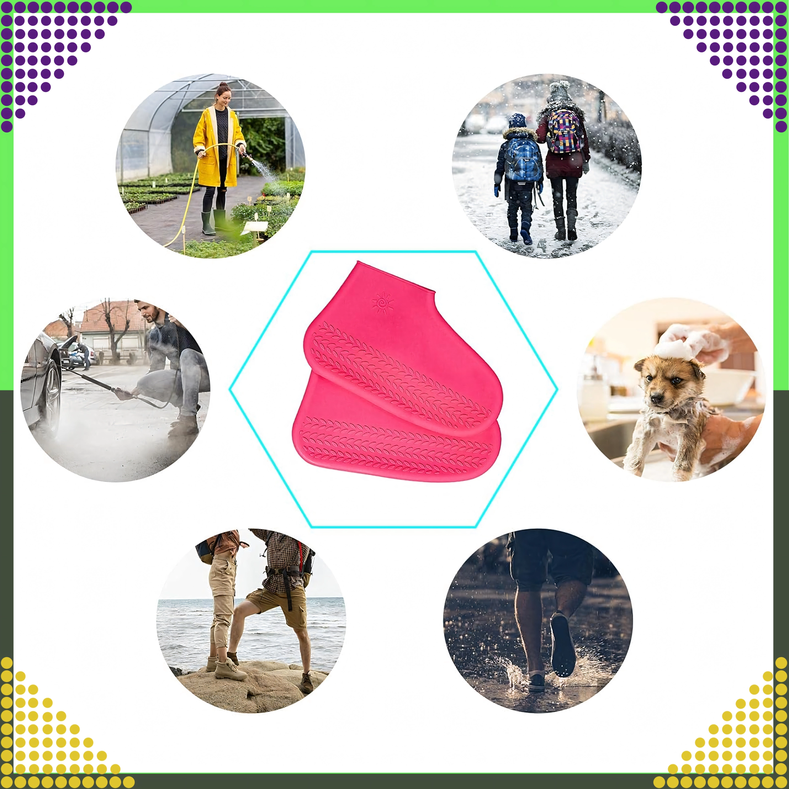 Los cubrecalzado de silicona impermeable son una solución inteligente para días lluviosos, charcos y nieve derretida. El material resistente y a la vez flexible se ajusta perfectamente a la mayoría de tipos de calzado y ofrece una protección fiable contra el agua y la suciedad. La textura antideslizante de la suela mejora la estabilidad y la comodidad al caminar sobre superficies mojadas.