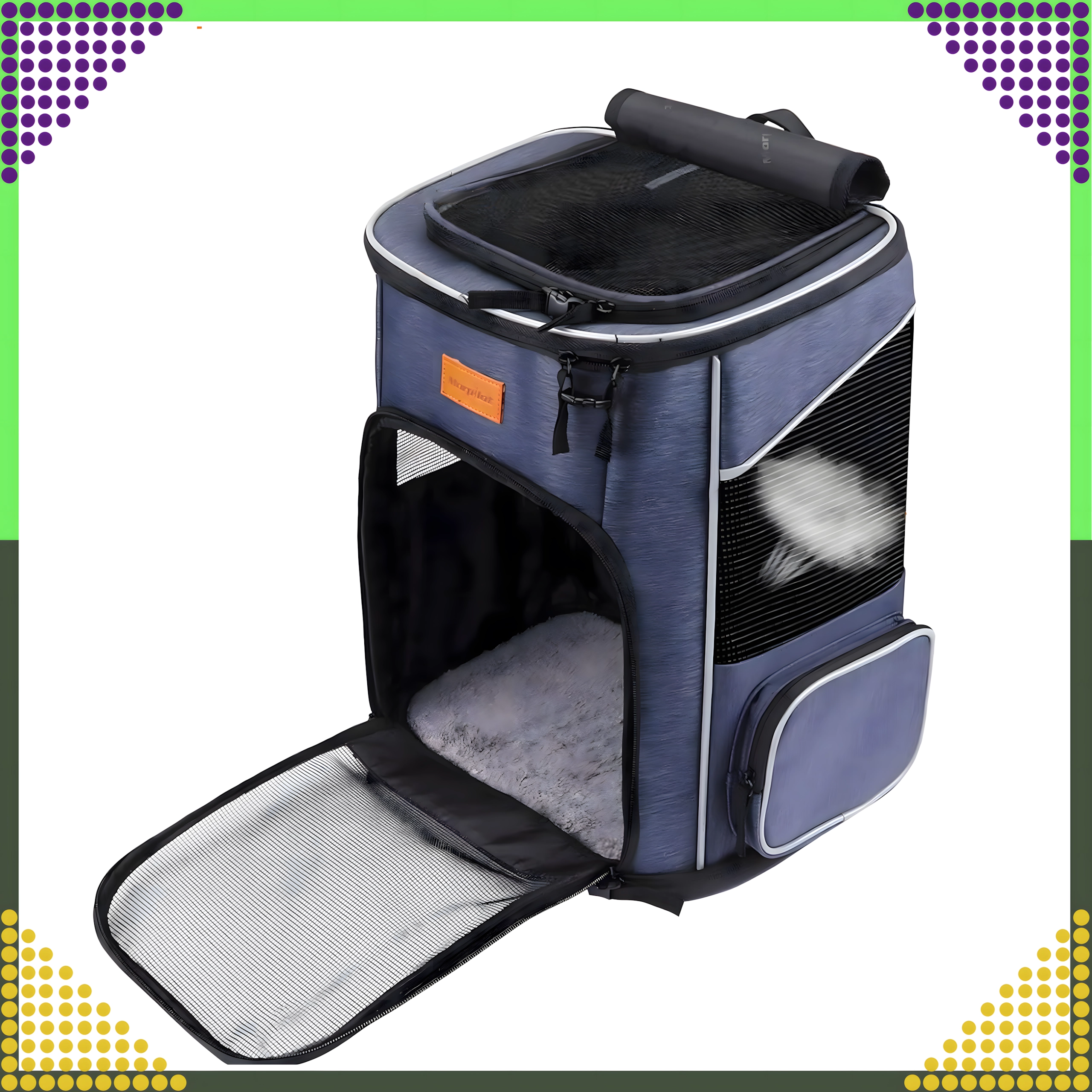 Los grandes paneles de malla en la parte frontal y superior garantizan un flujo constante de aire fresco y una vista tranquila para tu mascota.
