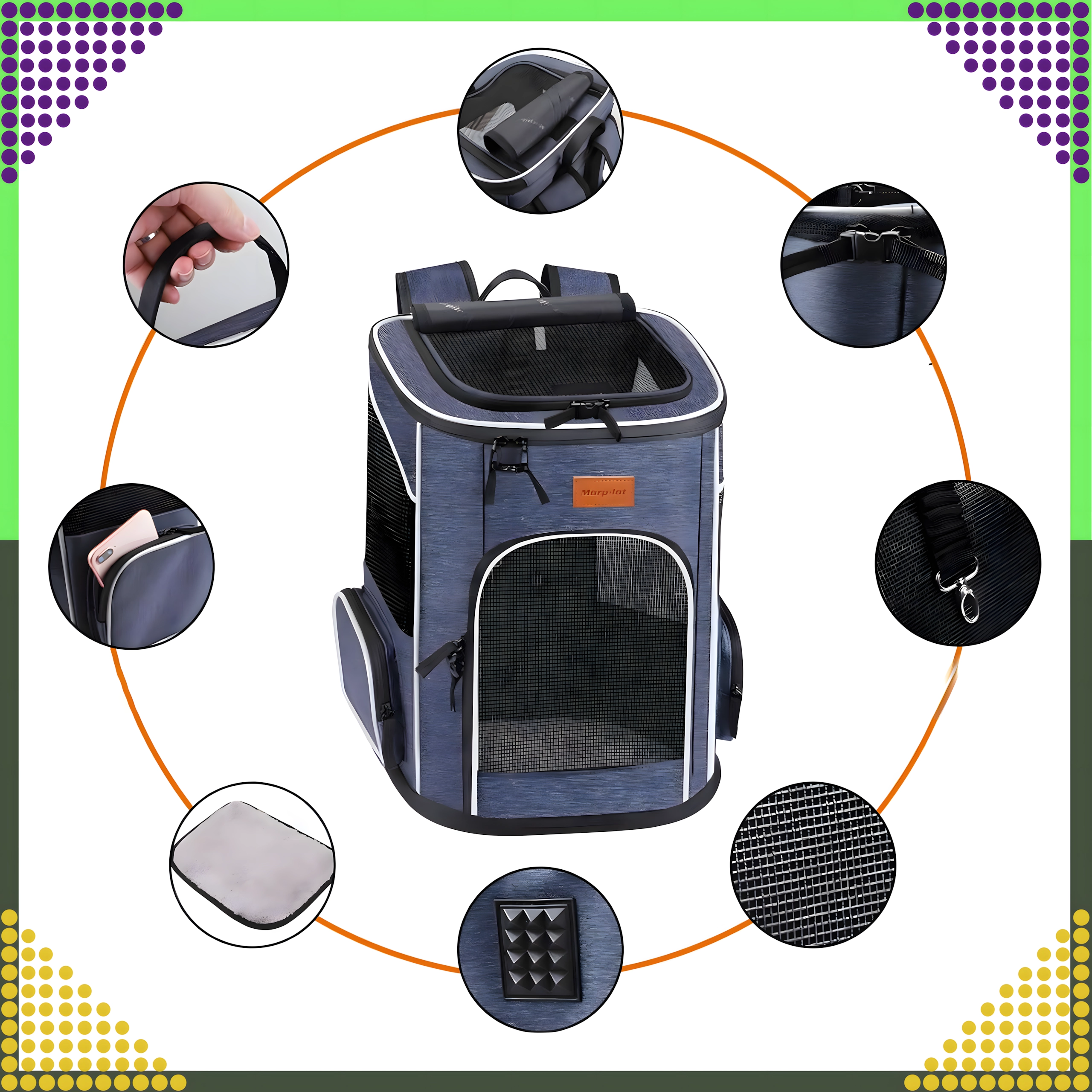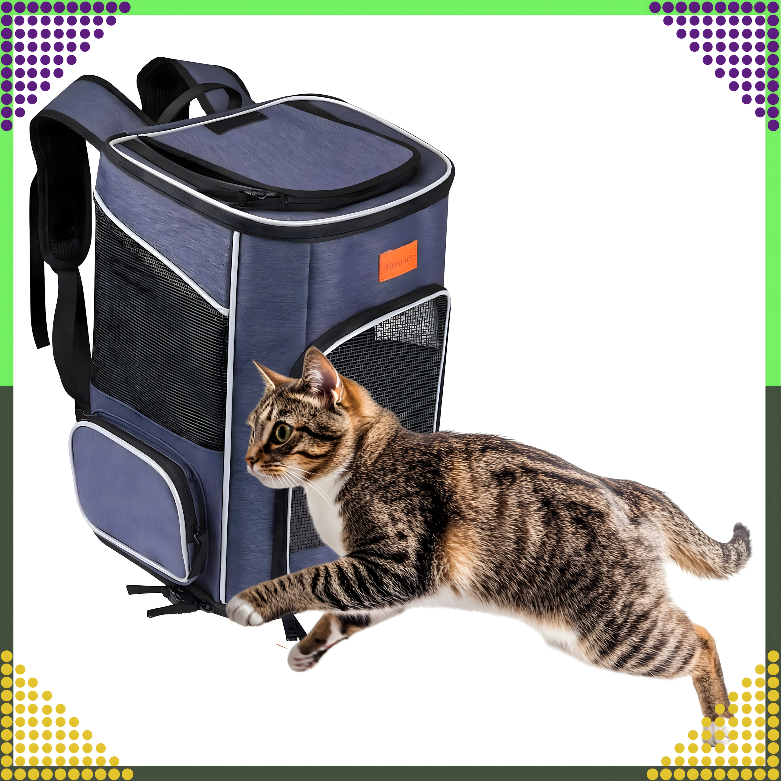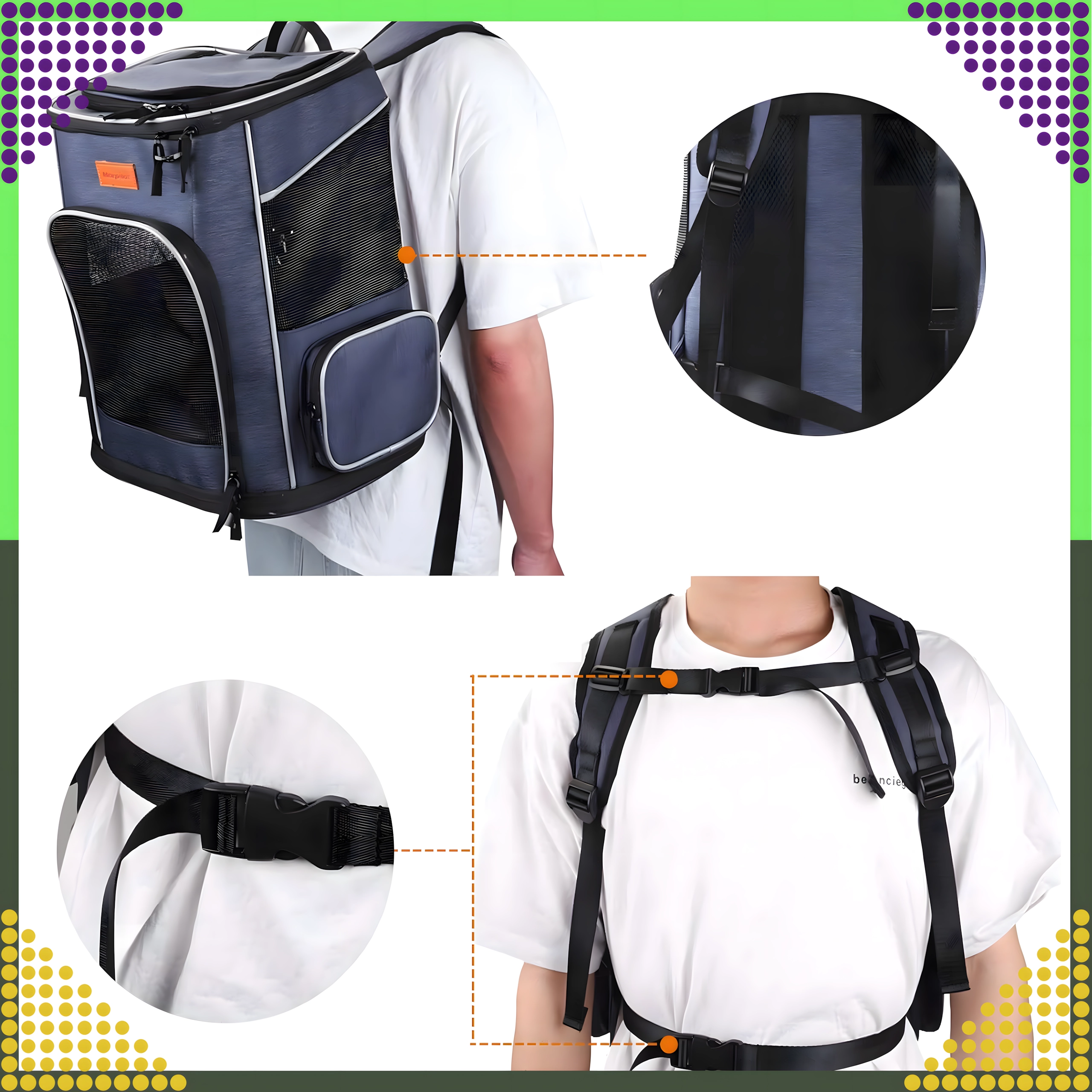 La moderna mochila para mascotas combina una construcción resistente con comodidad tanto para el animal como para el dueño. Gracias a las ventanas de malla, tu mascota disfruta de una excelente visibilidad y acceso a aire fresco, mientras que los tirantes y la correa de pecho ajustables te ofrecen un transporte cómodo sin presión en la espalda.