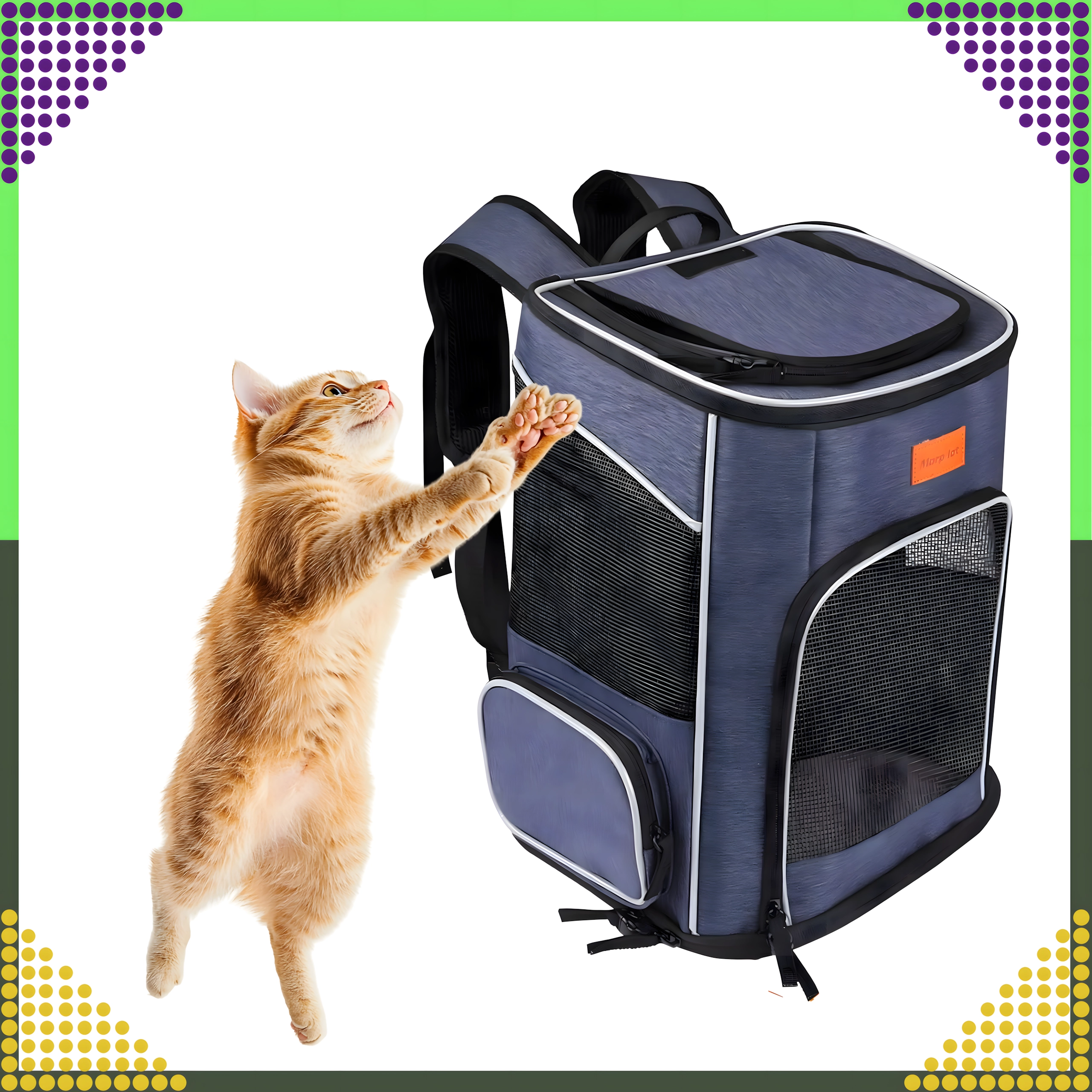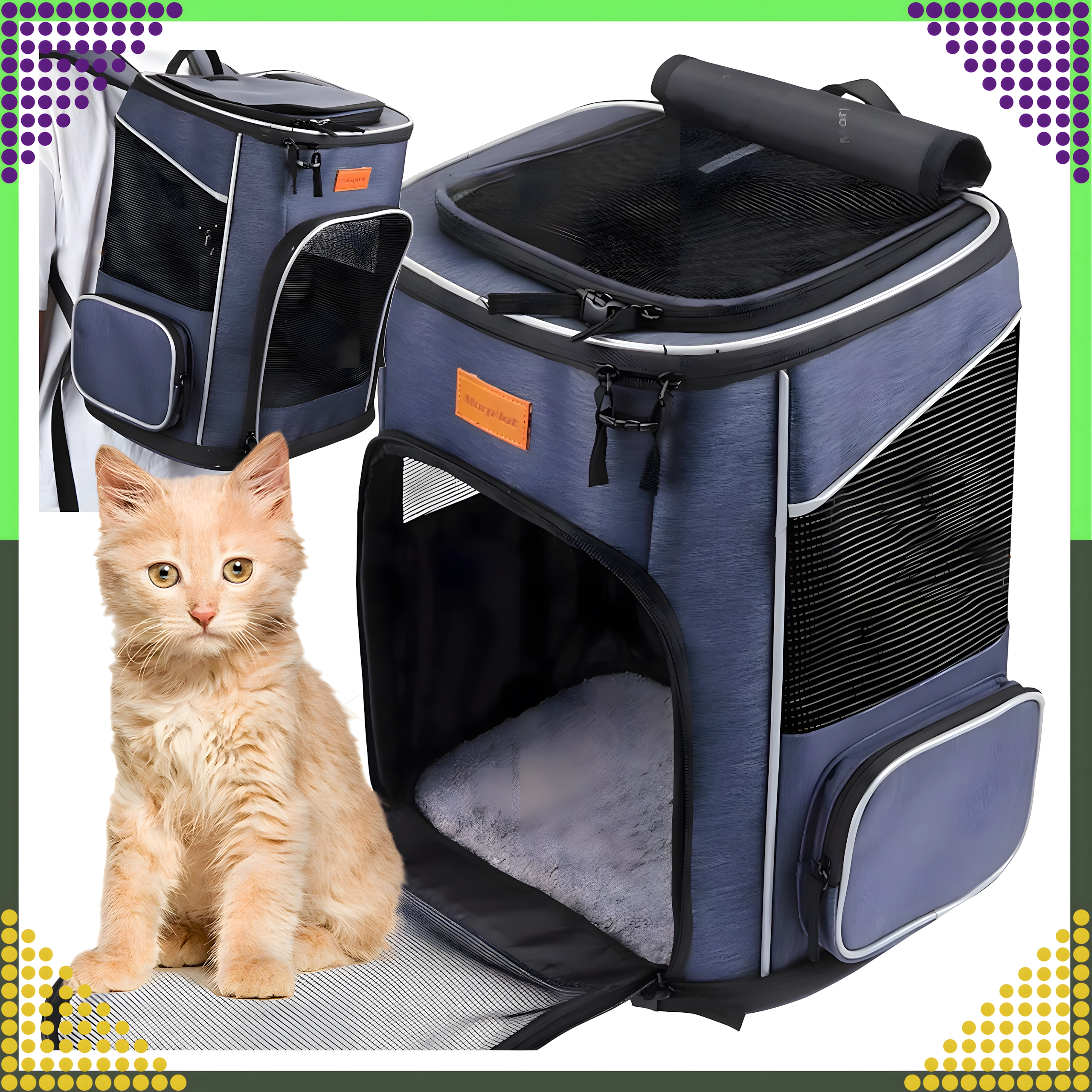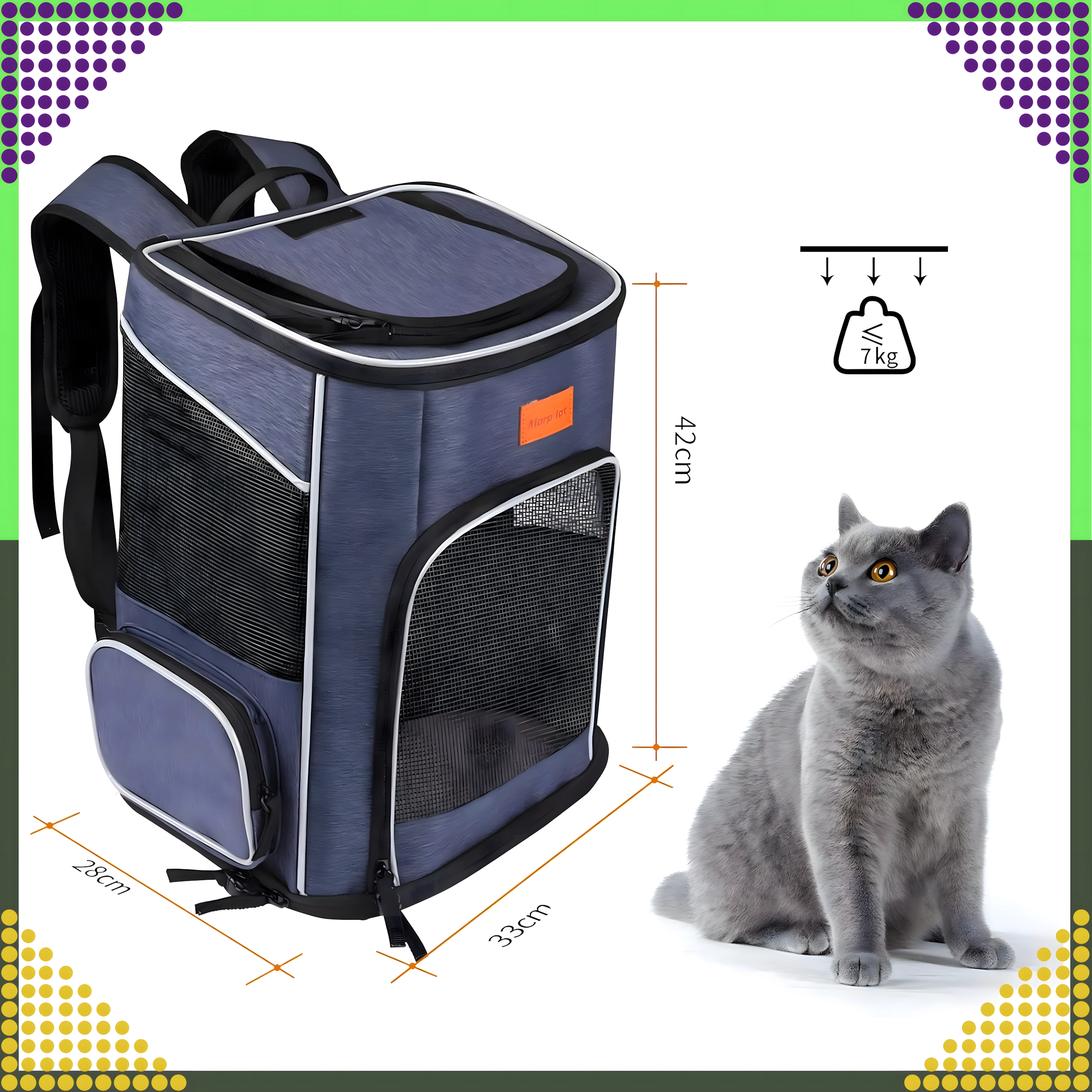 Brinda a tu mascota comodidad y seguridad en los viajes. Este transportín tipo mochila, espacioso, ligero y bien ventilado, ofrece paneles de malla para la circulación del aire, tirantes ergonómicos para tu comodidad y bolsillos prácticos para pequeños objetos. Ideal para gatos y perros pequeños en excursiones, visitas al veterinario y trayectos cortos.