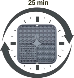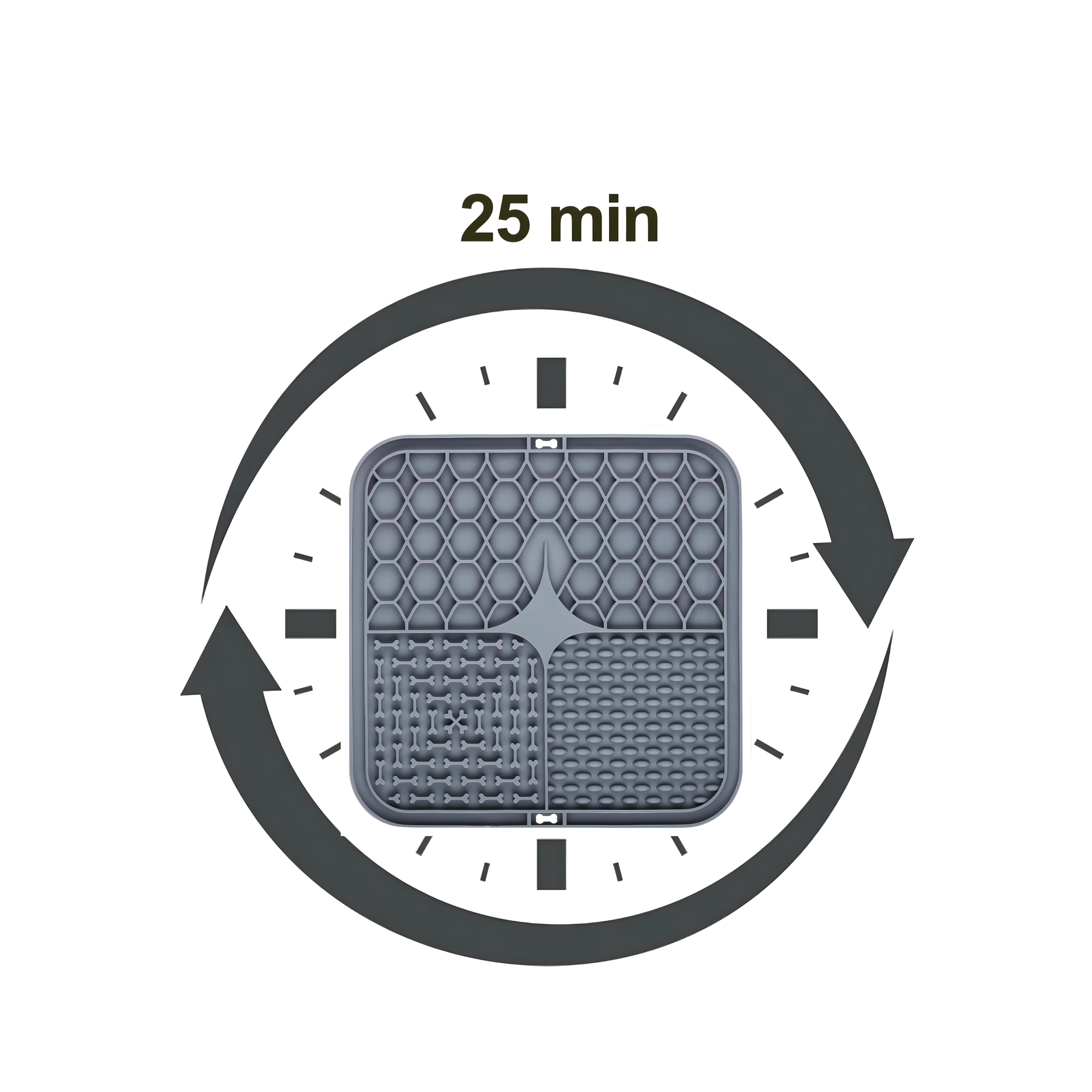 La parte posterior con ventosas antideslizantes mantiene la alfombra firmemente en el suelo o en superficies verticales (por ejemplo, en el baño durante el lavado). La alfombra está hecha de silicona suave y fácil de limpiar y es ideal para ralentizar la alimentación y como distracción durante el cuidado del pelaje o la visita al veterinario.