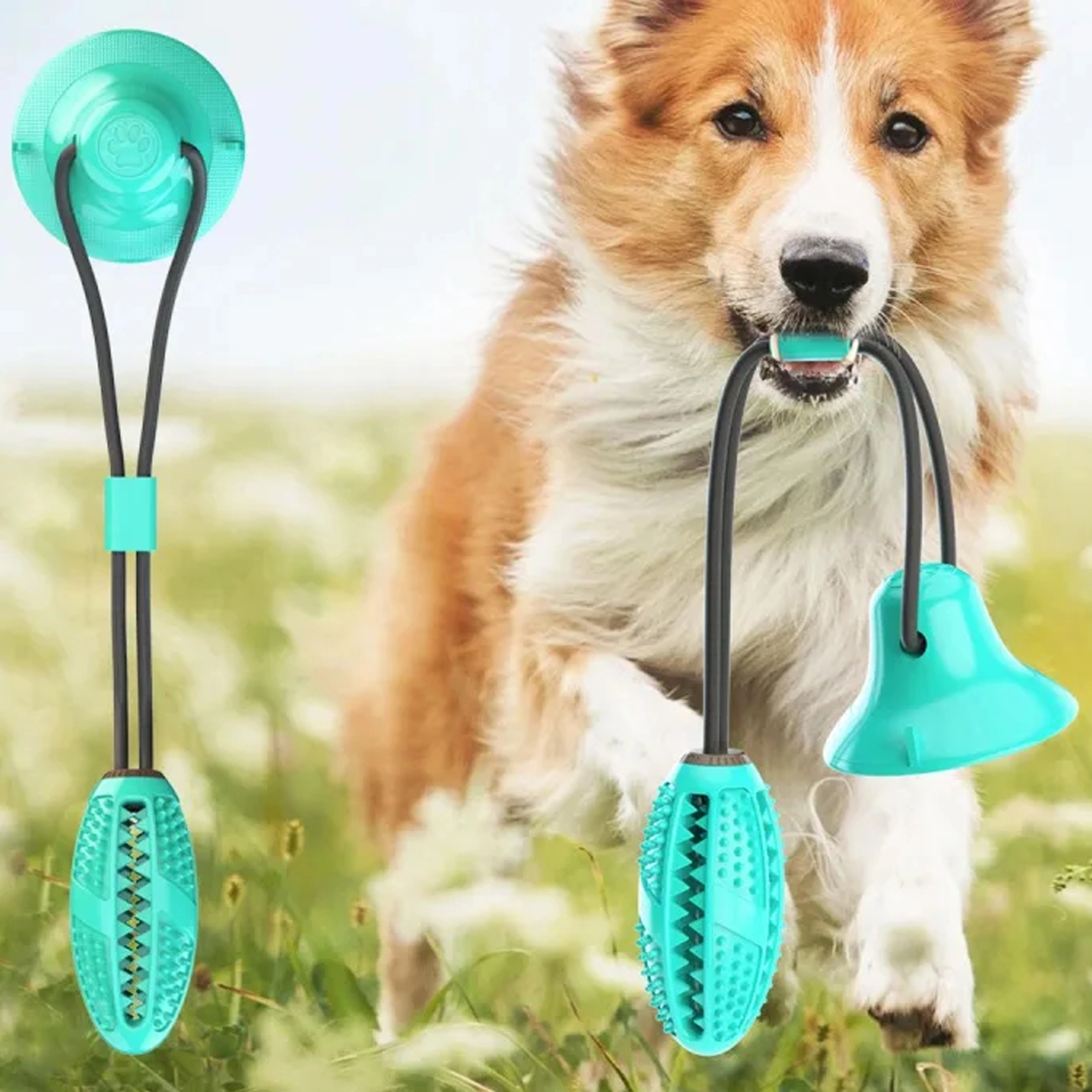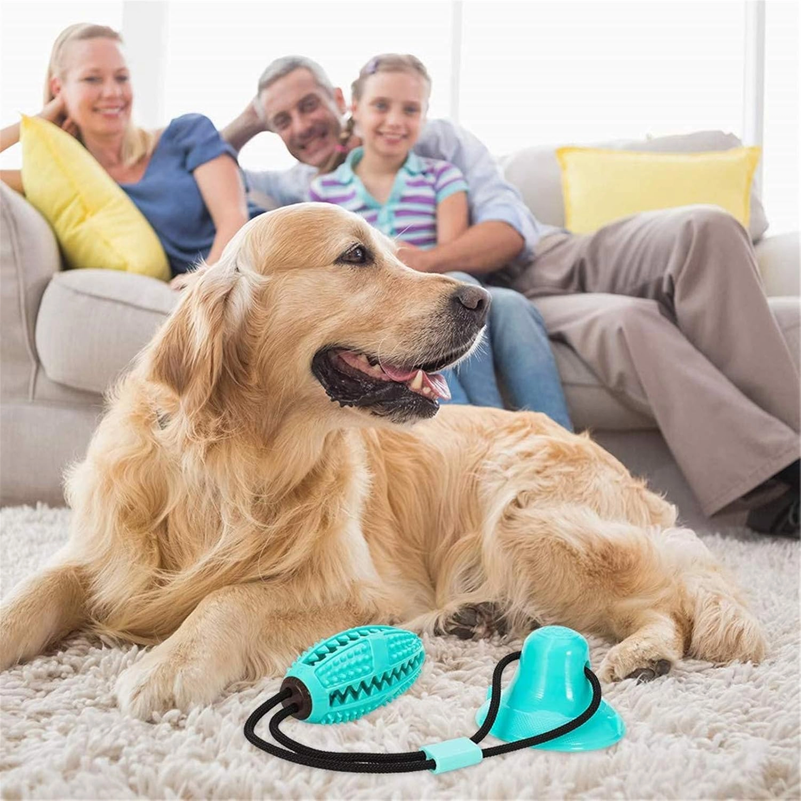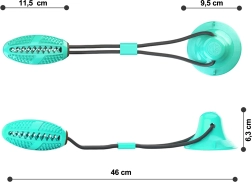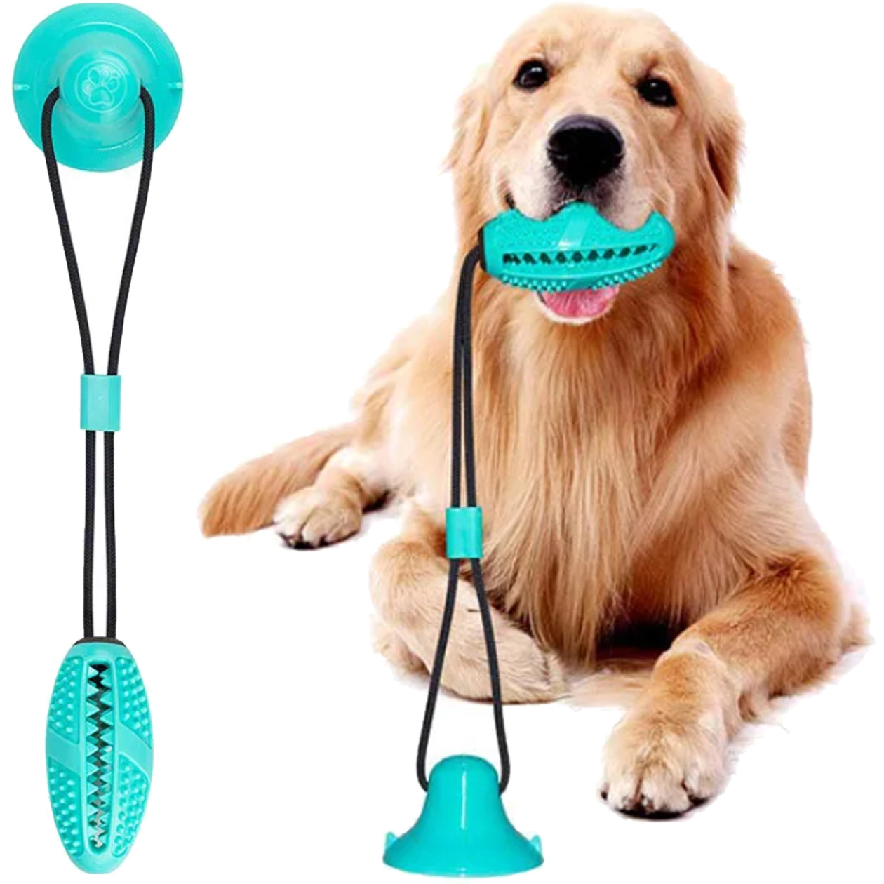Juguete dental interactivo para perros con ventosa resistente y cuerda duradera que garantiza juegos prolongados, tanto en solitario como en compañía. Las protuberancias y cerdas texturizadas, al masticar, limpian los dientes, masajean las encías y ayudan a eliminar la placa dental. Gracias a las aberturas para premios, el juguete ralentiza la alimentación, fomenta la estimulación mental y satisface de forma segura la necesidad natural de masticar.