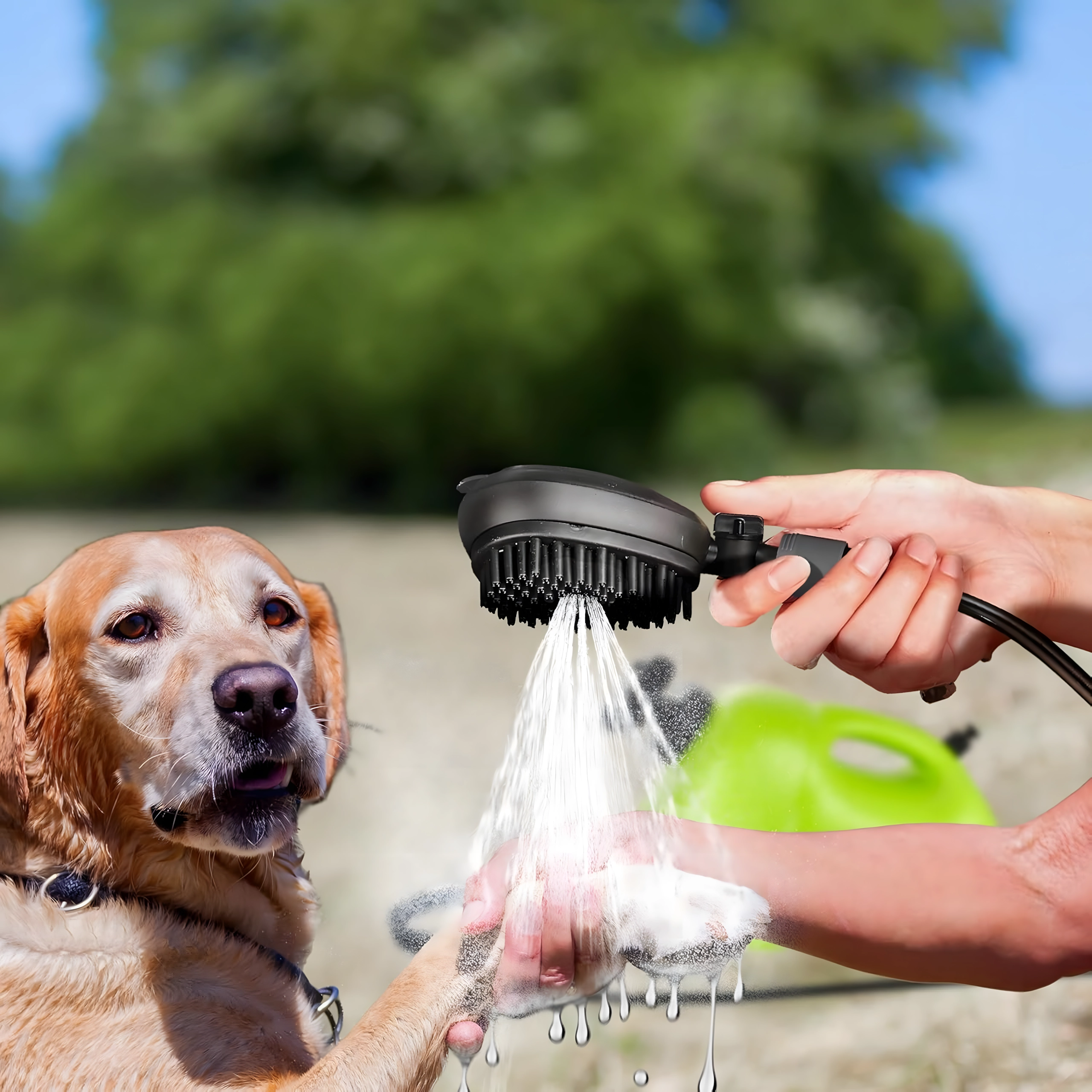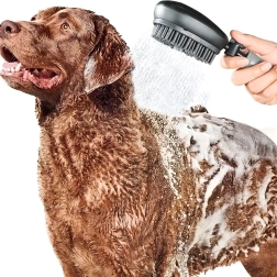 - 2 en 1 ducha + cepillo para lavar y masajear el pelaje en un solo paso