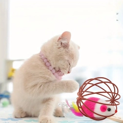 La jaula esférica de alambre rueda suavemente por el suelo, de modo que el gato puede seguir el juguete, golpearlo con las patas y perseguirlo con facilidad. La estructura abierta invita a la interacción y fomenta el comportamiento natural de caza.