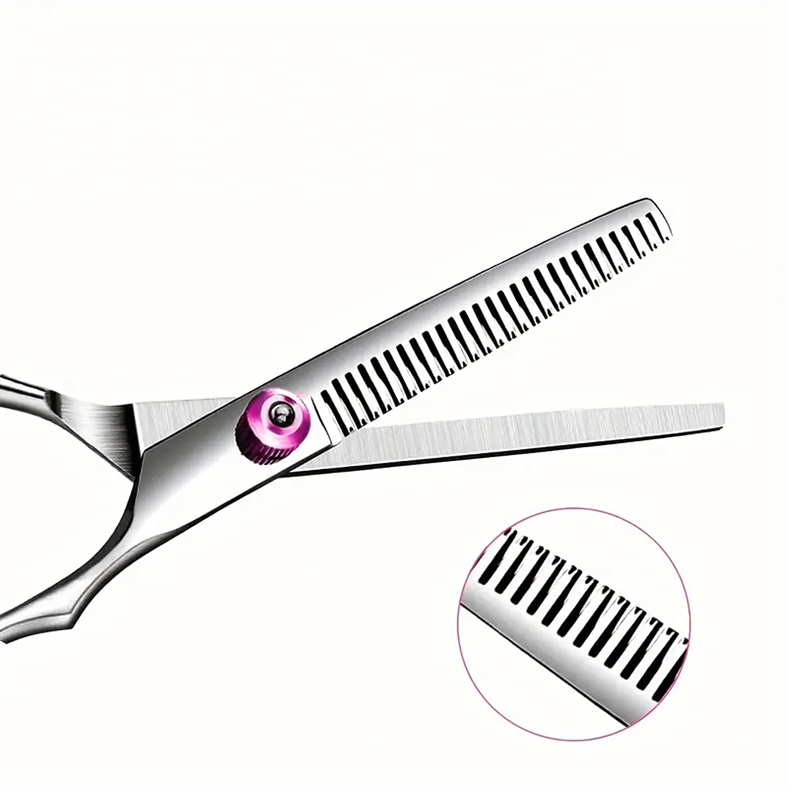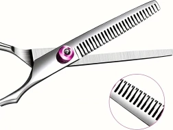 Las tijeras de entresacar con dientes finos reducen el volumen de forma fluida y suavizan las transiciones, ideales para un acabado natural sin líneas marcadas.