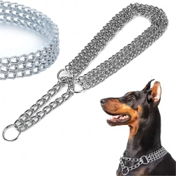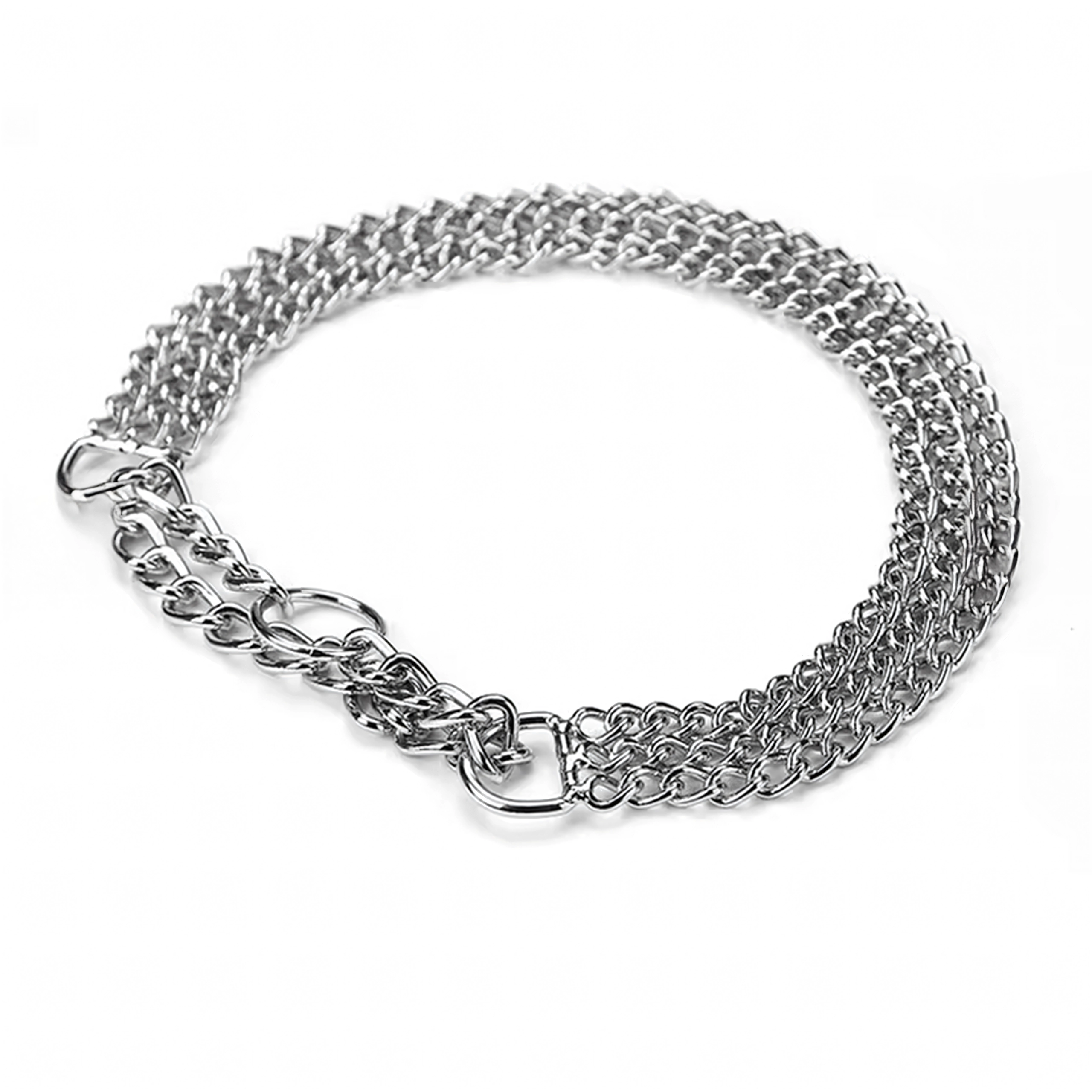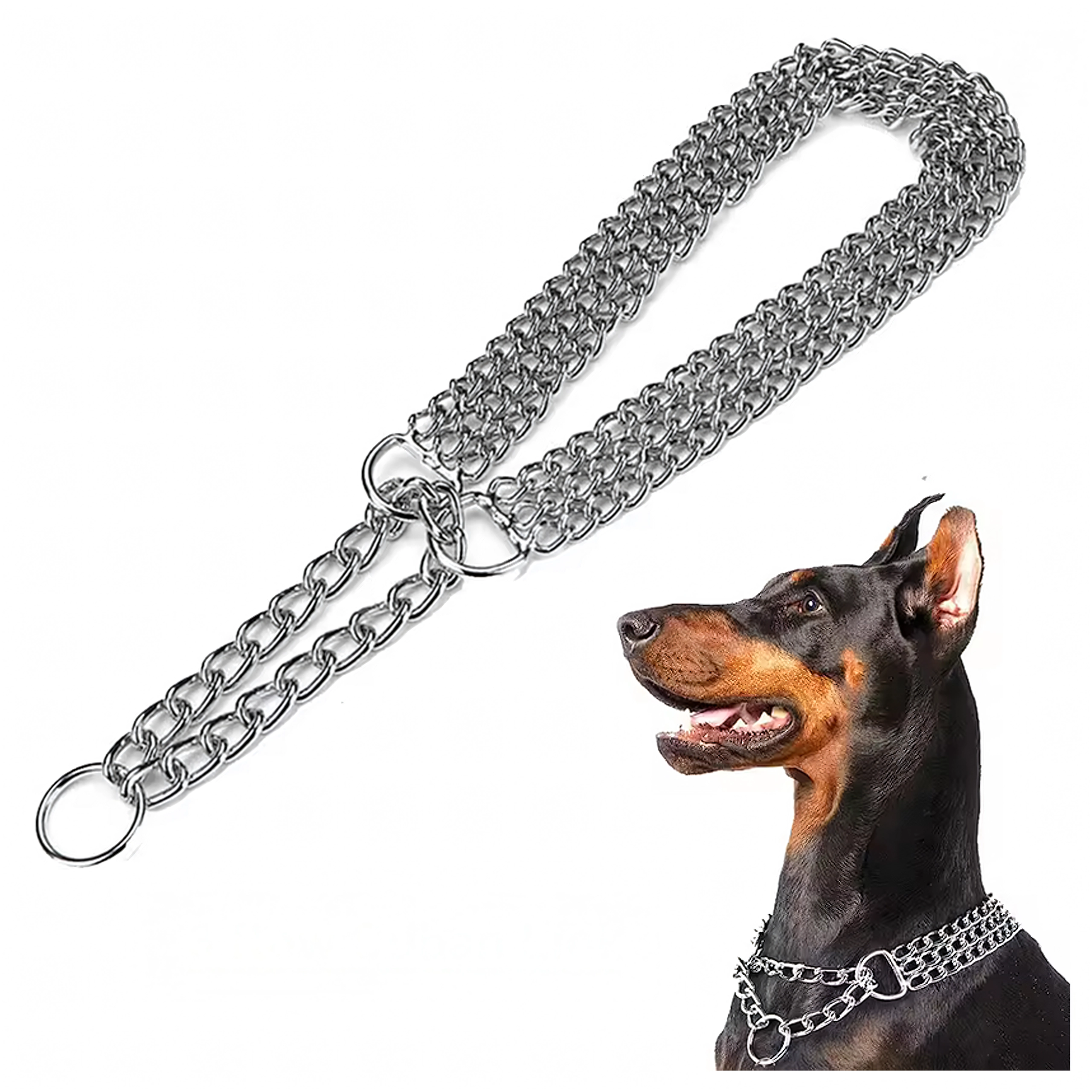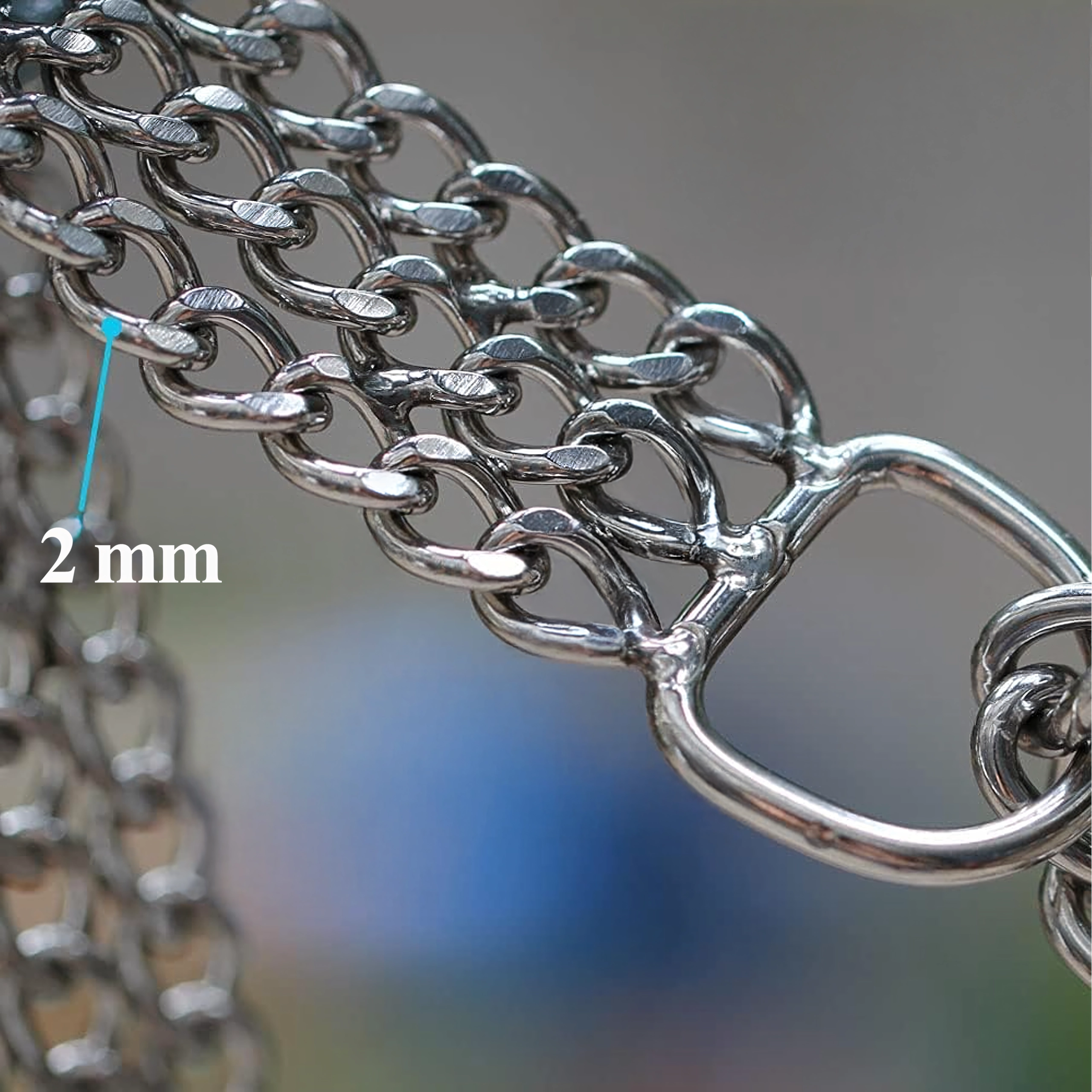 Este collar de cadena de ahorque está fabricado en acero cromado de alta calidad, caracterizado por su alta resistencia, resistencia a la corrosión y superficie lisa para el confort del perro. La triple cadena distribuye la presión de manera uniforme y proporciona un control preciso y sensible durante el entrenamiento.