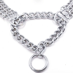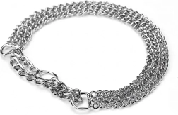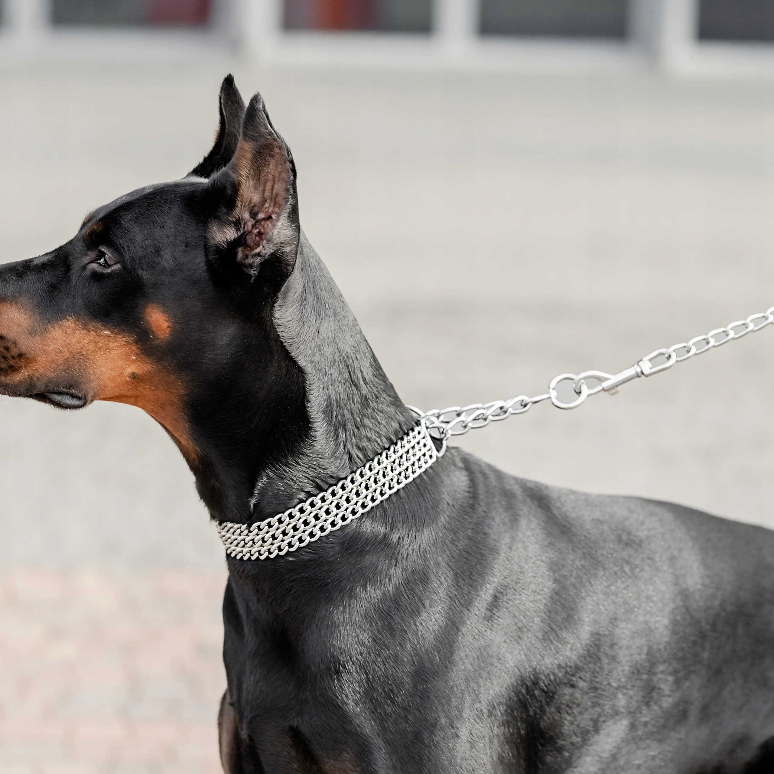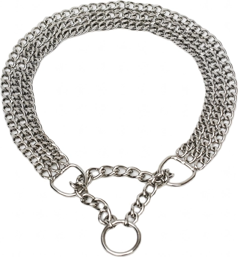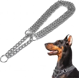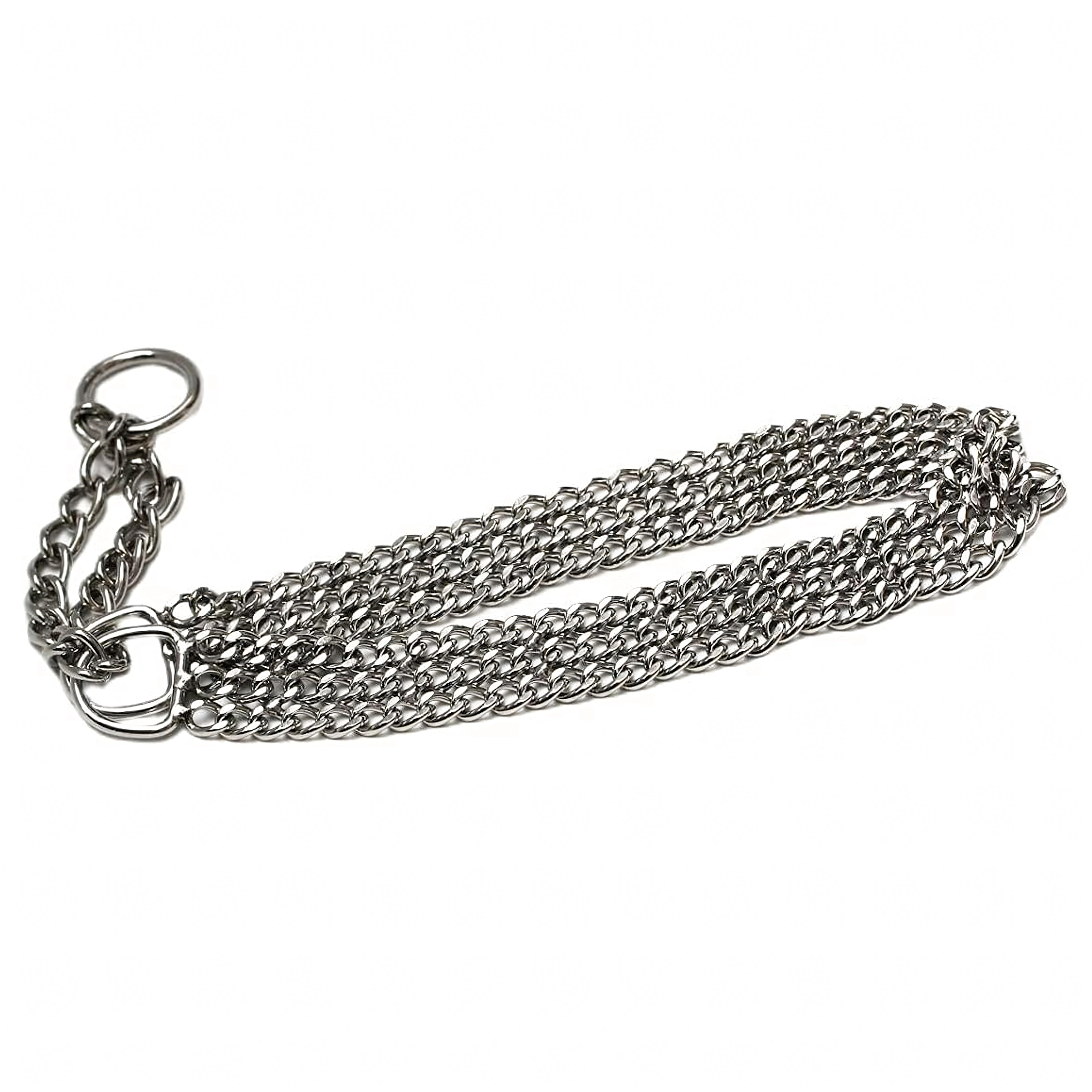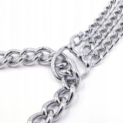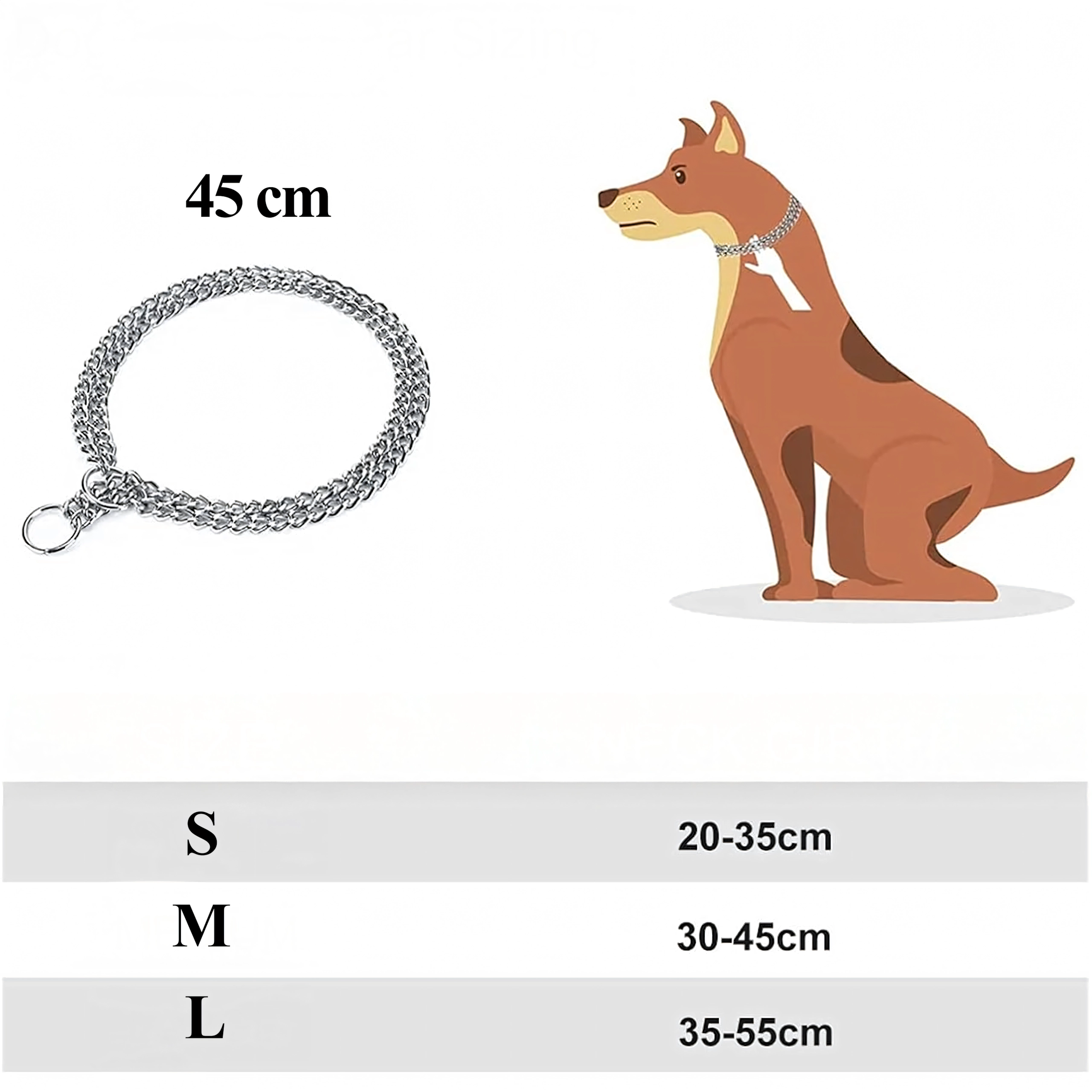 Este collar de cadena de ahorque está fabricado en acero cromado de alta calidad, caracterizado por su alta resistencia, resistencia a la corrosión y superficie lisa para el confort del perro. La triple cadena distribuye la presión de manera uniforme y proporciona un control preciso y sensible durante el entrenamiento.