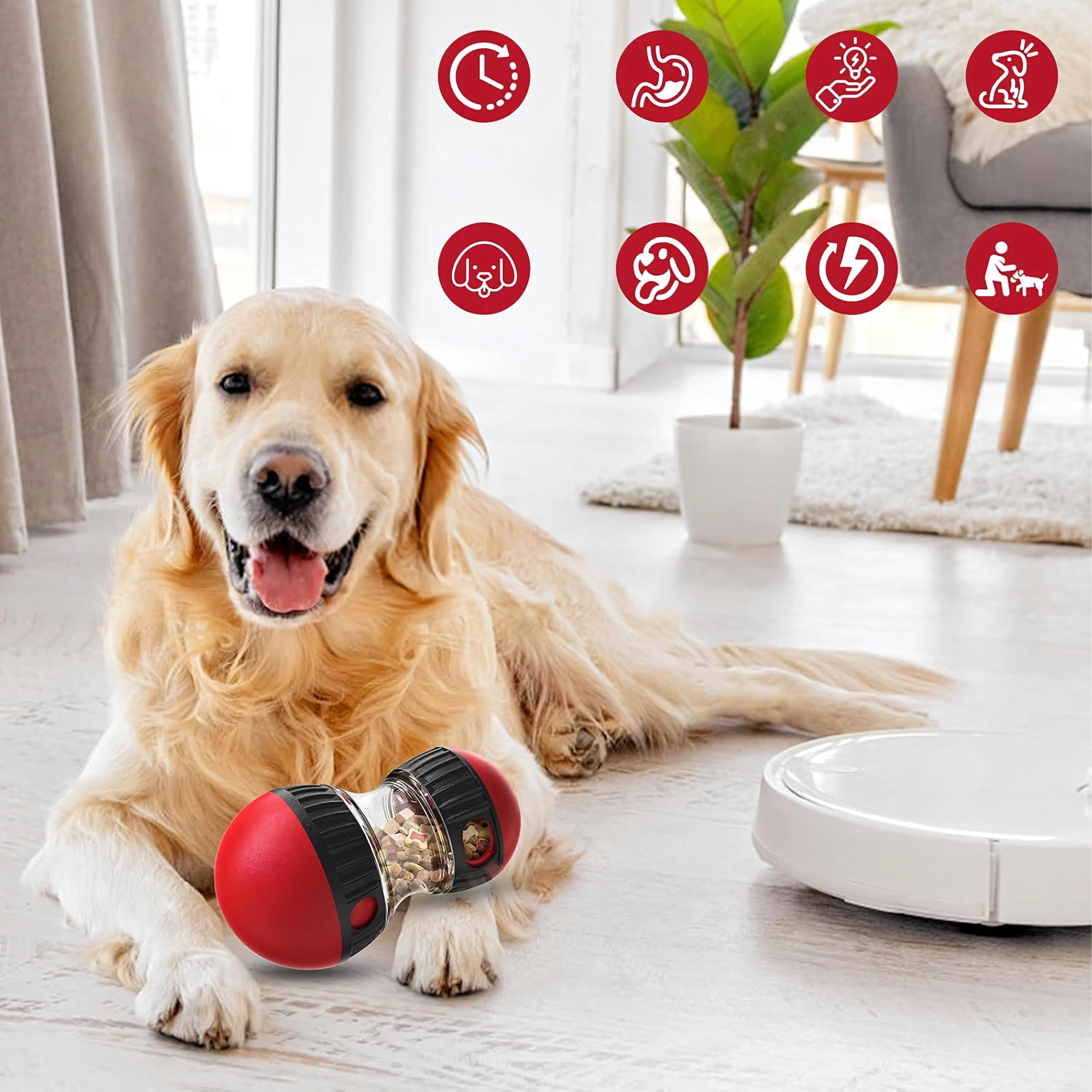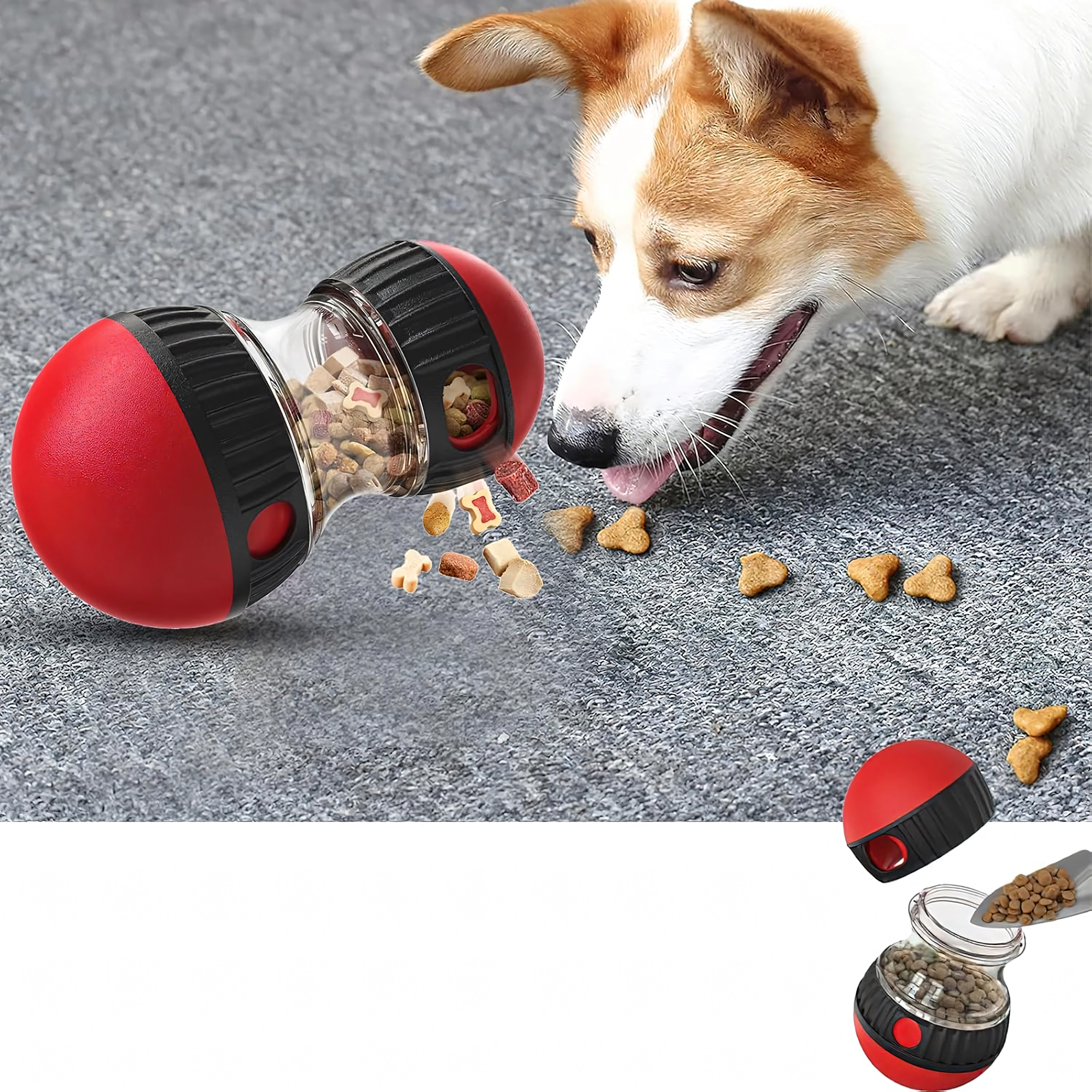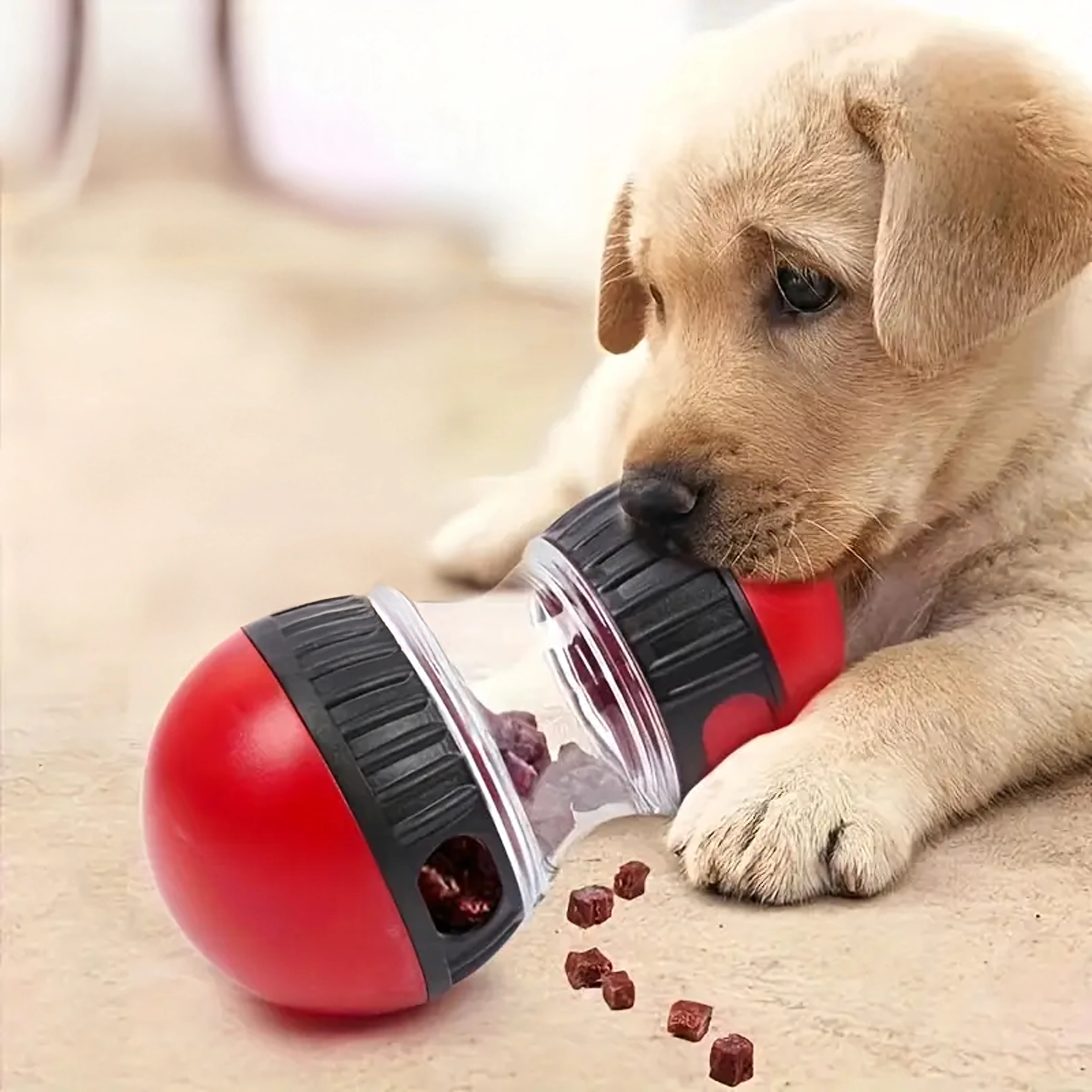 Gracias a su estructura de ABS resistente y a los elementos antideslizantes, el juguete es apto para el uso diario en casa y en el jardín. Es fácil de llenar, desmontar y limpiar, por lo que es ideal para una rutina de alimentación interactiva habitual y el enriquecimiento mental del perro.