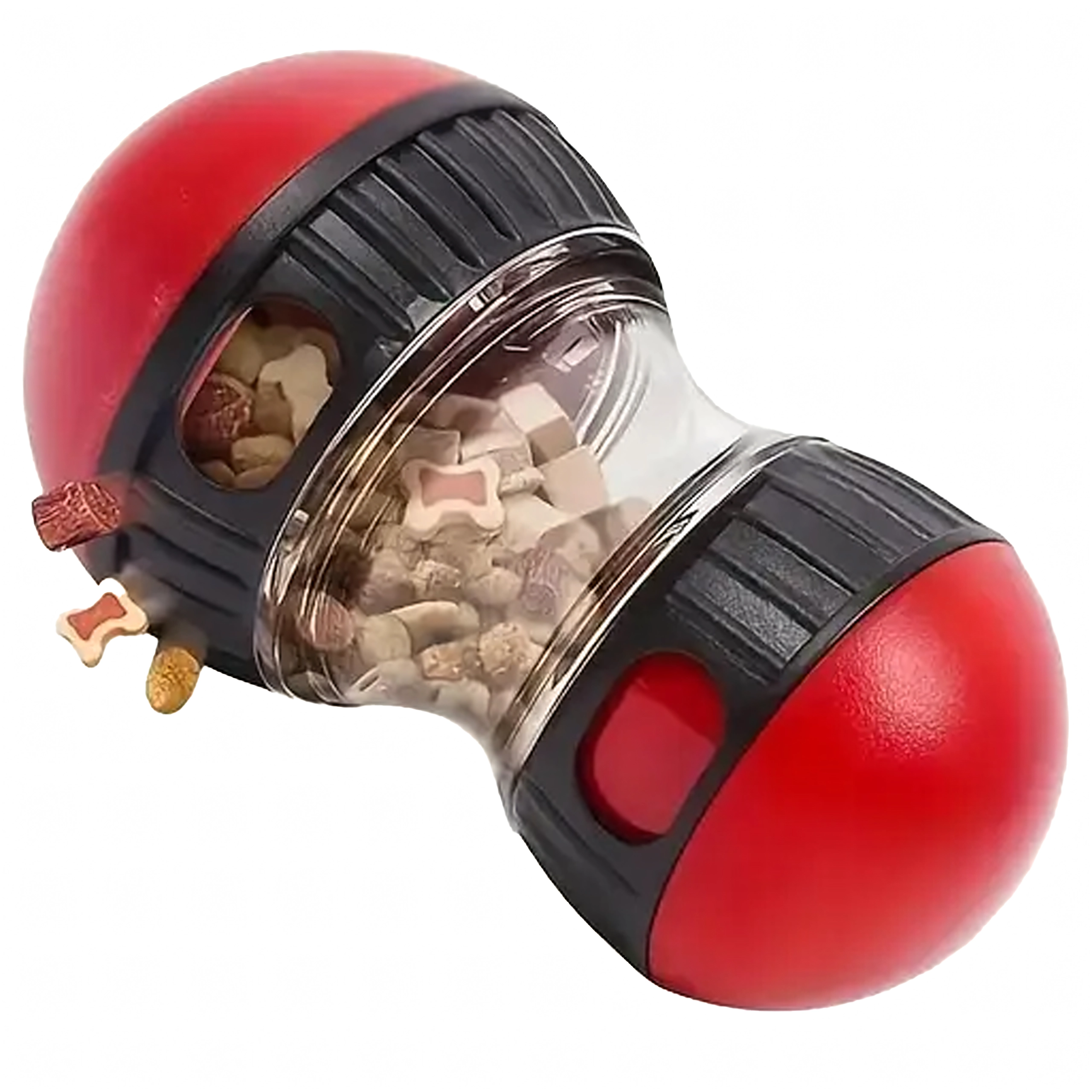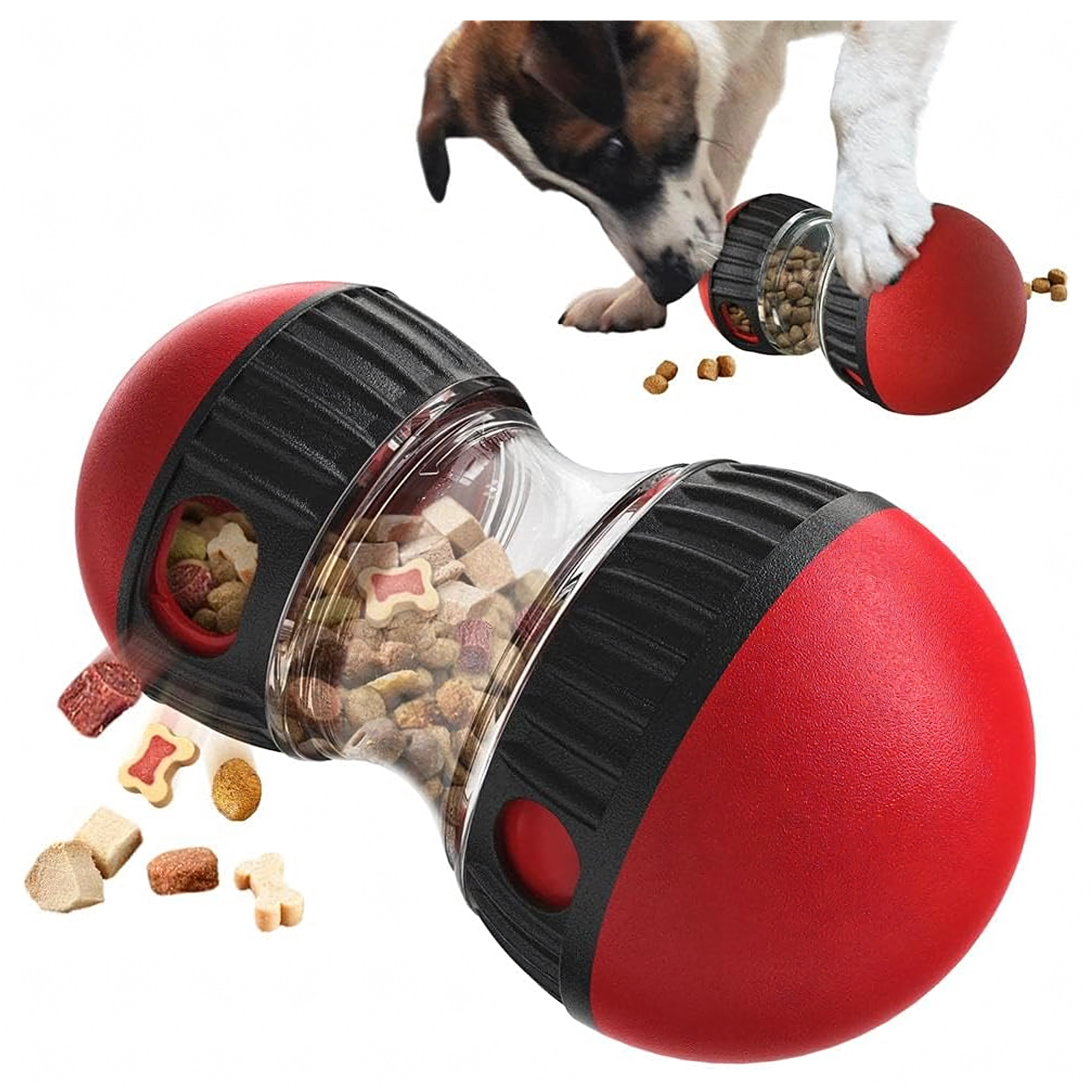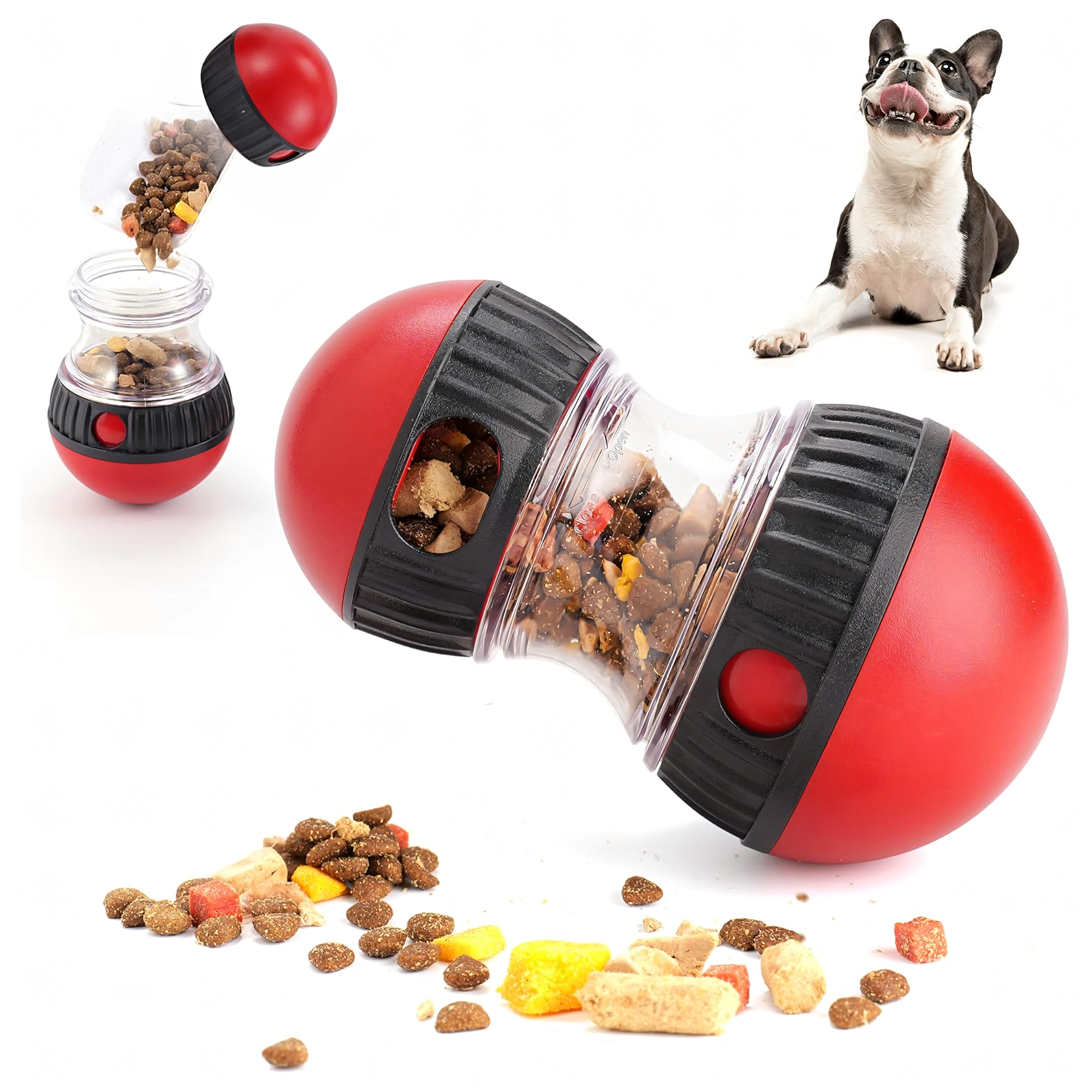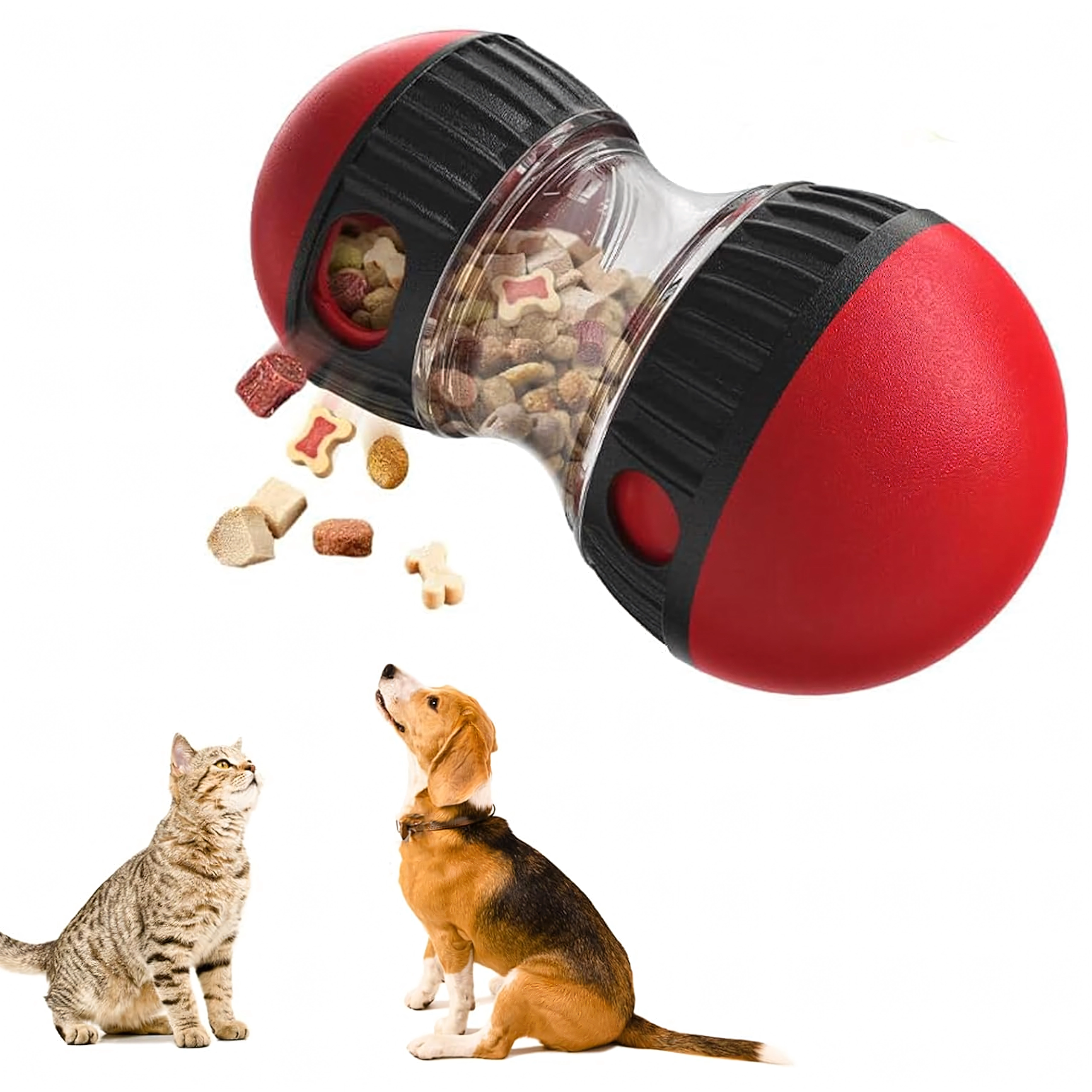 Convierte cada comida en un juego inteligente. El dispensador interactivo de premios libera las croquetas o snacks de forma gradual, lo que ralentiza la ingesta y ayuda a prevenir la hinchazón y el estrés innecesario en los perros. La cámara transparente permite controlar el contenido y las aberturas ajustables regulan la dificultad para dispensar los premios.