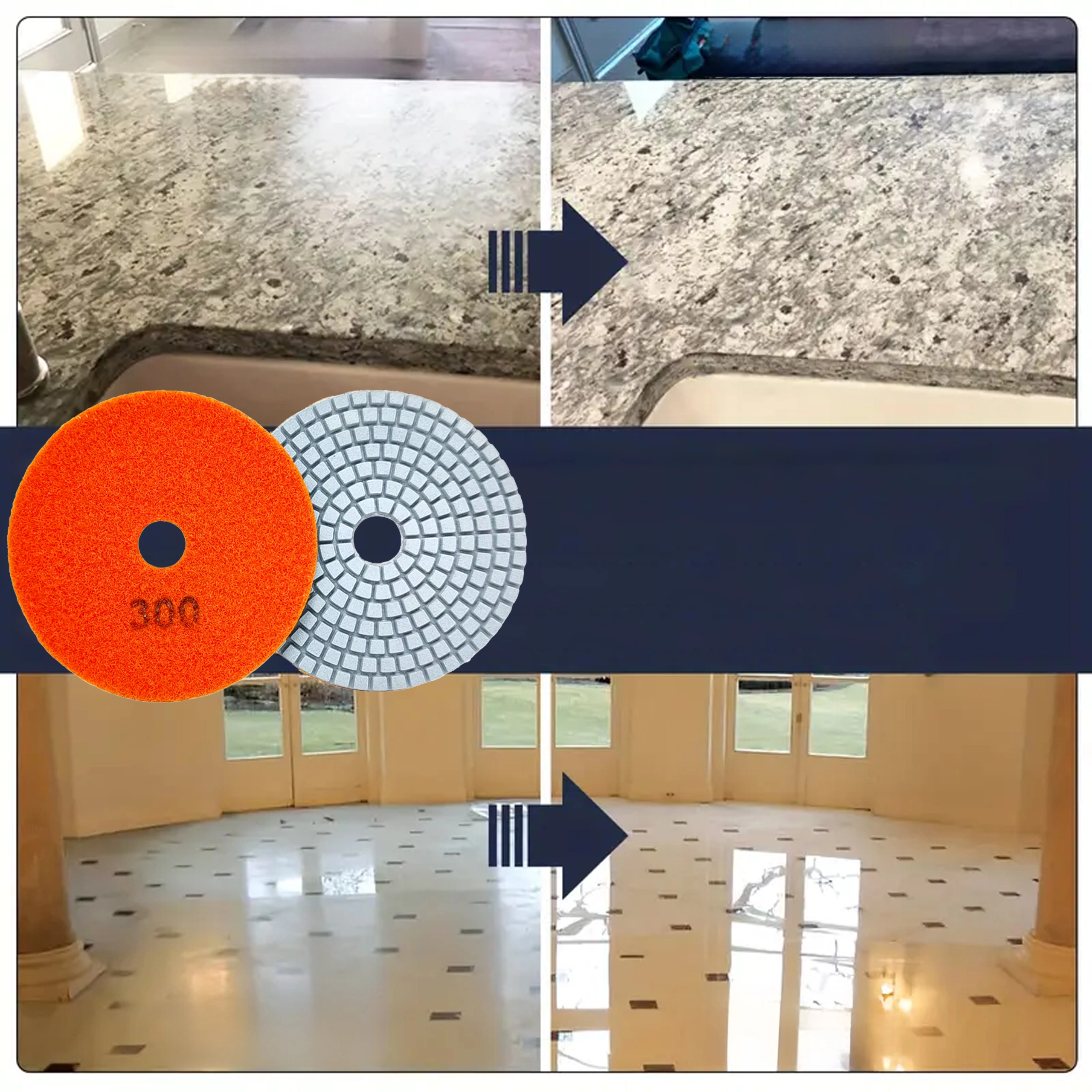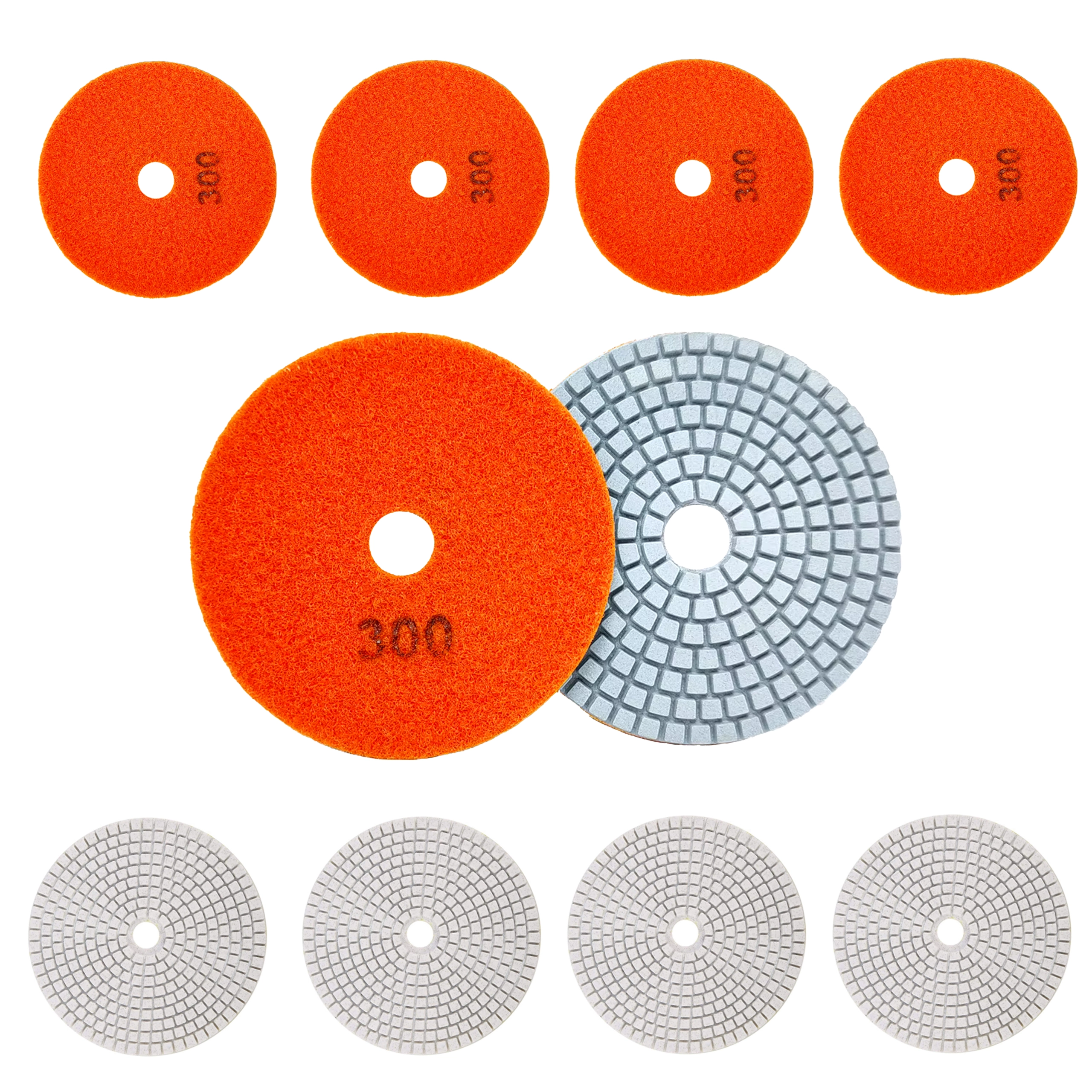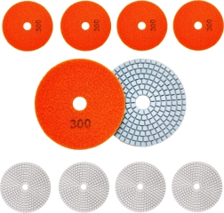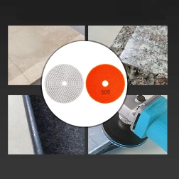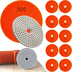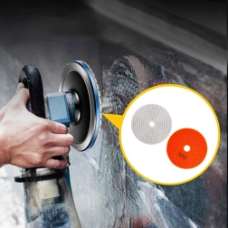 Los discos diamantados con grano 300 son ideales para pasos intermedios de lijado y pre-pulido de materiales duros. La estructura segmentada flexible y el orificio central proporcionan una evacuación fluida del agua y del lodo, marcha estable y un resultado más limpio. El reverso naranja con velcro acelera el cambio sin herramientas.