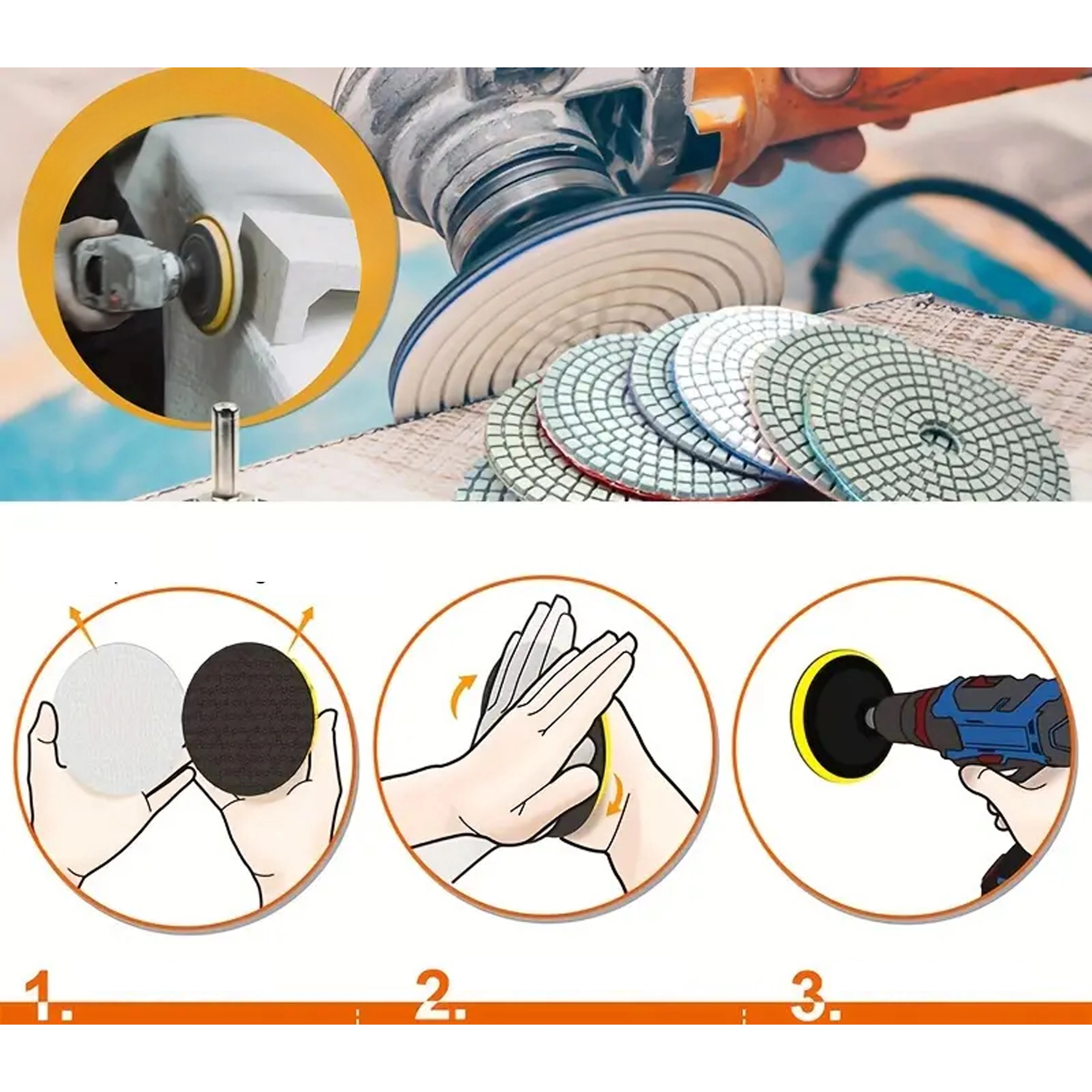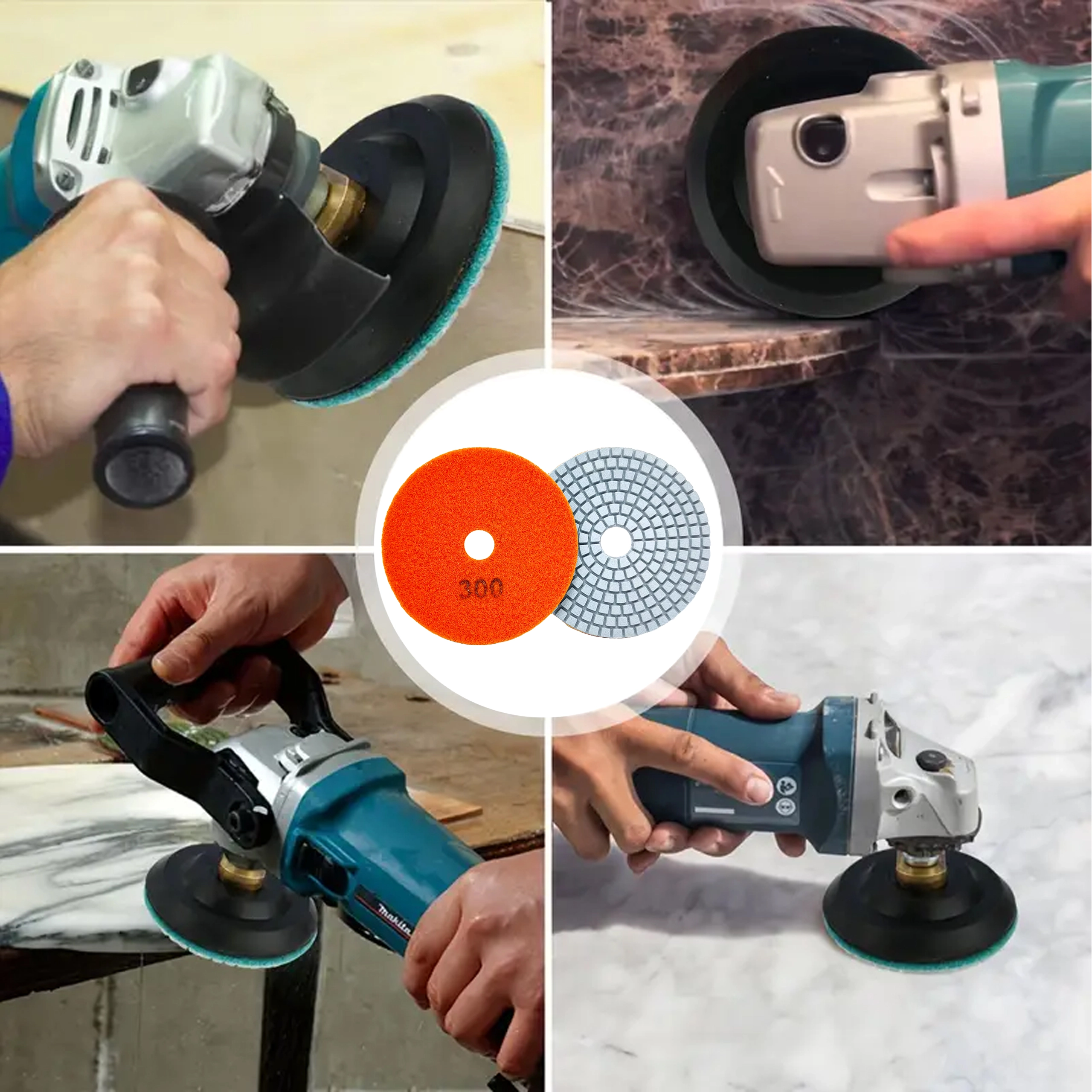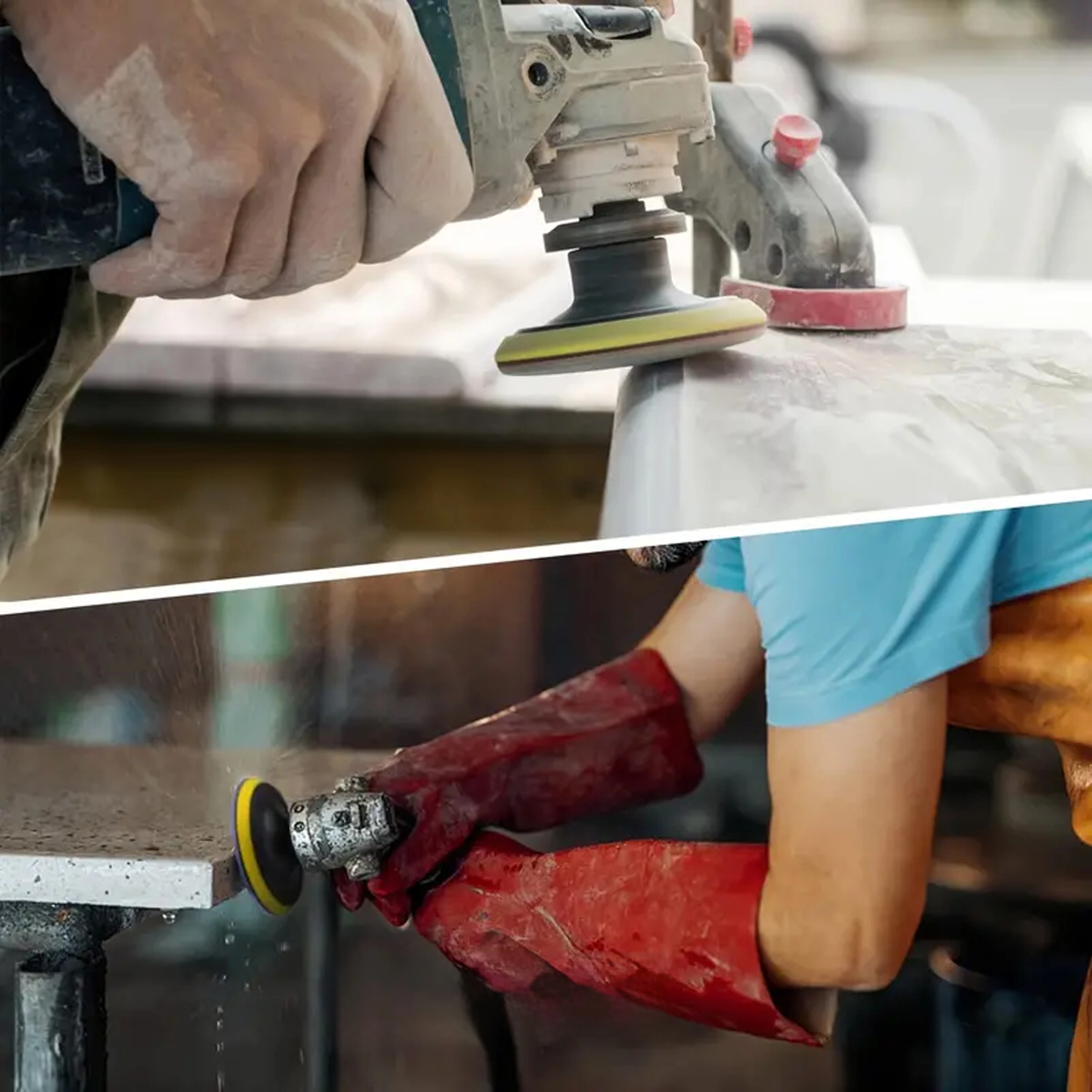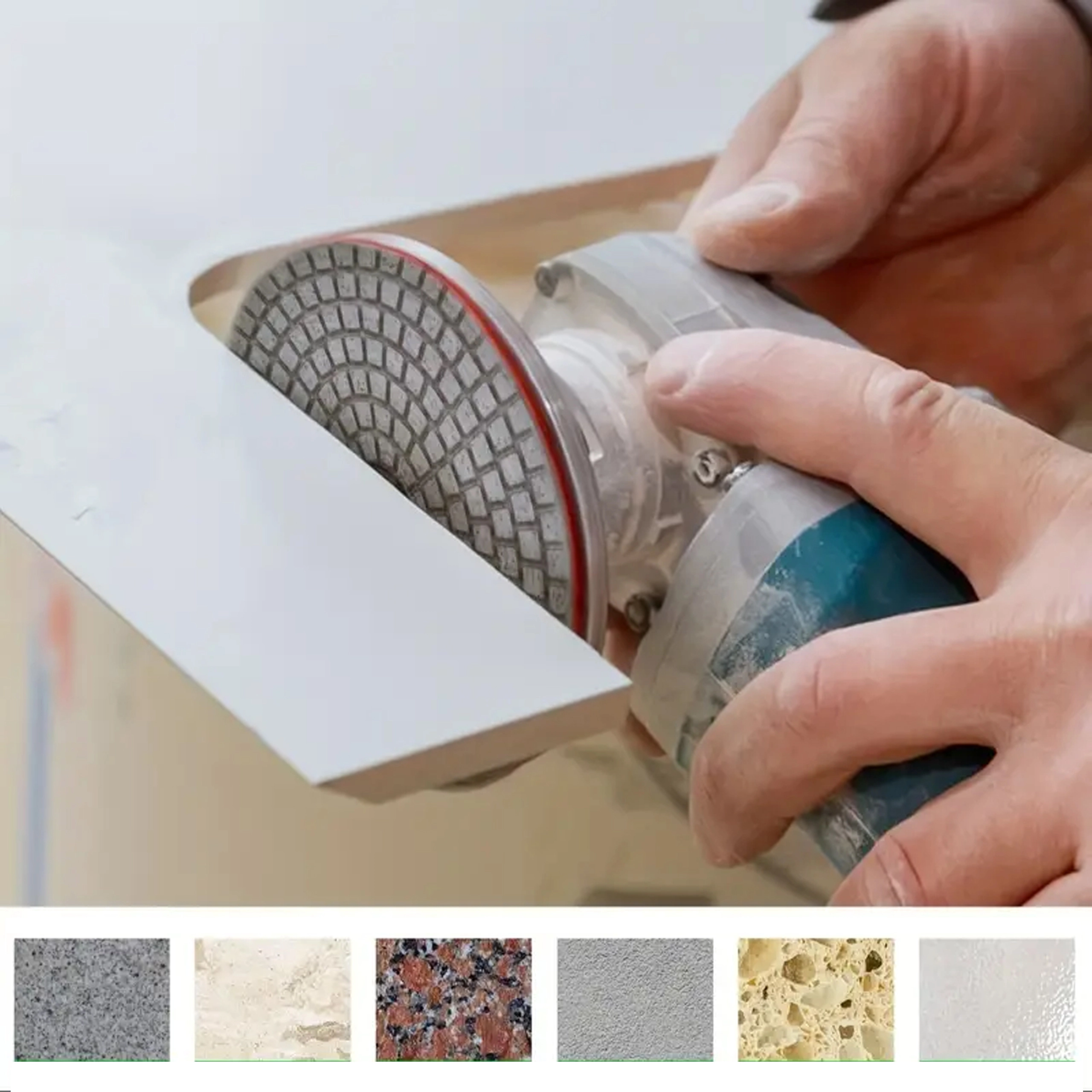 Úsalos al trabajar con baldosas de gres, cerámica, piedra natural, mármol y granito. Adecuados para cantos y superficies planas, tanto en taller como en montajes y renovaciones. Compatibles con amoladoras angulares y pulidoras habituales con plato soporte de velcro.