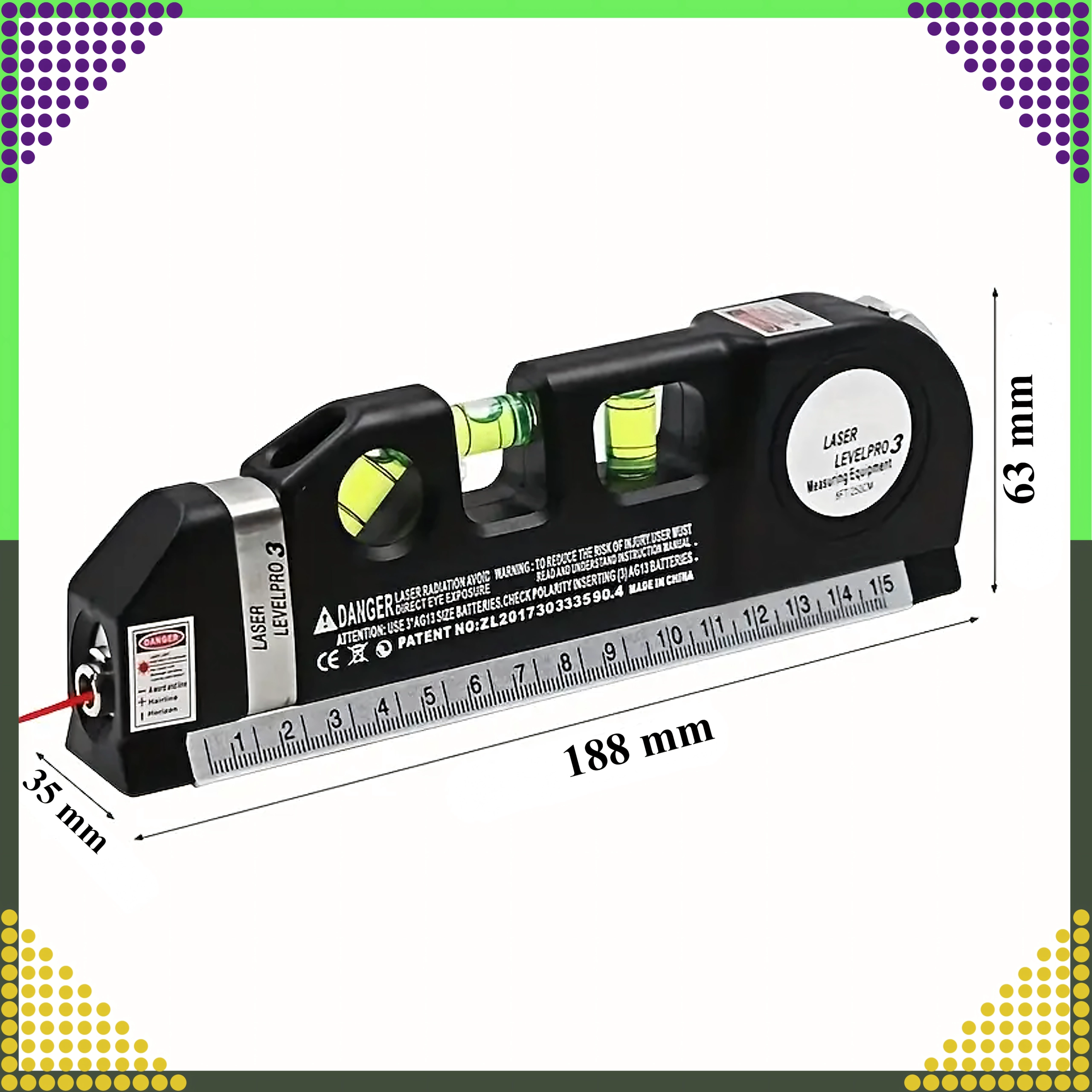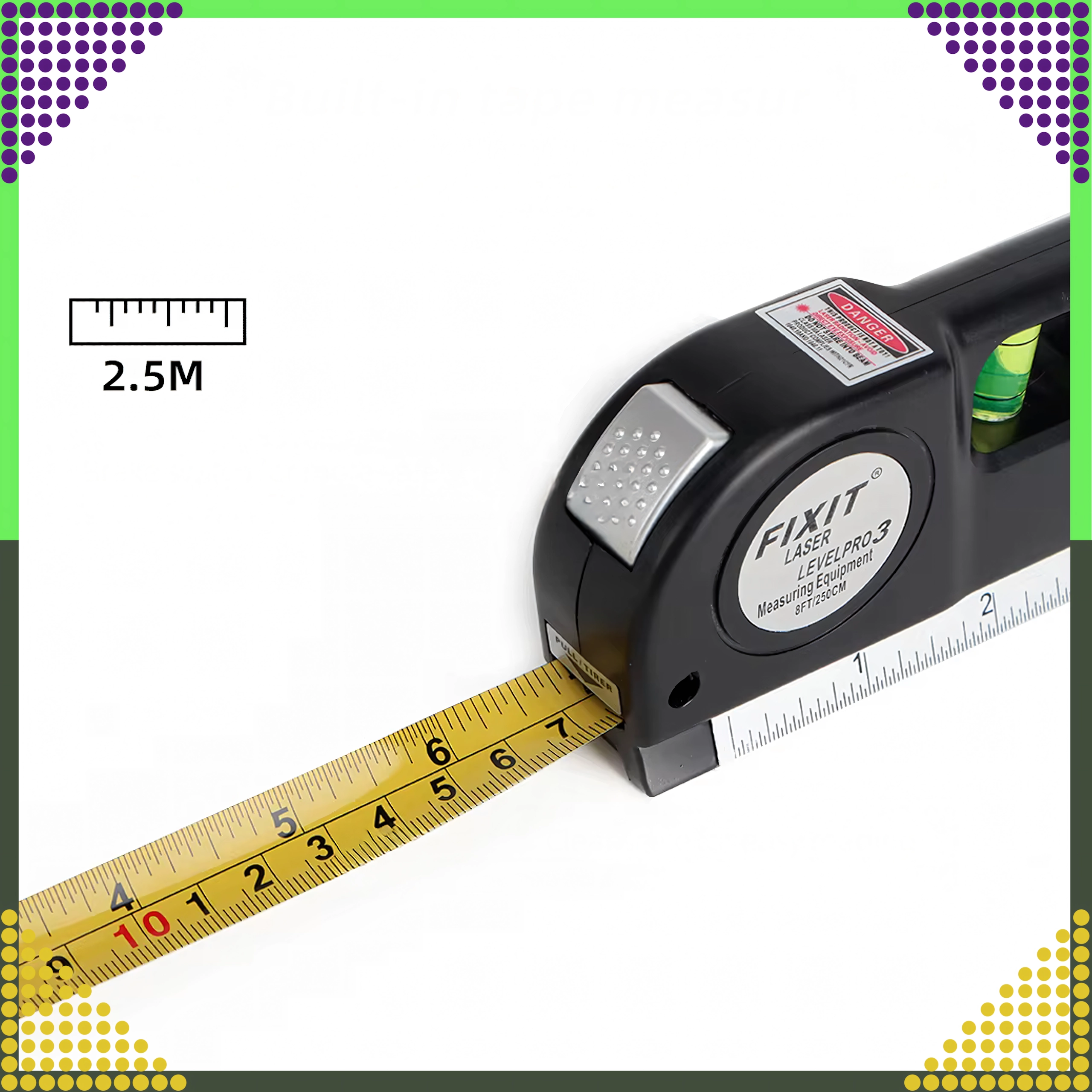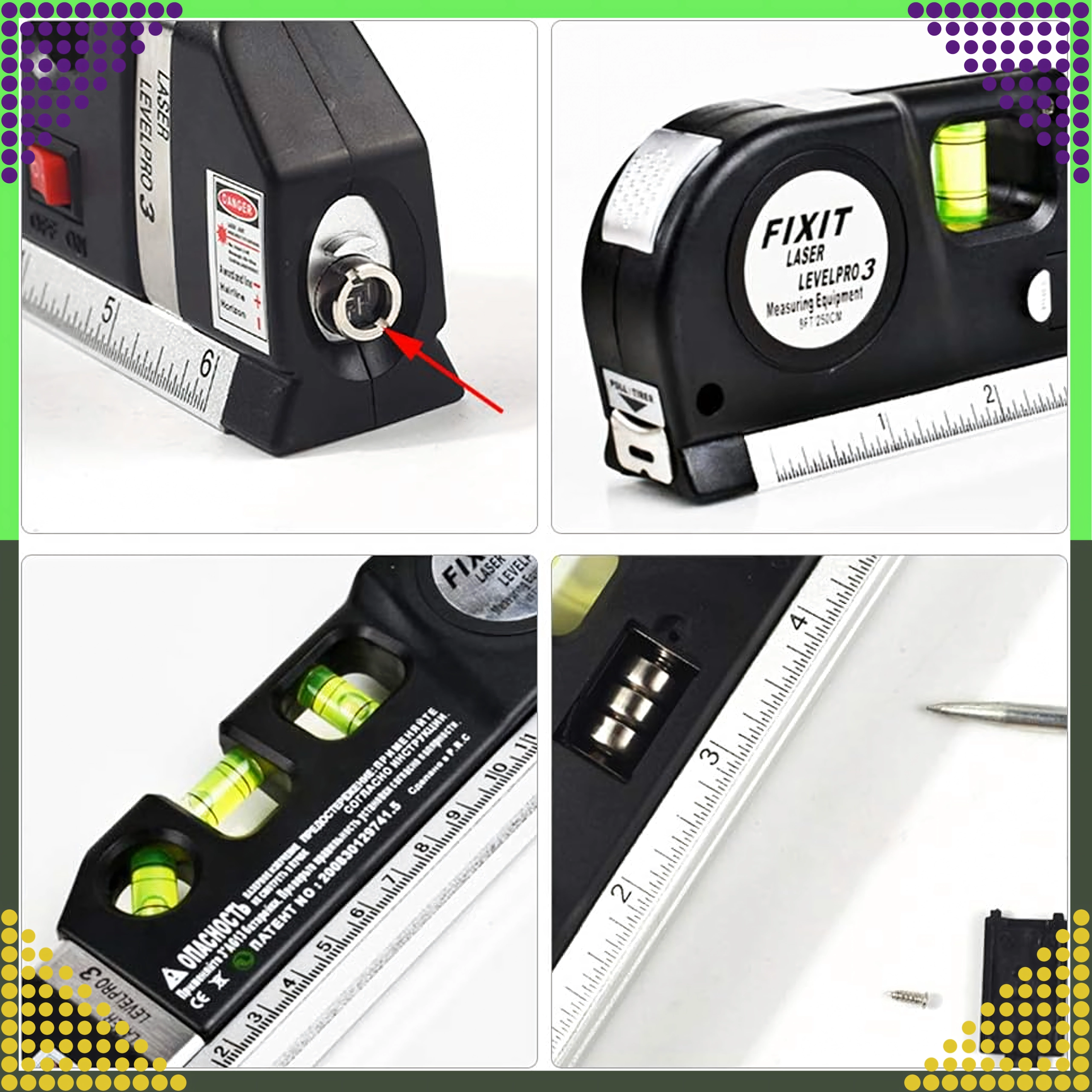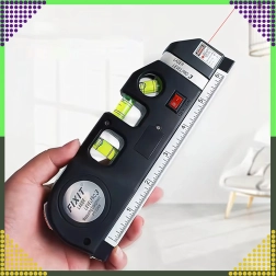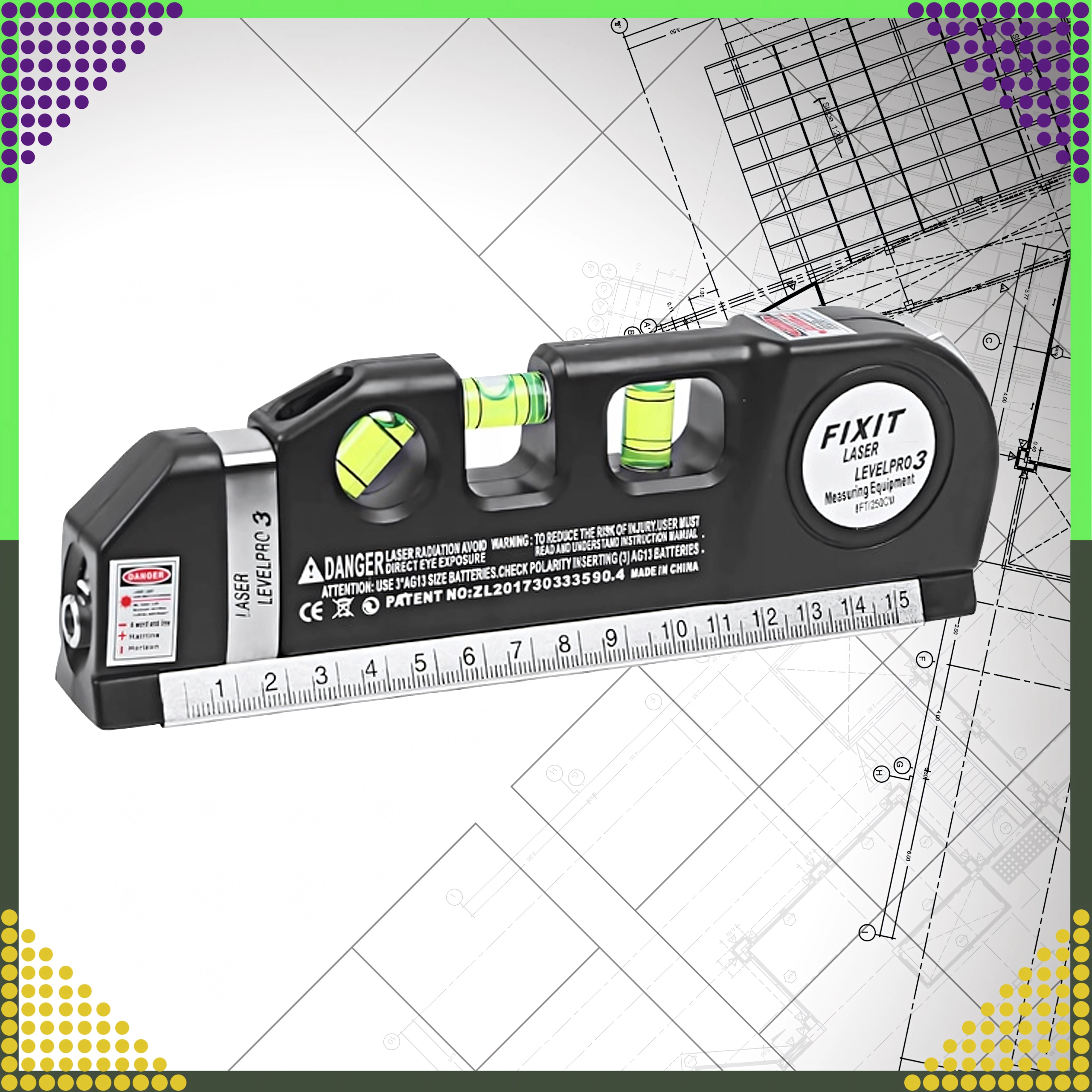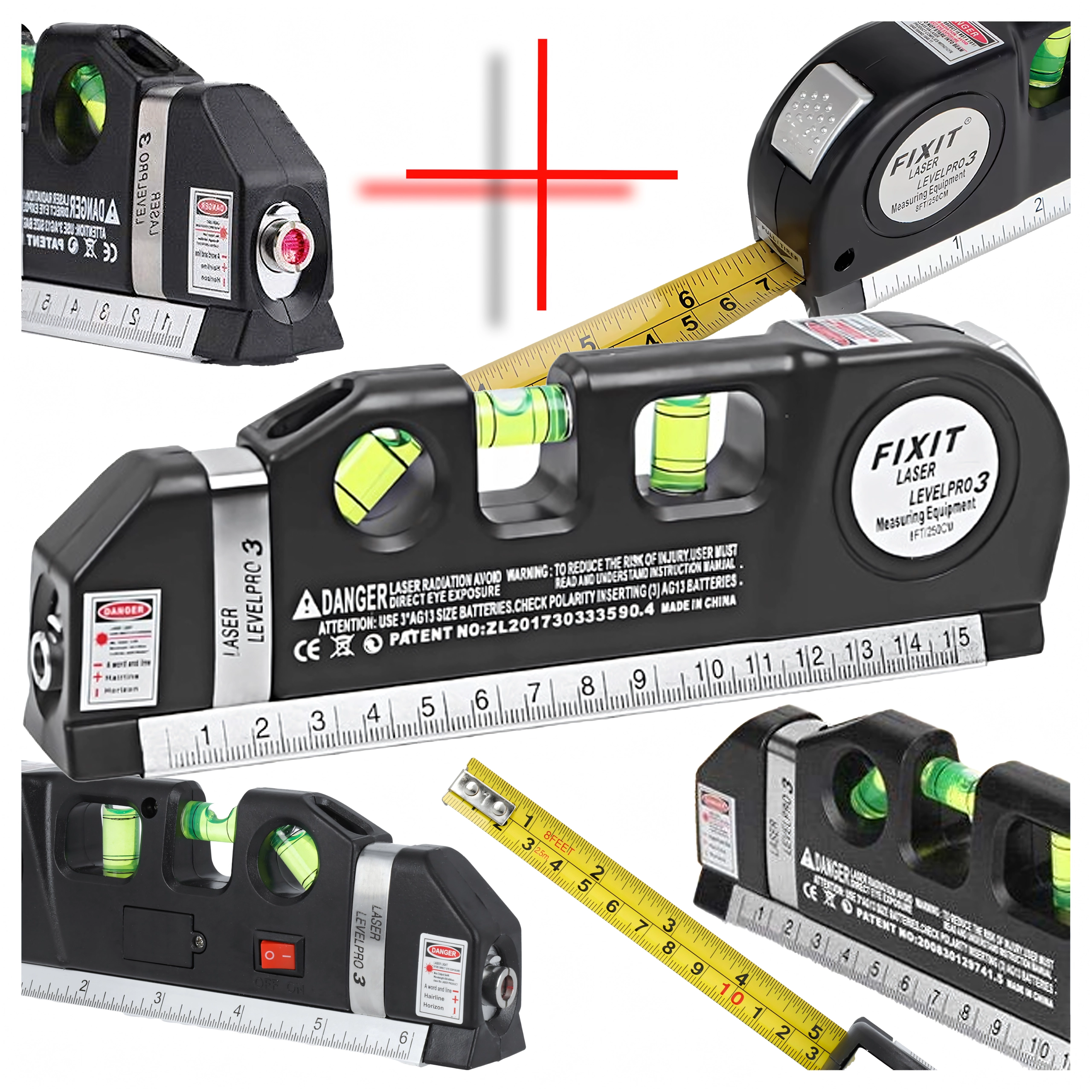 Este nivel láser ligero y compacto (aprox. 175 g, 18 × 6 × 3 cm) es el ayudante ideal para mediciones precisas, nivelación y alineación. Gracias a la cinta métrica integrada de 2,5 m, las tres burbujas y la línea láser, podrás montar fácilmente estantes, azulejos y cuadros, así como realizar cortes y taladros precisos.