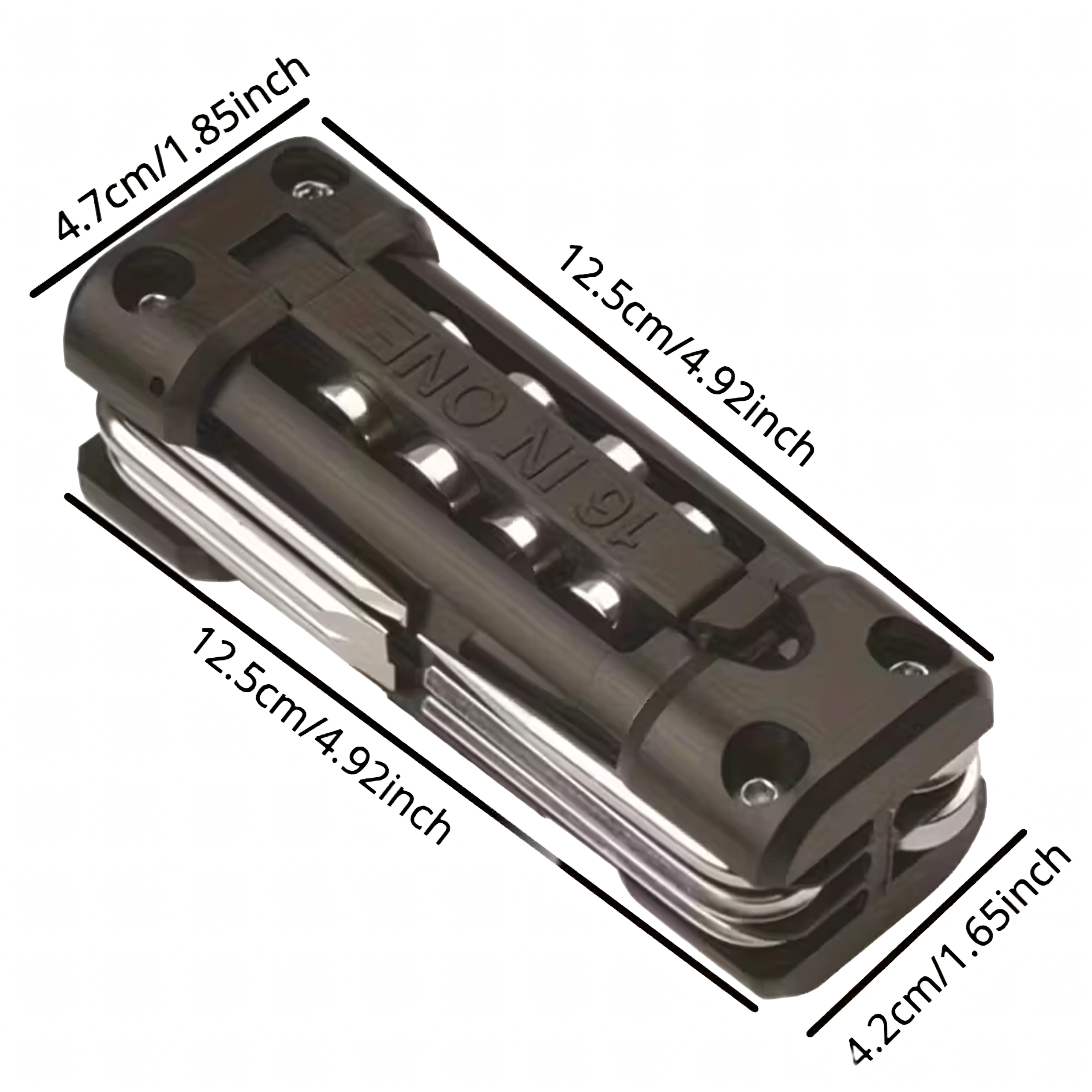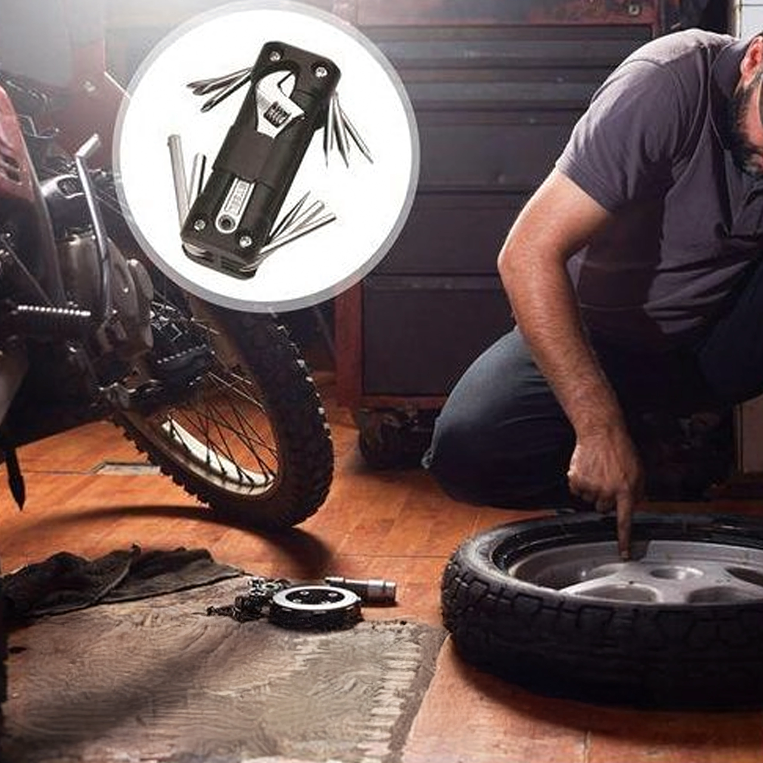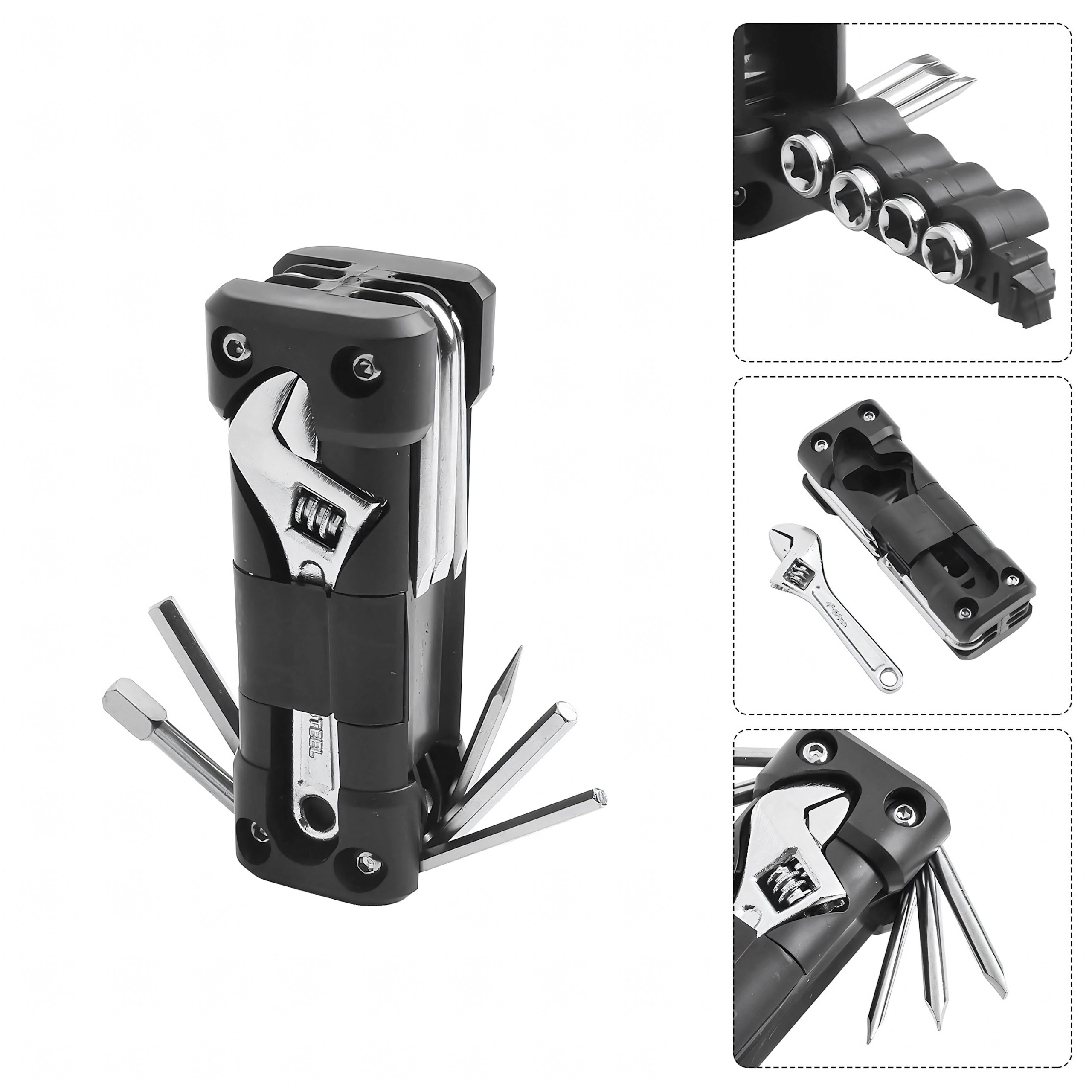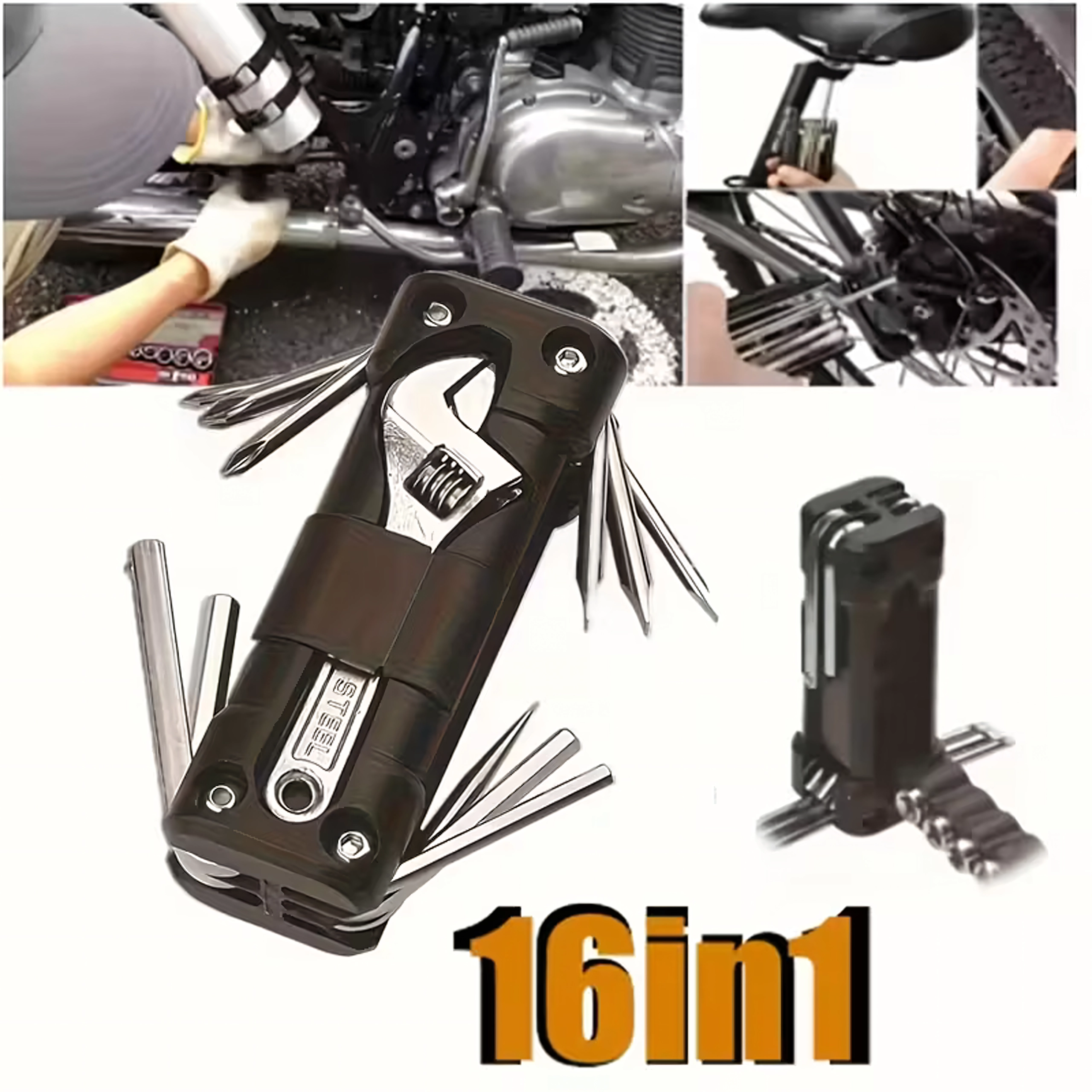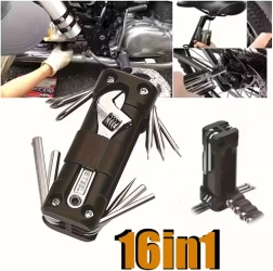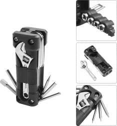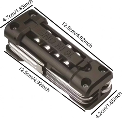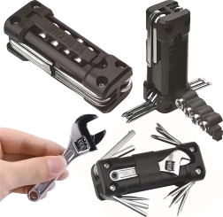 La práctica multiherramienta 13 en 1 sustituye toda una caja de herramientas. Es compacta, plegable e ideal para bicicleta, reparaciones de taller, coche y acampada, en resumen: siempre a mano cuando necesitas una reparación rápida.