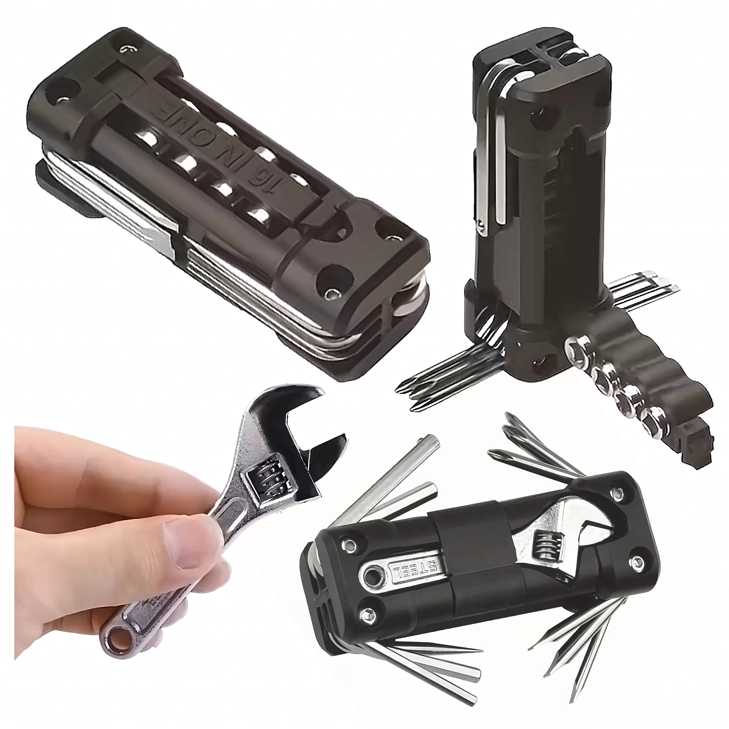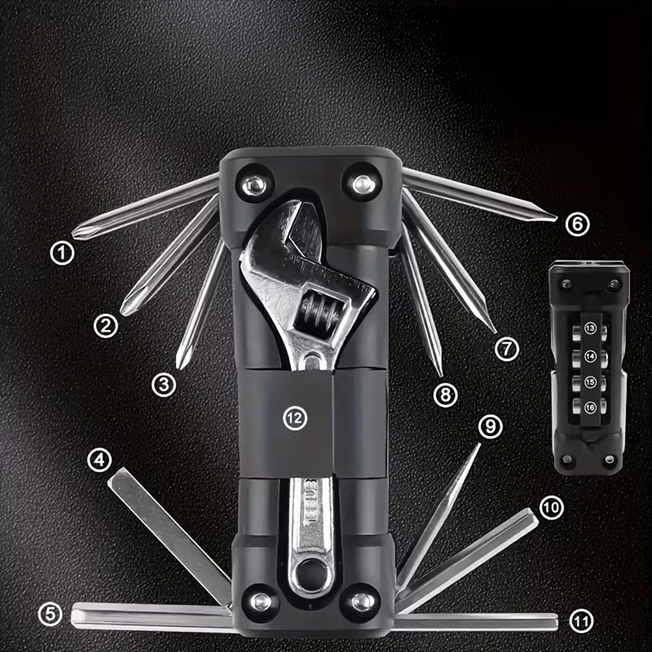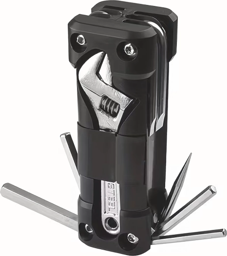 La multiherramienta universal 13 en 1 ofrece todo lo necesario para apretar tornillos y realizar ajustes rápidos en ruta o en casa. Las herramientas metálicas robustas y el cuerpo ergonómico garantizan un agarre seguro y una larga vida útil. Gracias a su estructura plegable, cabe cómodamente en el bolsillo, la bolsa bajo el sillín o la guantera del coche.