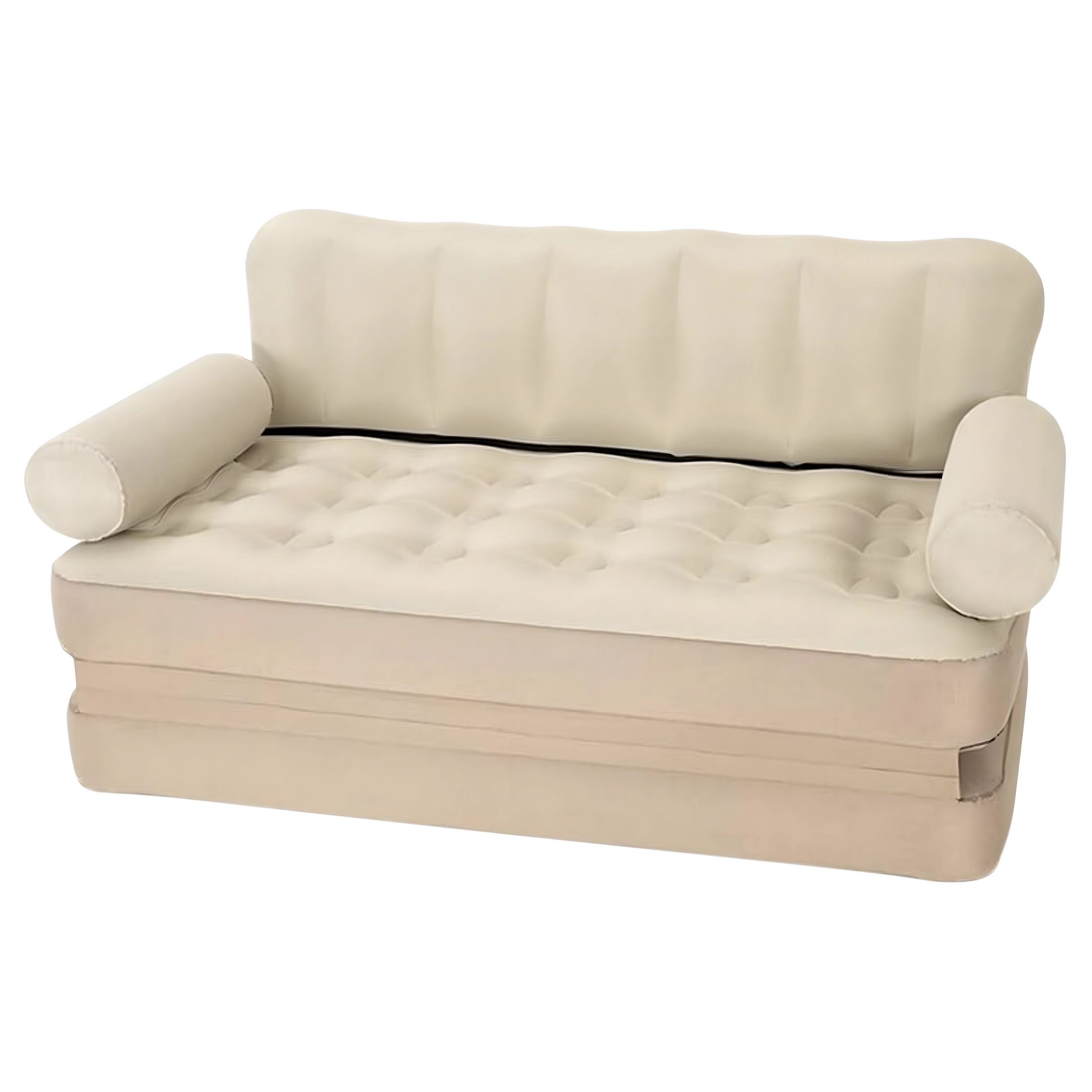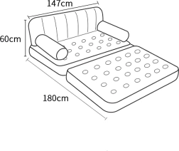 Descubre una solución flexible para sentarse y dormir en uno. Este sofá inflable plegable 5 en 1 se transforma en segundos de un cómodo sofá a una amplia cama para dos personas. La superficie acolchada con cámaras reduce los puntos de presión y ofrece soporte tanto al sentarse como al dormir.