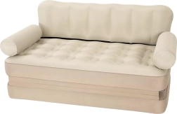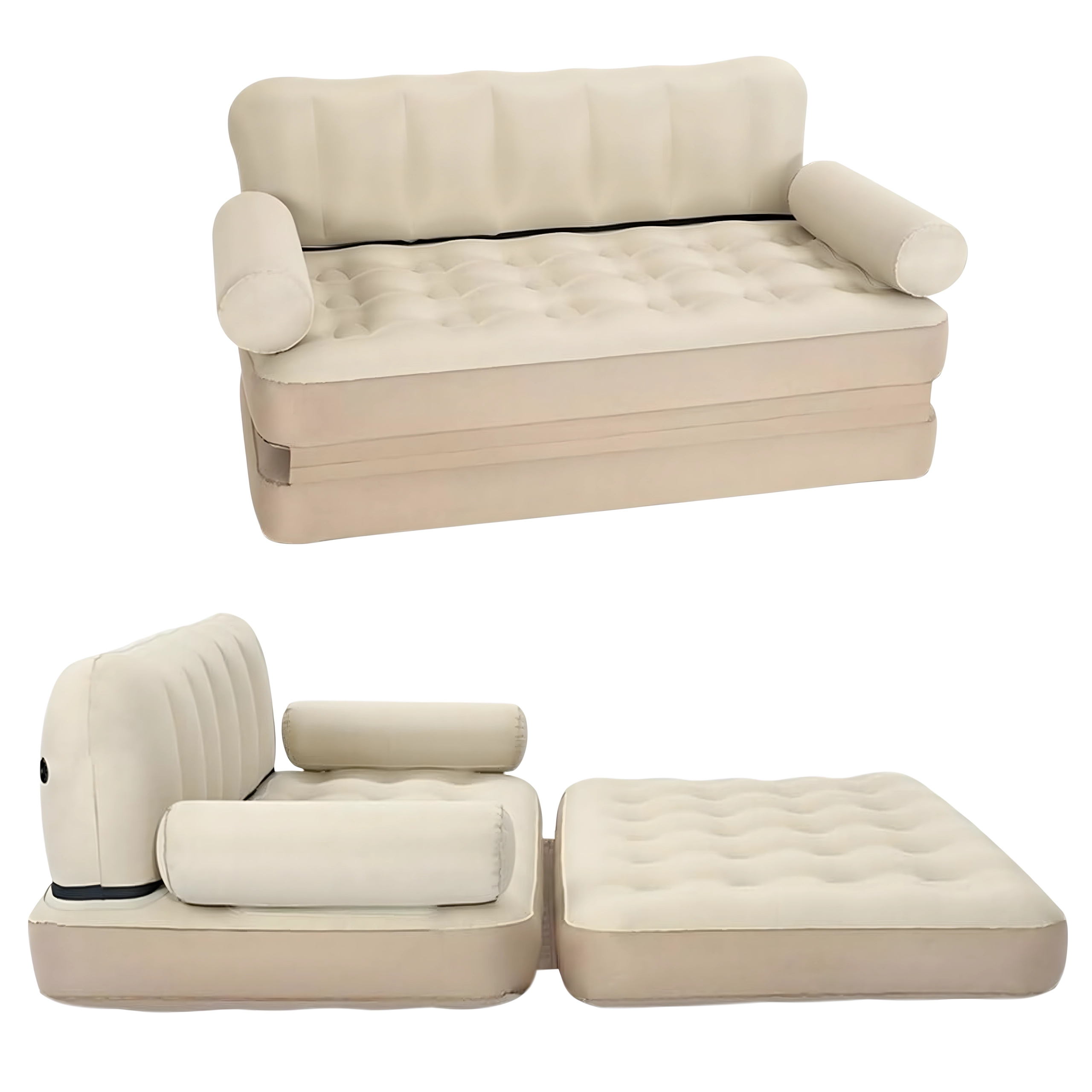 El versátil sofá inflable 5 en 1 es un mueble práctico para la comodidad diaria en casa y de viaje. Sirve como sofá, chaise longue, colchón y cama para dos personas. Gracias al PVC resistente es ligero, fácil de transportar y, en elegante color beige, combina con cualquier interior y también para el jardín.
