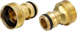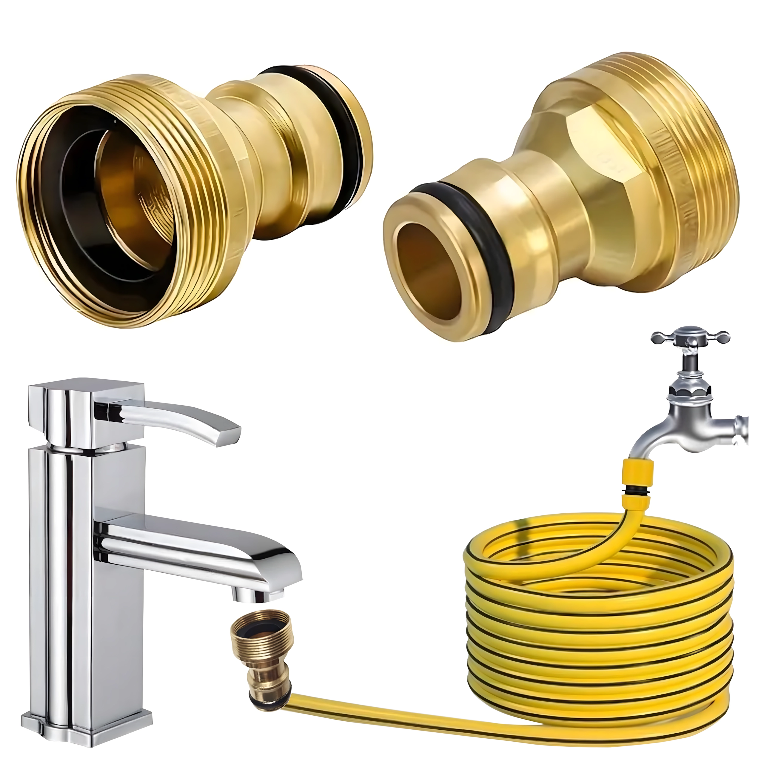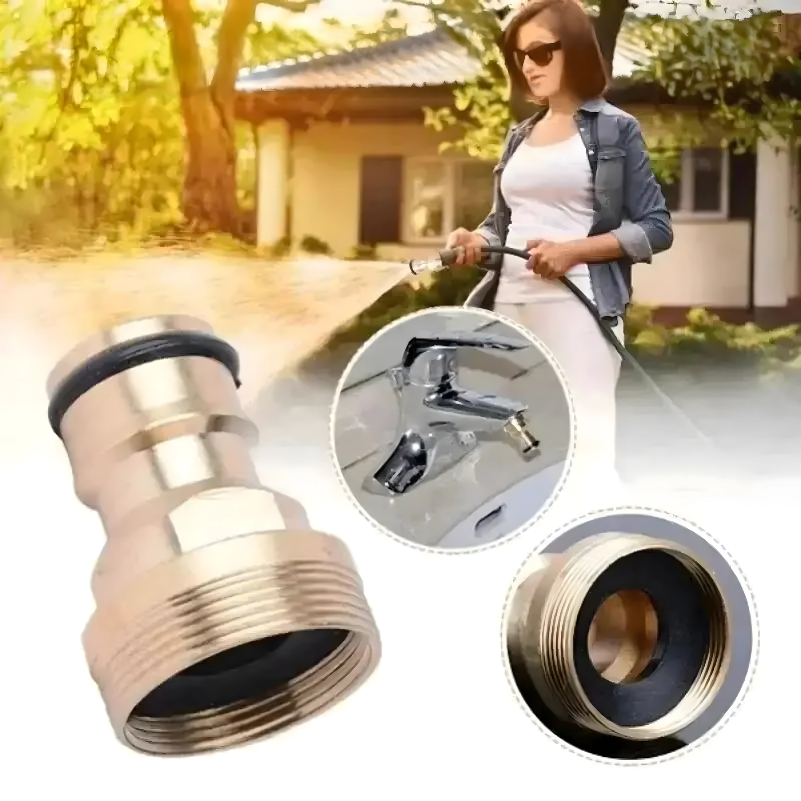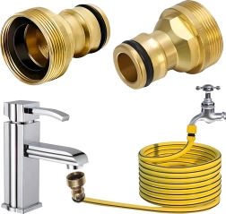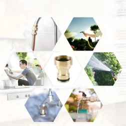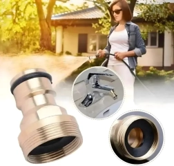 El adaptador universal de latón G3/4 permite la conexión rápida de la manguera de jardín al grifo sin herramientas. Gracias a su resistente construcción de latón y a la junta tórica intercambiable, garantiza una unión fiable, estanca y sin goteos para riego, lavado del coche y limpieza alrededor de la casa.