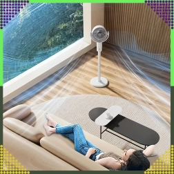 La cabeza oscilante distribuye el aire frío por toda la estancia y aumenta la eficiencia de la ventilación tanto trabajando como descansando.
