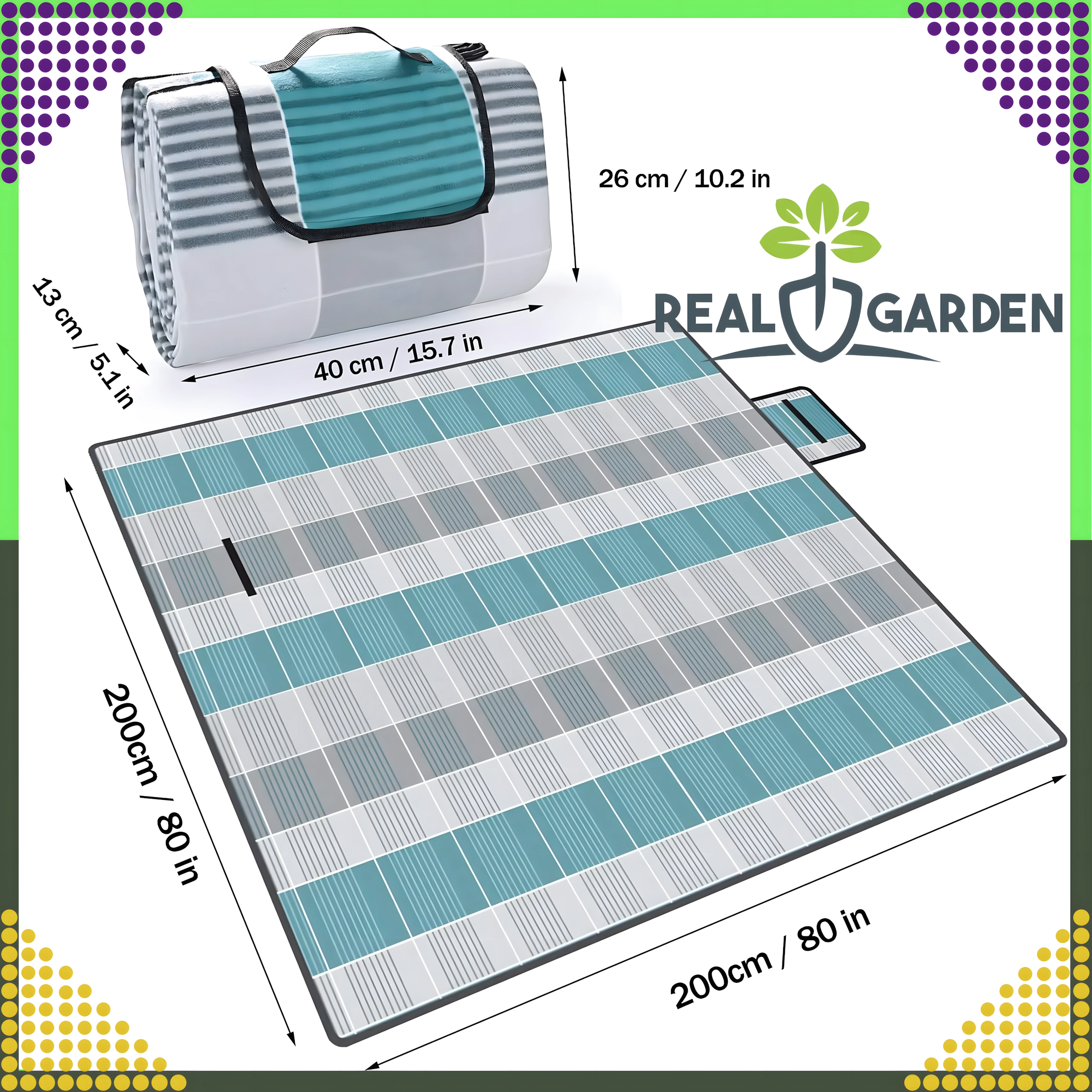 La manta de picnic universal de 200 × 200 cm es ideal para la playa, picnic, camping y el jardín. Gracias a su construcción de 3 capas: suave forro polar (fleece), espuma PU y capa aislante impermeable, ofrece comodidad y protección contra la humedad y el frío. Se pliega fácilmente a un tamaño compacto y puedes llevarla a cualquier parte. ¡Una gran opción para toda la familia!