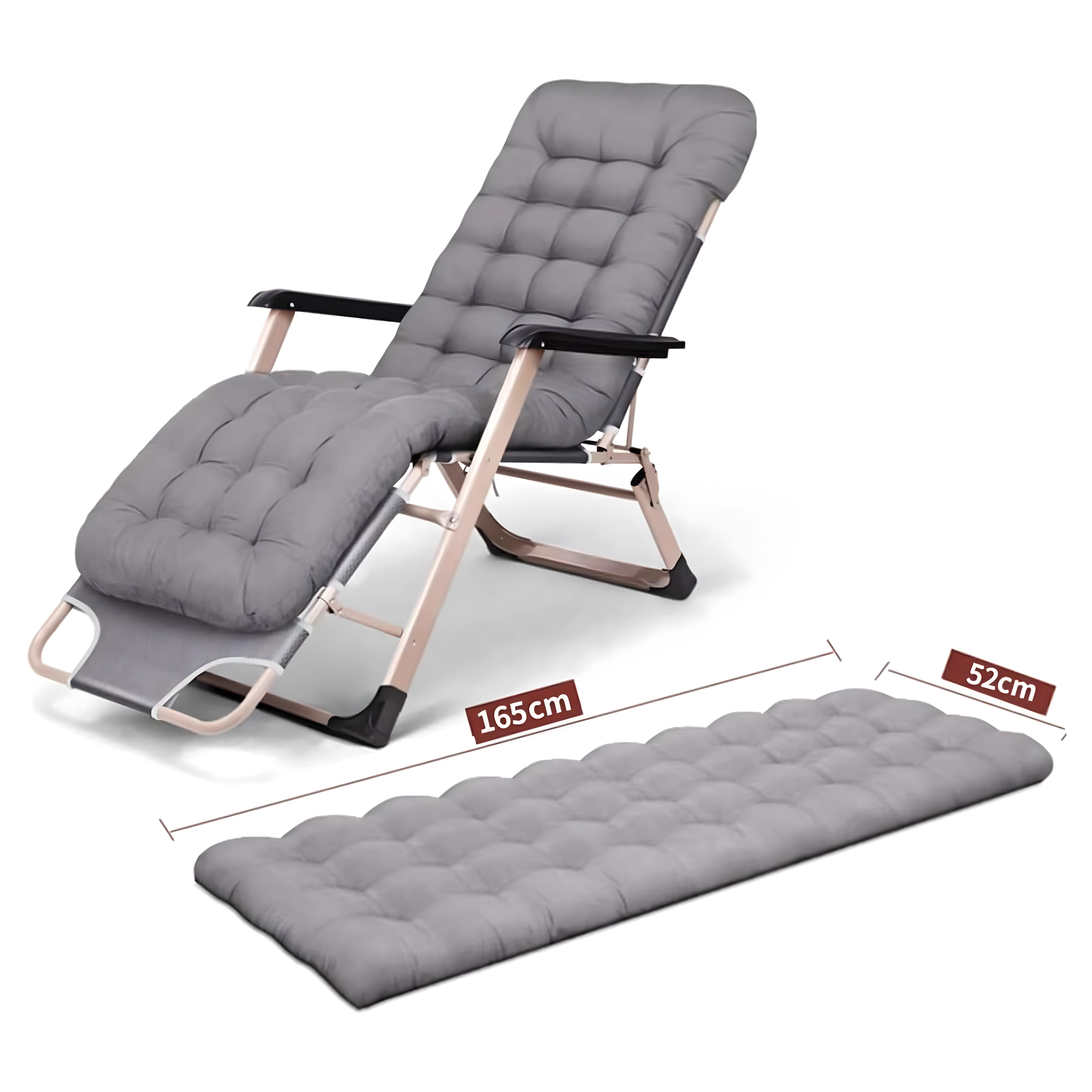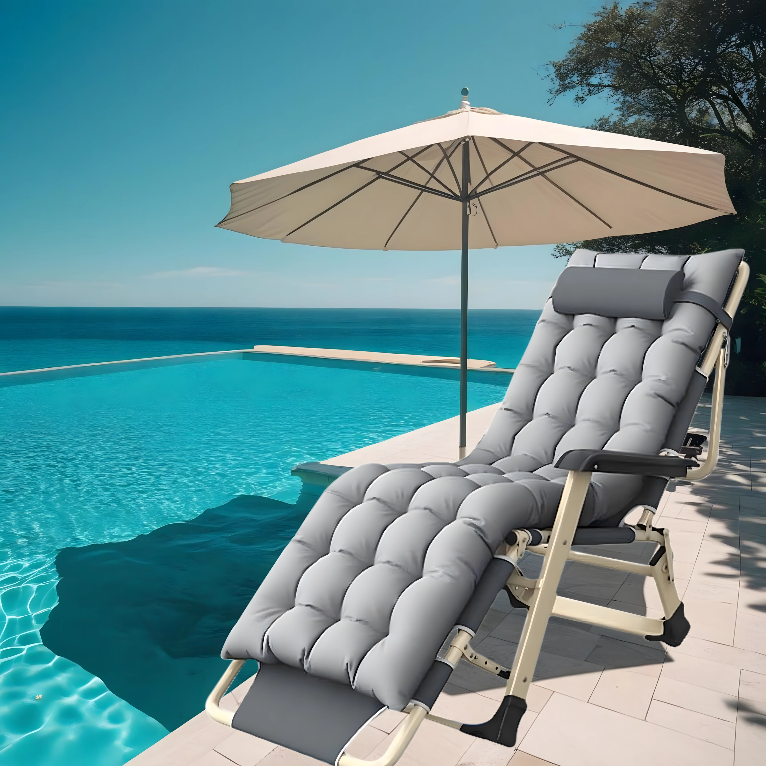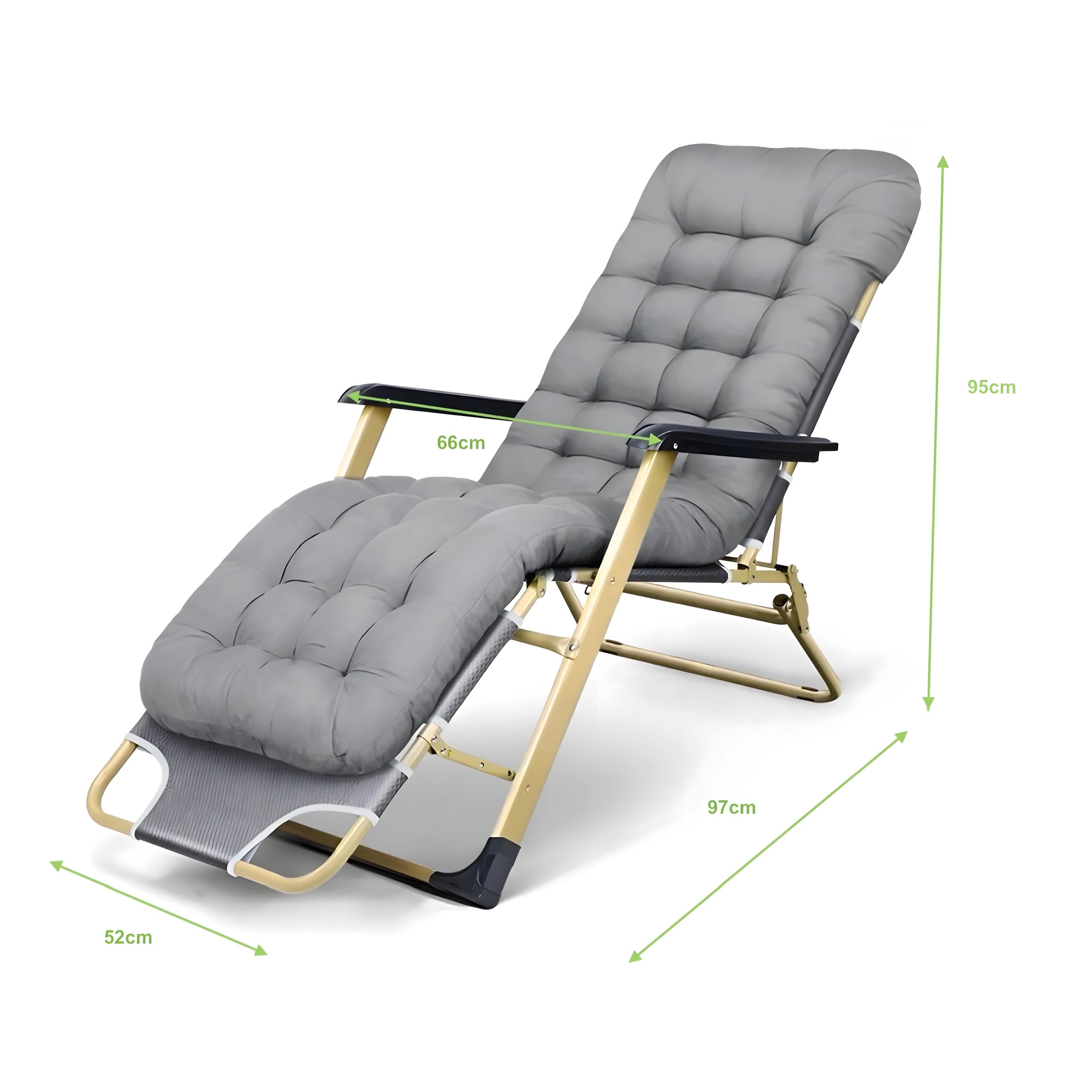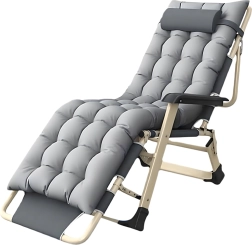 El asiento suave y acolchado con cojín para la cabeza, junto con la resistente estructura metálica con reposabrazos, garantizan comodidad y estabilidad para su uso en exteriores.