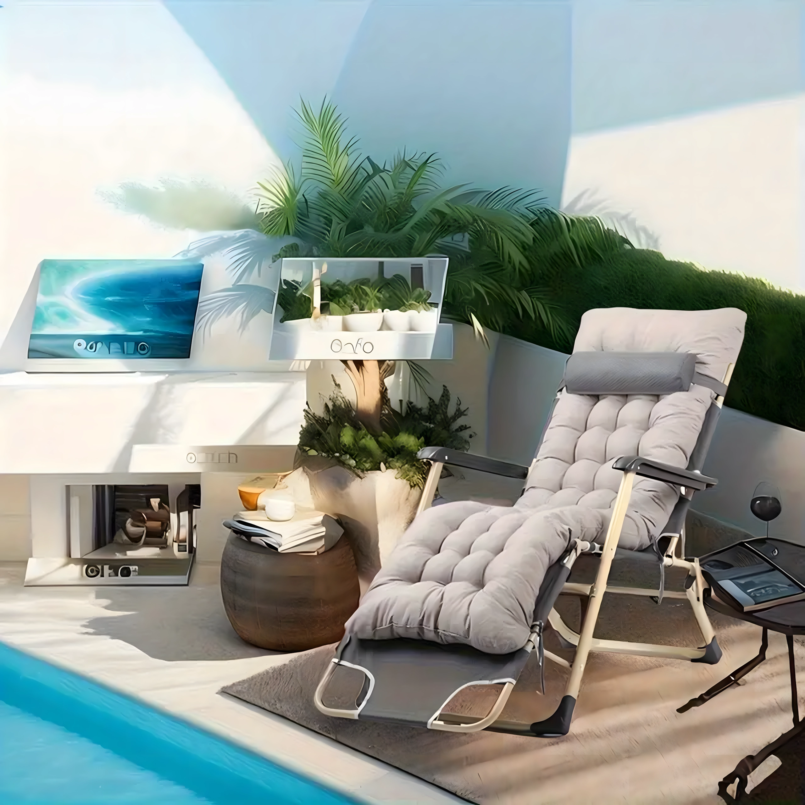 Gracias al ajuste del respaldo y del reposapiés, encontrarás fácilmente la posición ideal para leer, tomar el sol o echar una siesta. Los reposabrazos y el reposapiés extendido aumentan el confort, y la estructura plegable y portátil facilita el guardado y el transporte.