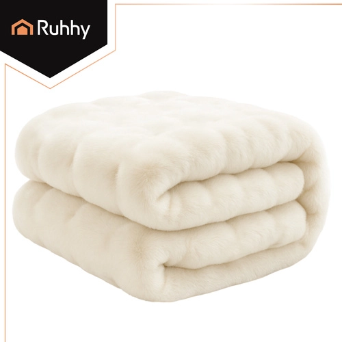 Disfruta de un confort instantáneo con la manta RUHHY, suave y agradable al tacto, en un blanco universal. Es ligera, cálida y excepcionalmente agradable al tacto. Gracias a su construcción de doble capa: cara superior tipo piel de conejo y cara inferior de felpa suave, ofrece el máximo confort. Fácil mantenimiento en lavadora a 30 °C, resistente al peeling y con un aspecto elegante, es el complemento ideal para el dormitorio y el salón.