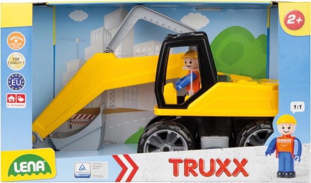 La excavadora de plástico LENA TRUXX ofrece a los niños un juego de construcción realista. Gracias a su estructura sólida y al plástico resistente, soporta fácilmente el juego en interiores y exteriores. El manejo está adaptado a las manos pequeñas: los niños levantan y bajan de forma intuitiva el brazo móvil y el cucharón, giran la superestructura y exploran las posibilidades de juego.