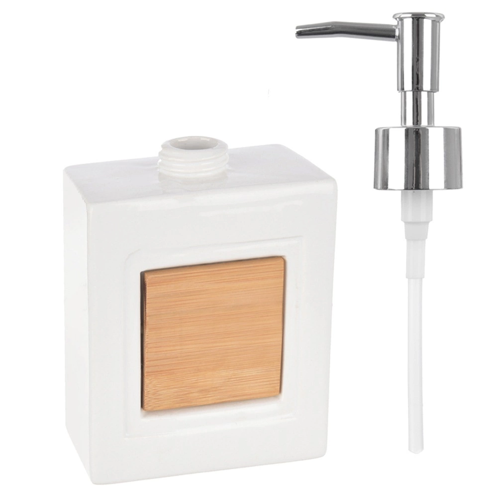 Cuerpo cerámico con bomba metálica desmontable que permite un fácil rellenado y una dosificación limpia de jabón líquido o desinfectante.