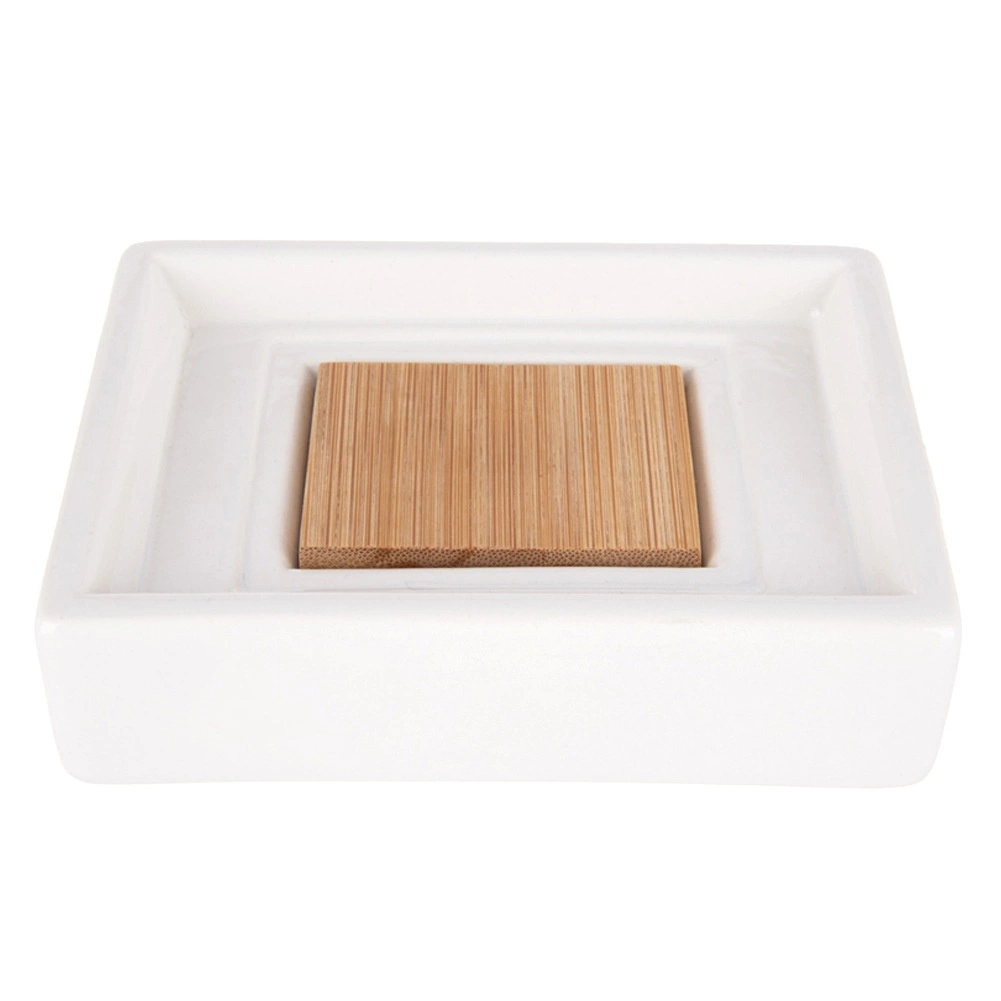 El inserto elevado de bambú ayuda a drenar el agua, prolonga la vida útil del jabón y mantiene la zona del lavabo limpia.