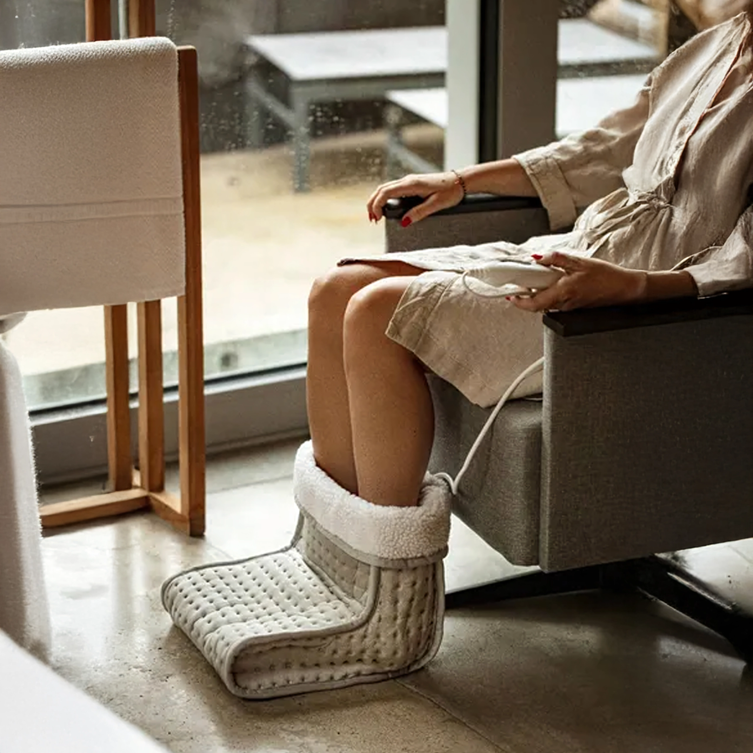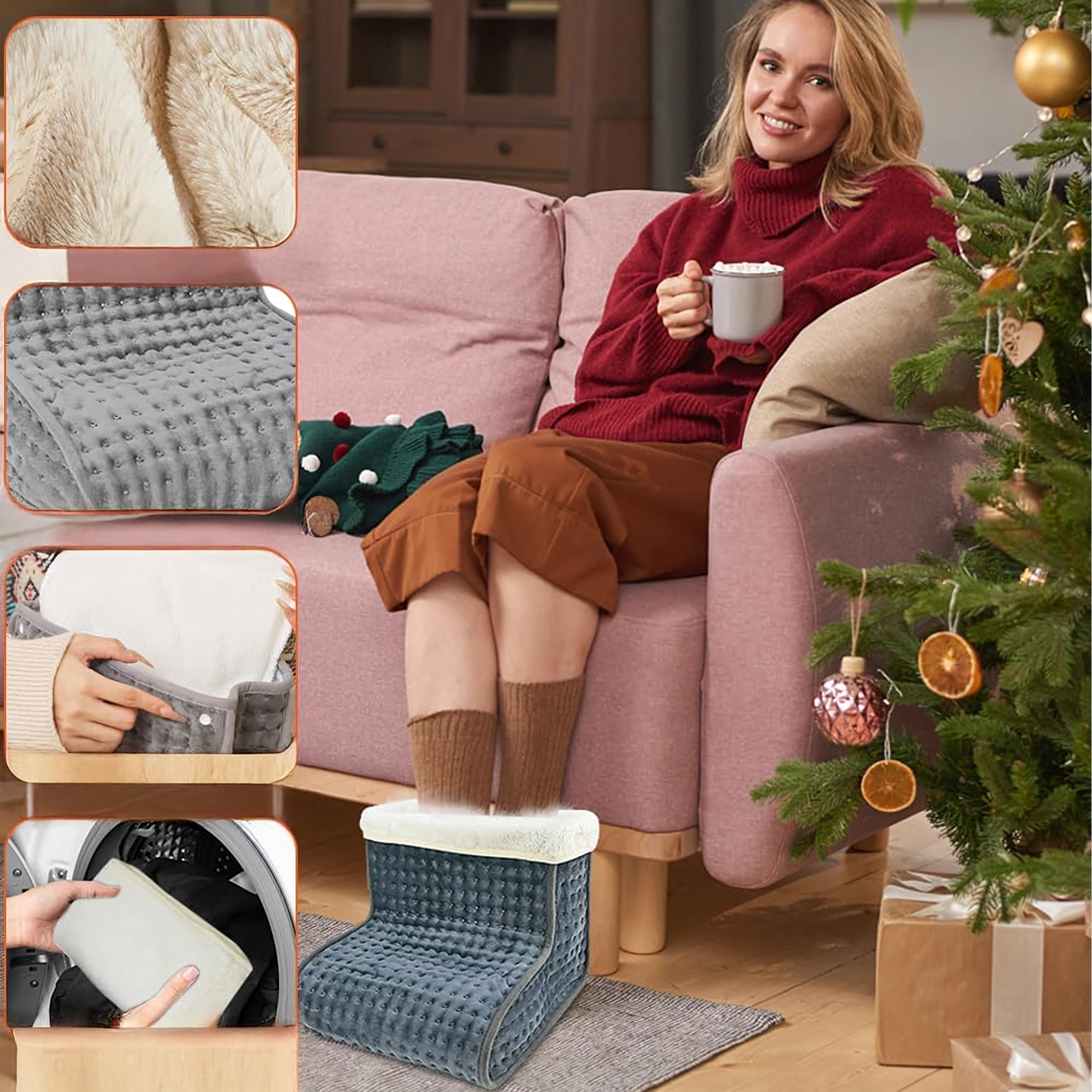 El calentador eléctrico de pies está diseñado para ofrecer la máxima comodidad durante el descanso frente a la televisión, en el escritorio o en el sofá. Su interior de felpa suave con agradable forro distribuye el calor de manera uniforme y ayuda a calentar rápidamente los pies fríos. El controlador intuitivo con pantalla permite un ajuste preciso de la temperatura y del tiempo de calentamiento para un uso seguro y sin preocupaciones.