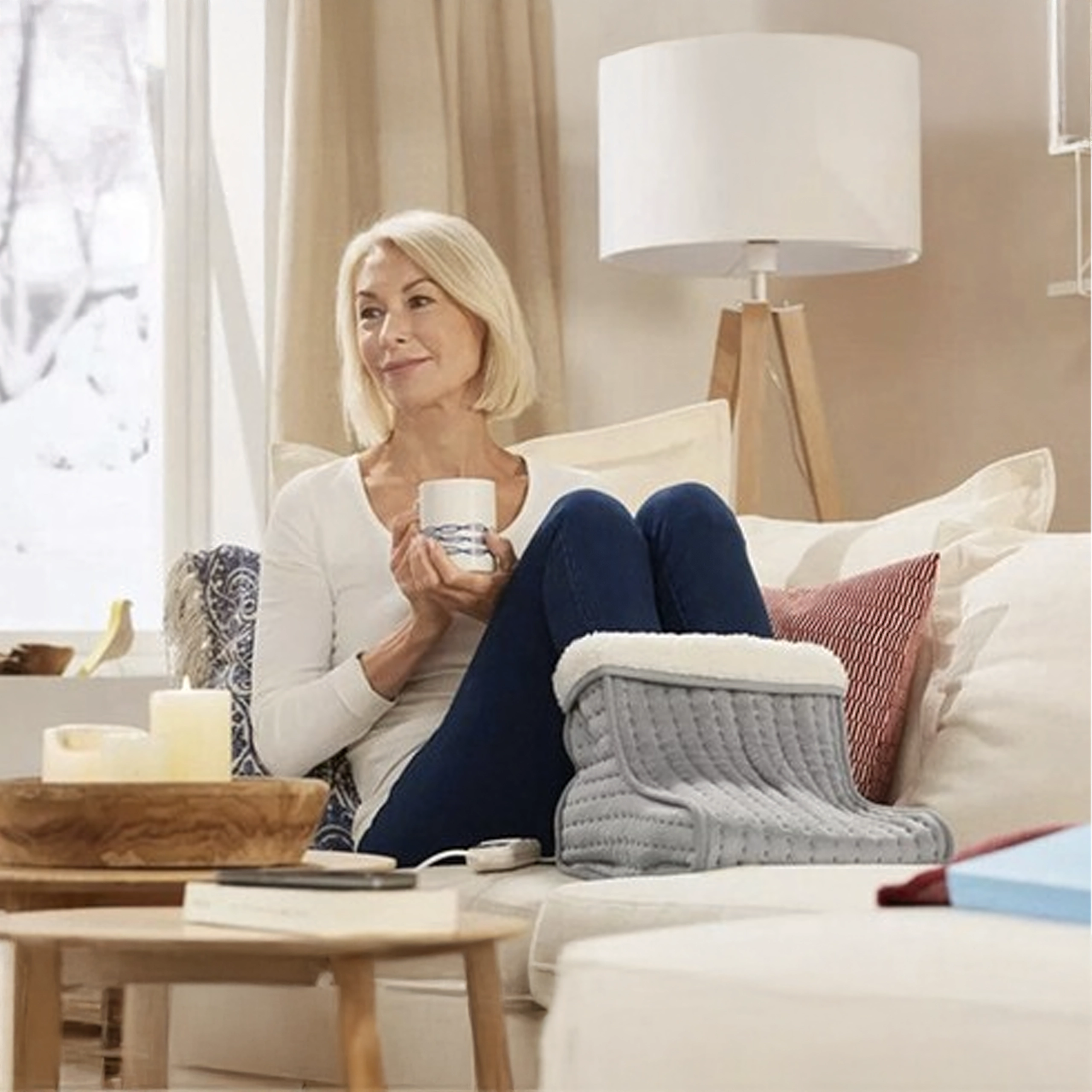 El espacioso diseño tipo “bota” con forro polar suave envuelve los pies y garantiza un calor uniforme y reconfortante tanto en el sofá como en el escritorio.