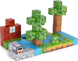 Las superficies texturizadas de los bloques, que recuerdan a hierba, agua, madera o piedra, inspiran a crear árboles, senderos, ríos y casitas: la imaginación no tiene límites.