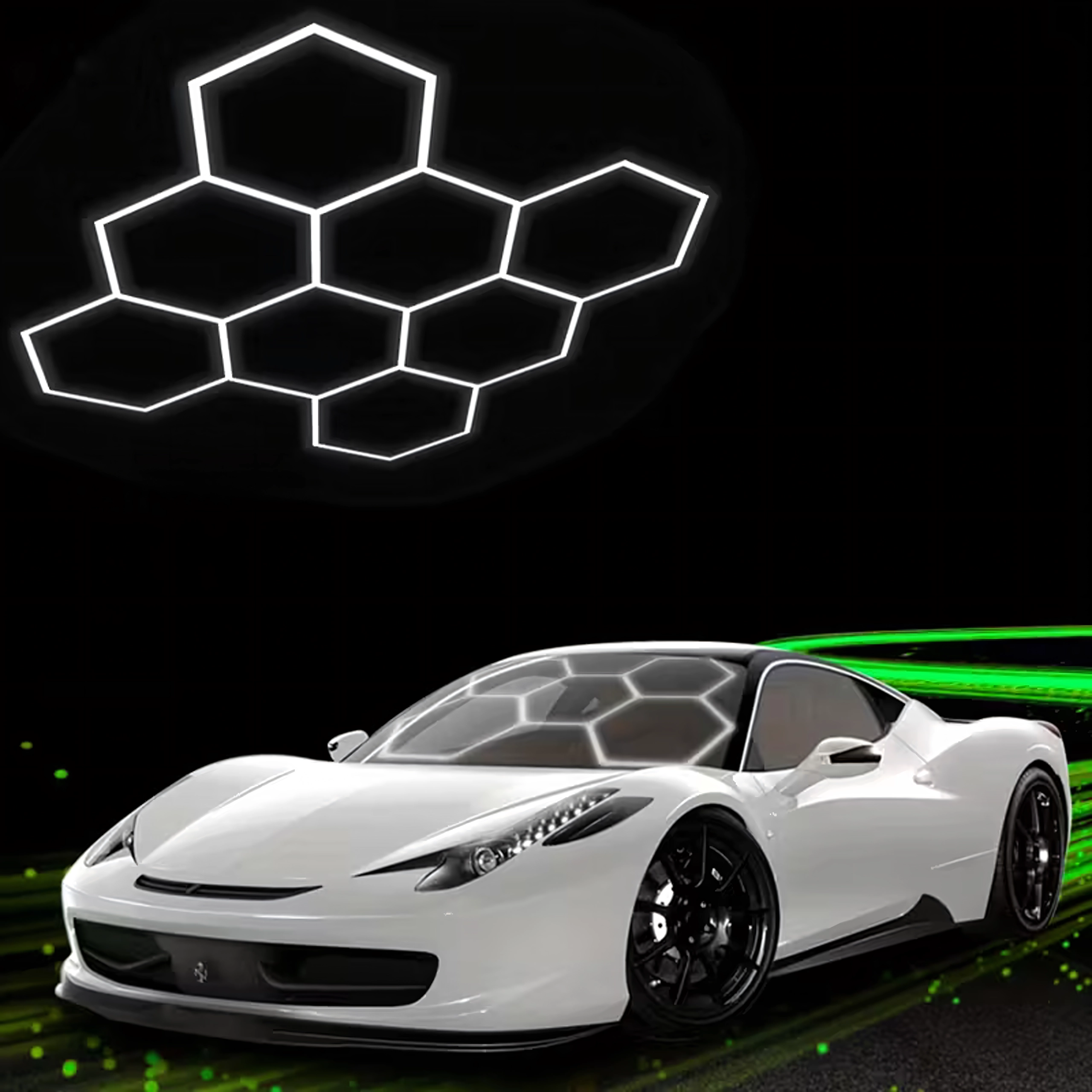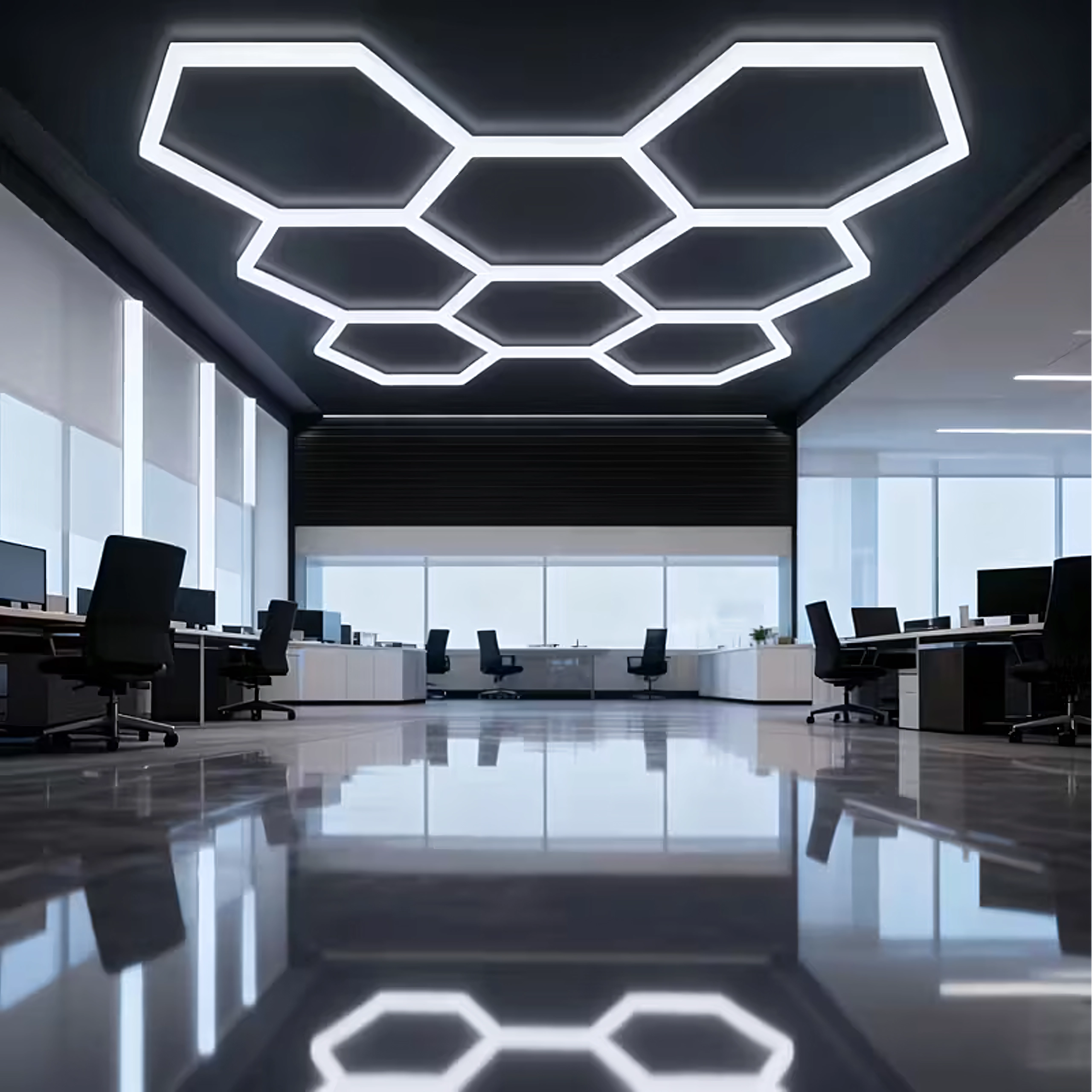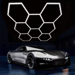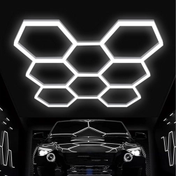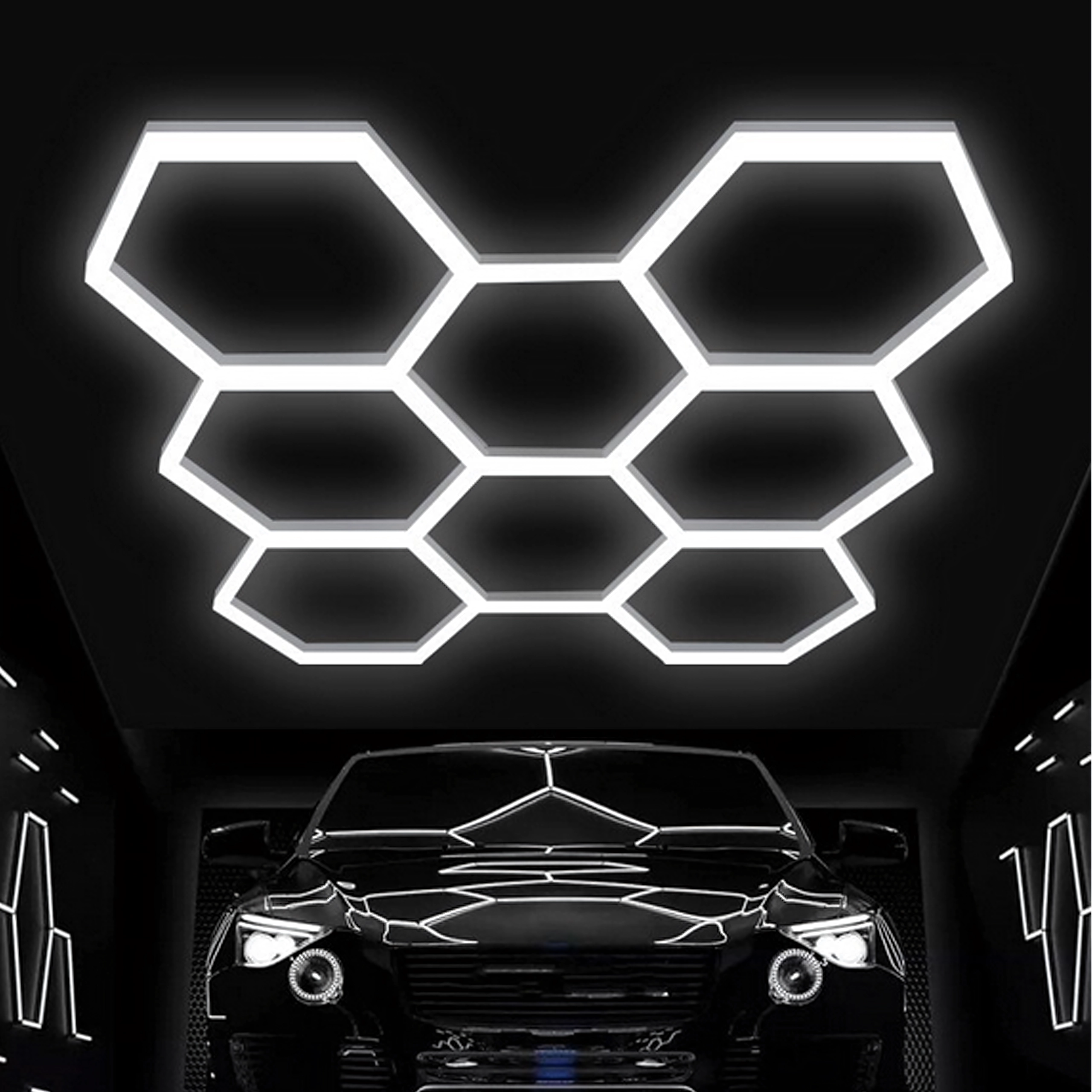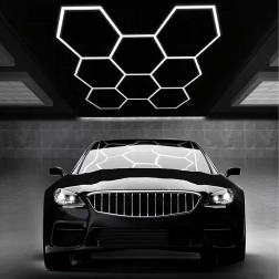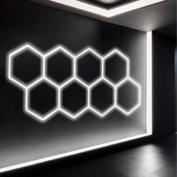 Aporta a tu espacio un diseño moderno y una iluminación perfecta. El sistema LED hexagonal modular de 257 × 244 cm y 280 W ofrece luz blanca fría de 6500K, ideal para garaje, taller, estudio de detailing, oficina y hogar. El elegante patrón tipo “panal” garantiza una iluminación uniforme y un aspecto atractivo.