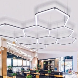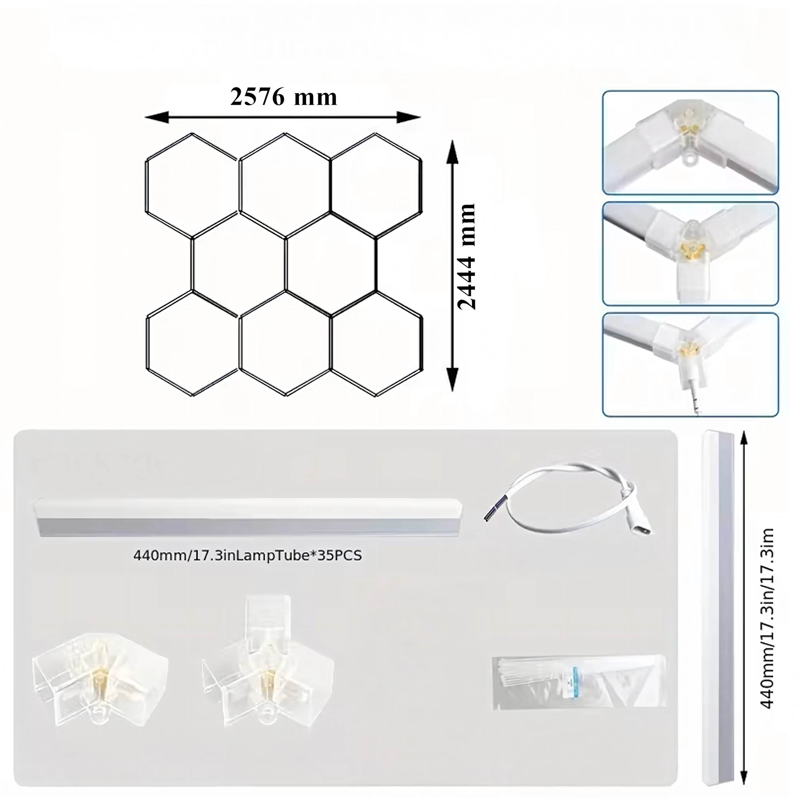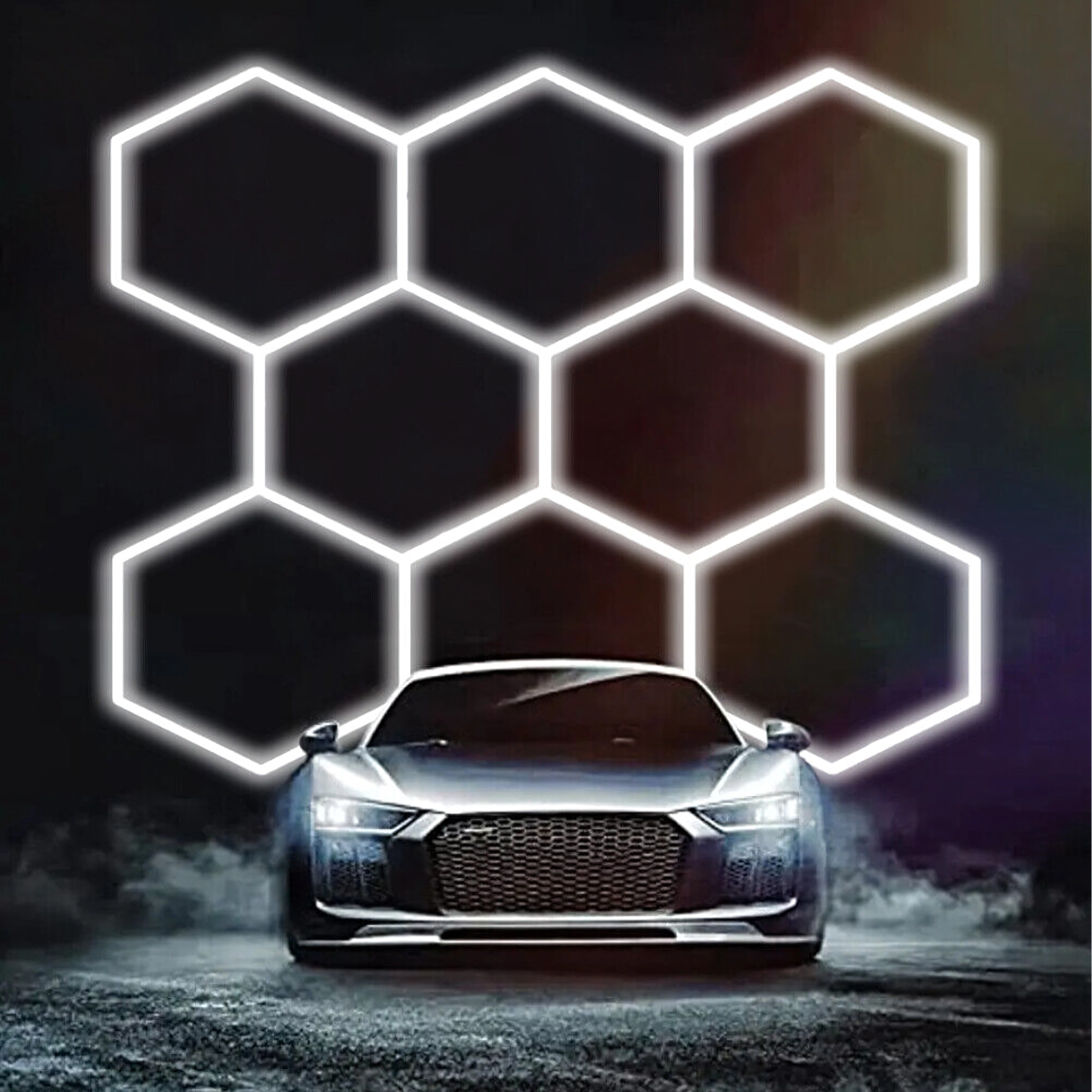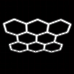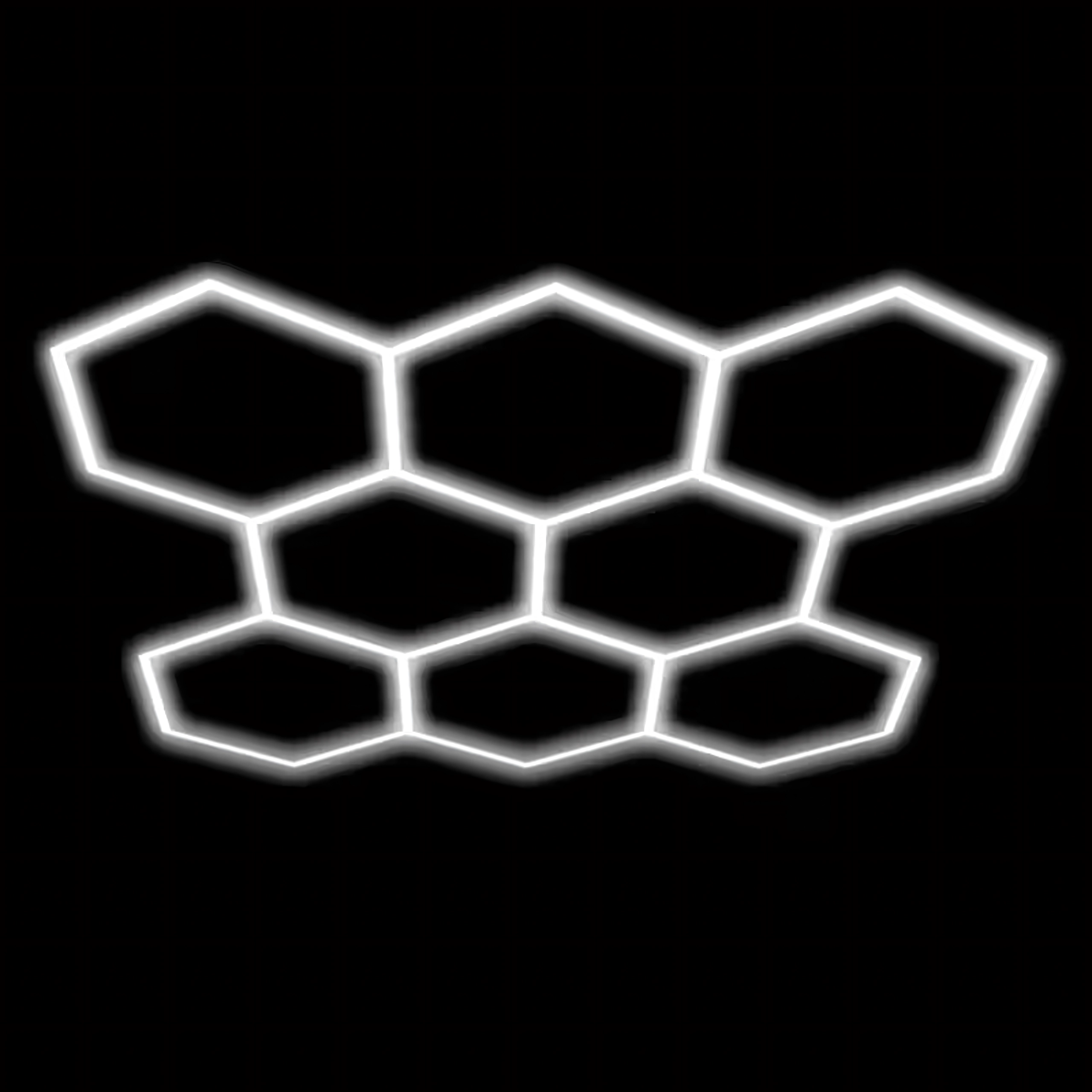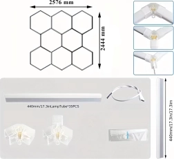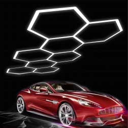 Aporta a tu espacio un diseño moderno y una iluminación perfecta. El sistema LED hexagonal modular de 257 × 244 cm y 280 W ofrece luz blanca fría de 6500K, ideal para garaje, taller, estudio de detailing, oficina y hogar. El elegante patrón tipo “panal” garantiza una iluminación uniforme y un aspecto atractivo.