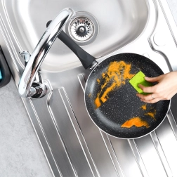 La superficie de piedra resistente evita que se peguen los alimentos, permite cocinar con un mínimo de grasa y garantiza una limpieza fácil después de cada uso.