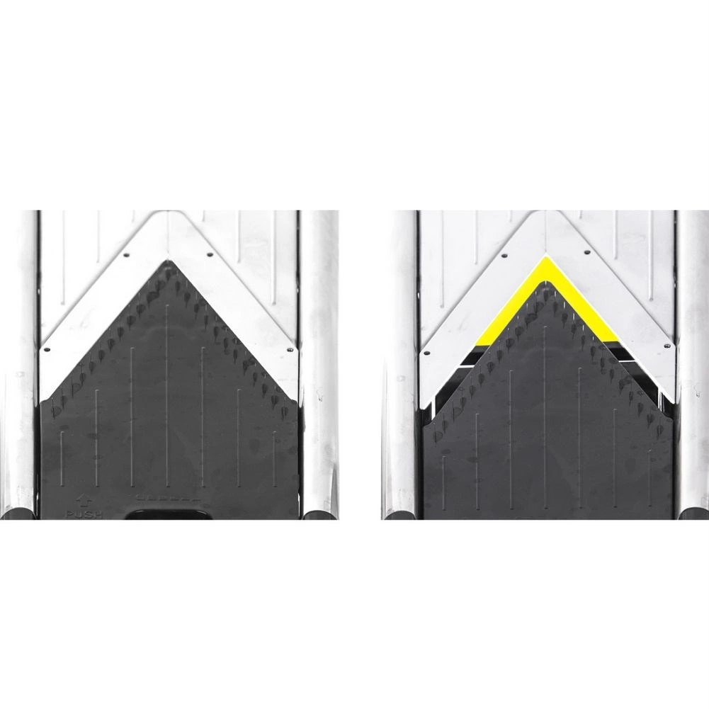 El soporte protector protege los dedos y las patas plegables antideslizantes dan a la mandolina una inclinación estable para un trabajo rápido y seguro.