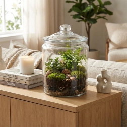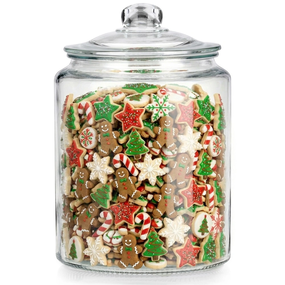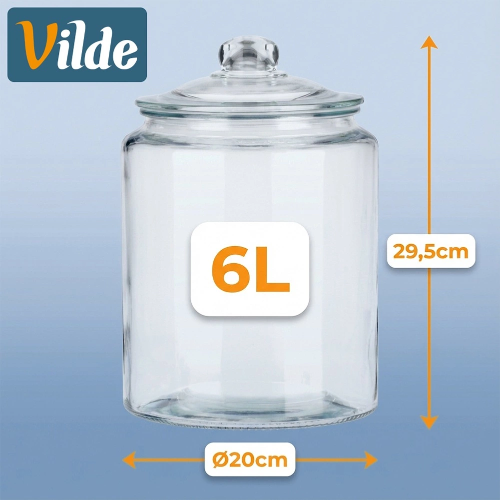 El tarro de vidrio de gran capacidad combina elegantemente diseño y funcionalidad. Gracias al vidrio transparente y grueso, siempre tendrás un control perfecto del contenido, mientras que la tapa de vidrio con junta protege los alimentos de la humedad y la pérdida de aroma. Las dimensiones de 20 × 20 × 29,5 cm ofrecen espacio suficiente para ingredientes y delicias caseras.