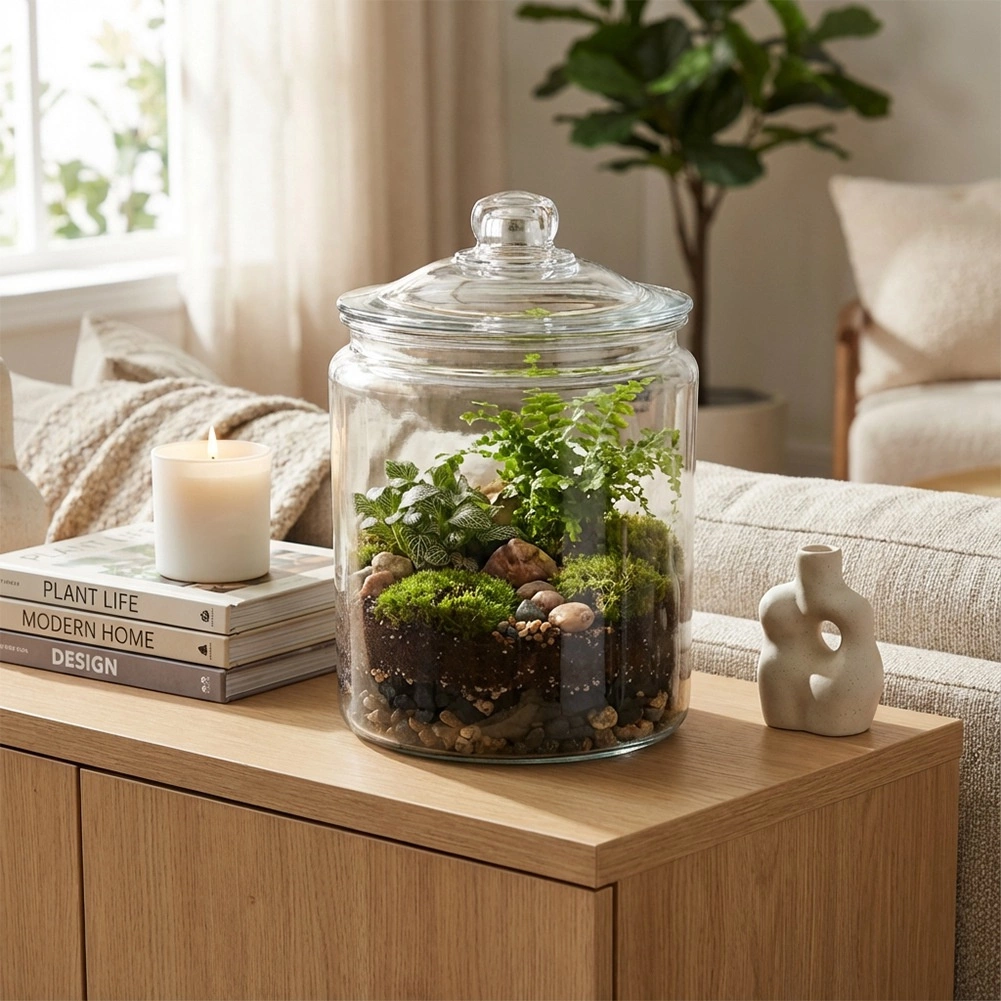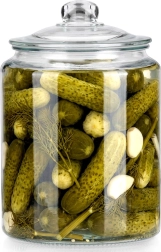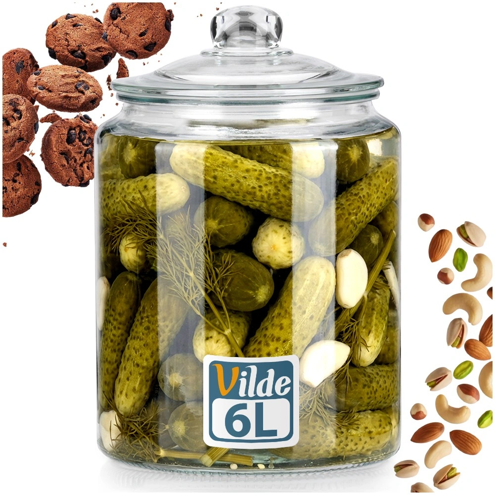 Adecuado para alimentos secos, conservas y fermentación casera de pepinillos o verduras. La boca ancha facilita el llenado y el servicio.